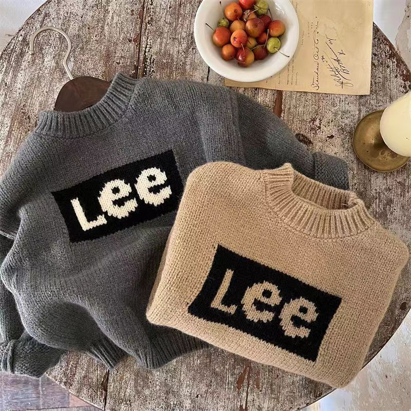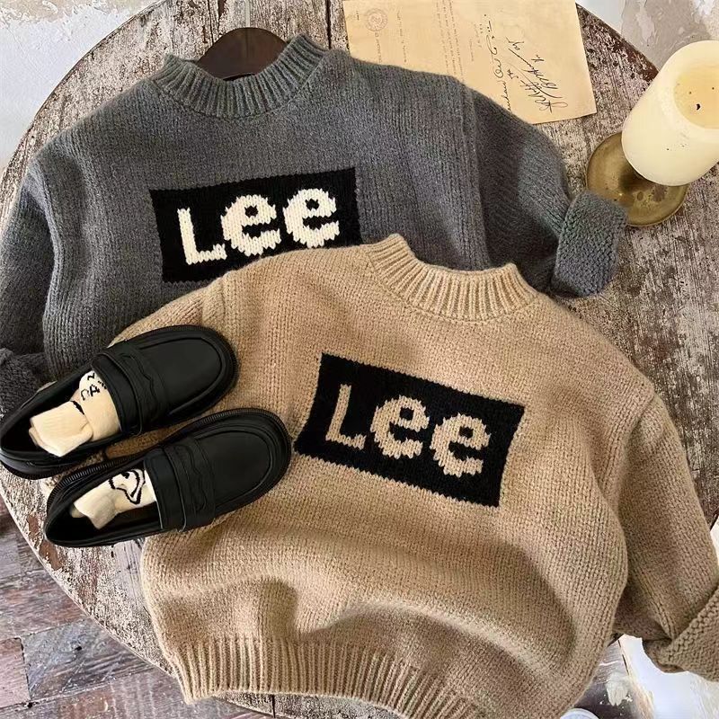 2024 가을과 겨울 새로운 패션 소년과 소녀 자카드 풀오버 어린이 스웨터 니트 스웨터 베이비 솔리드 컬러 레터 스웨터스토어 가기