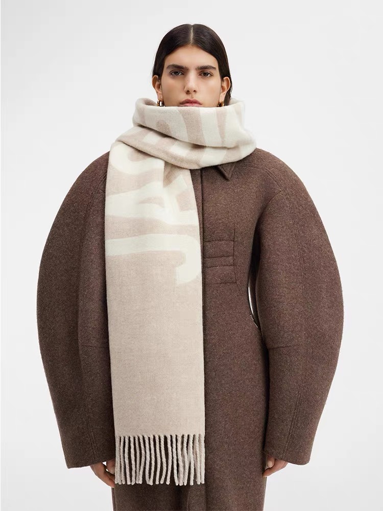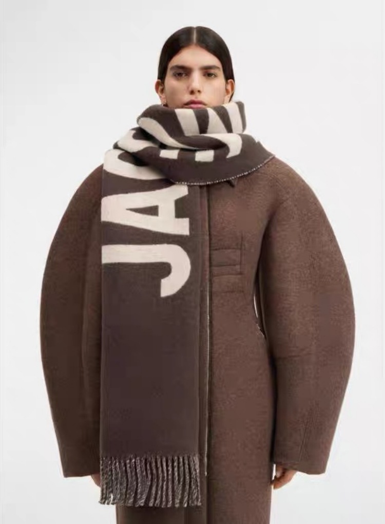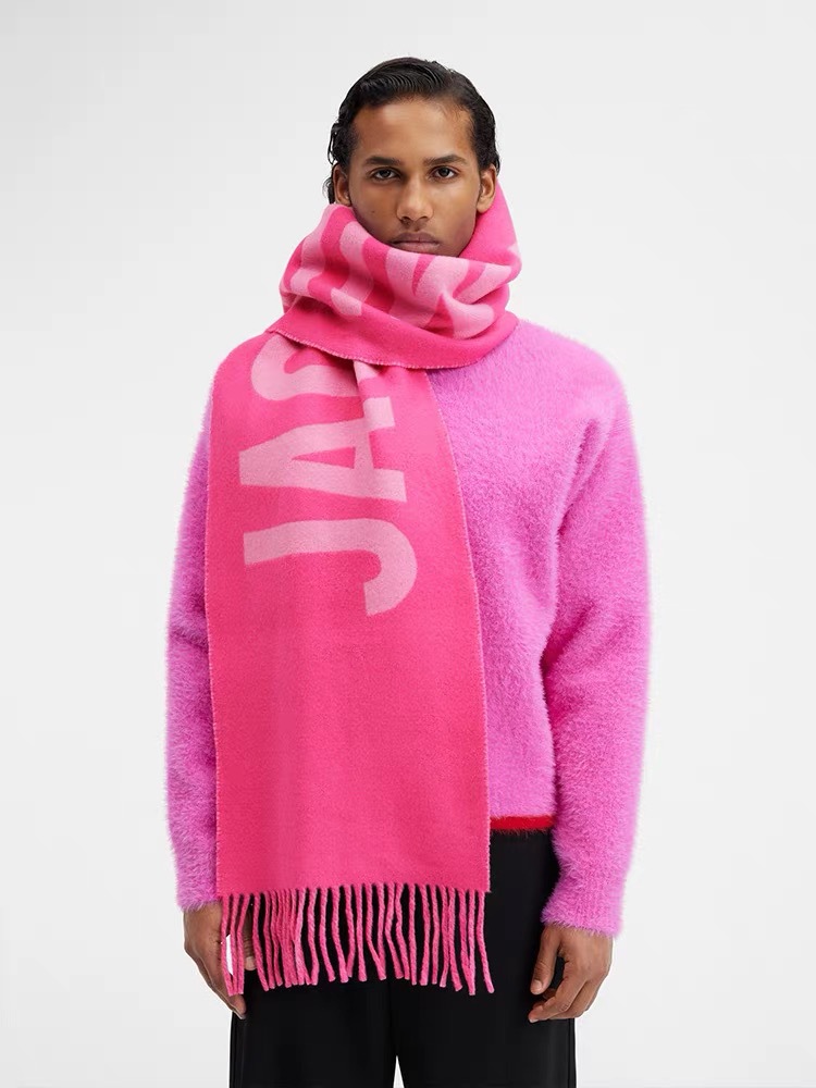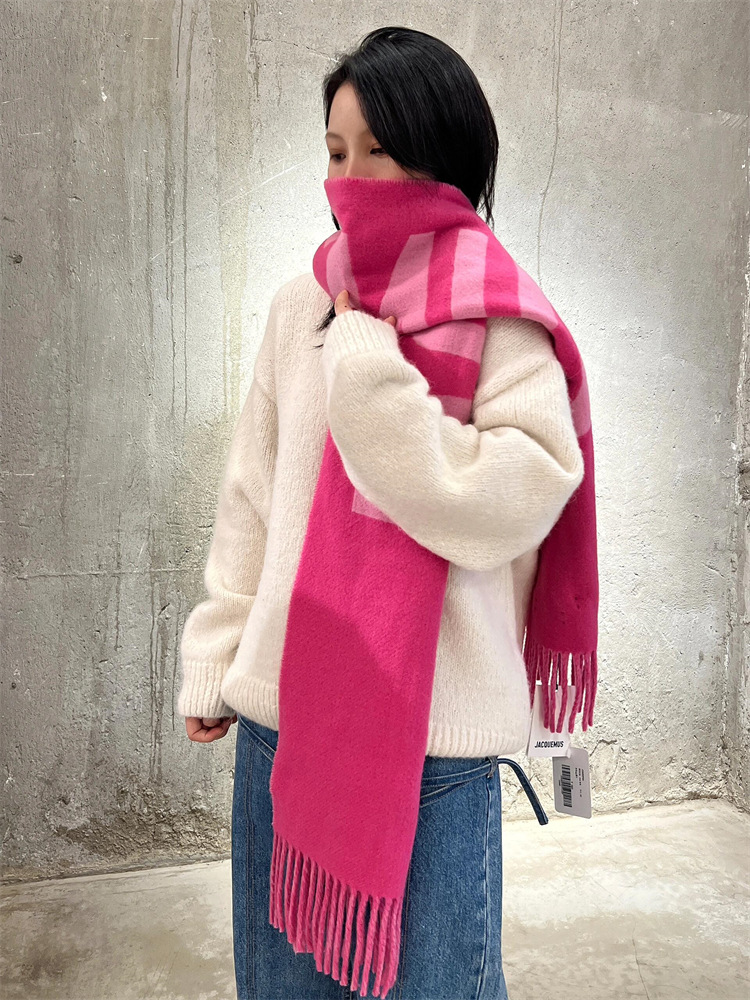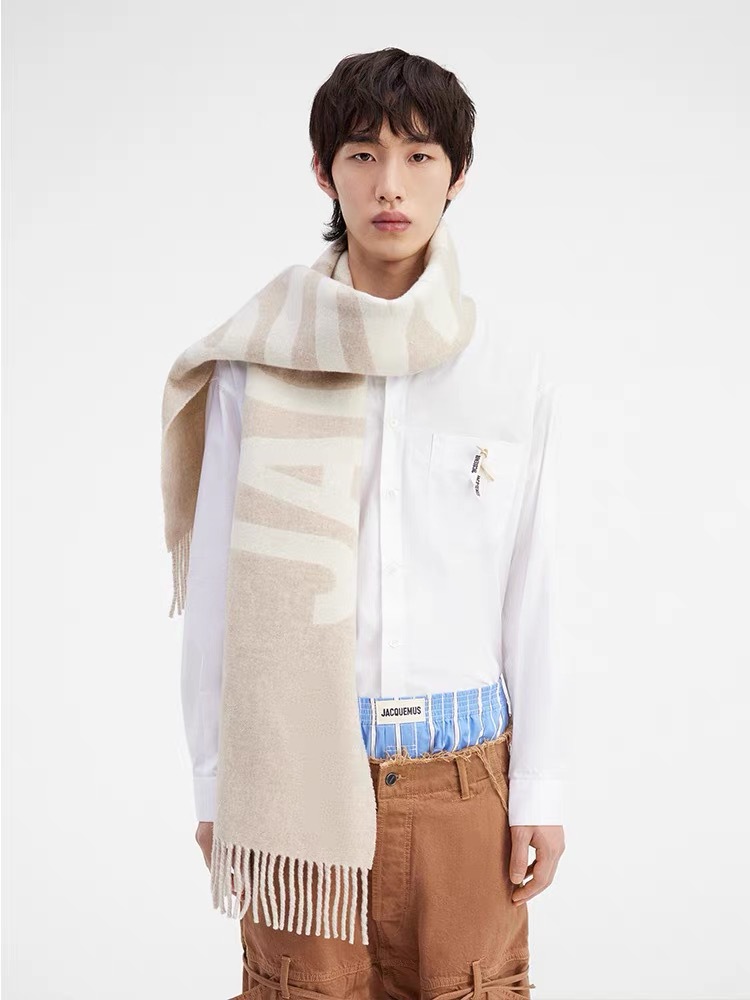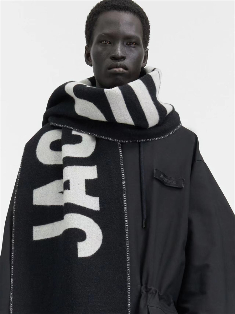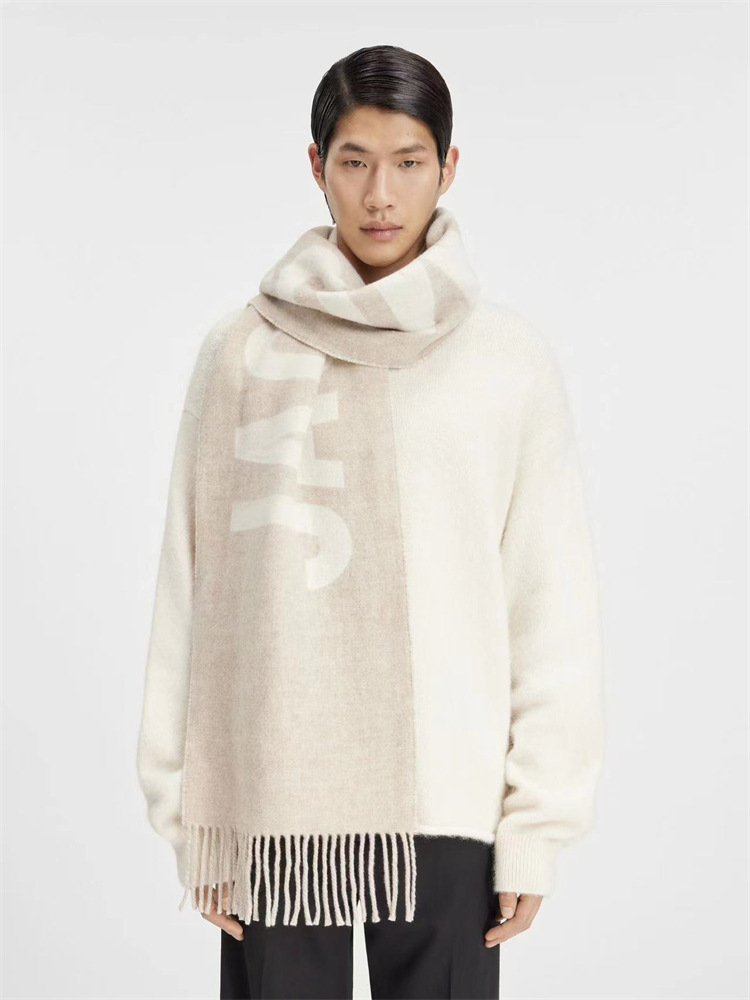 Jac***mus 스카프 2024 가을 겨울 신상 남성 및 여성용 레터 자카드 따뜻한 태슬 울 스카프 숄스토어 가기