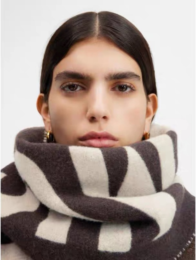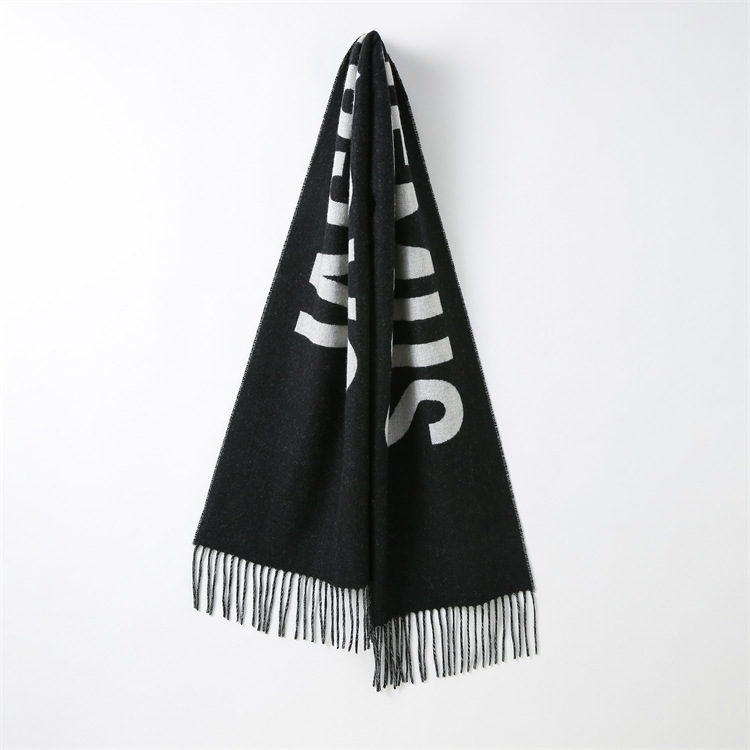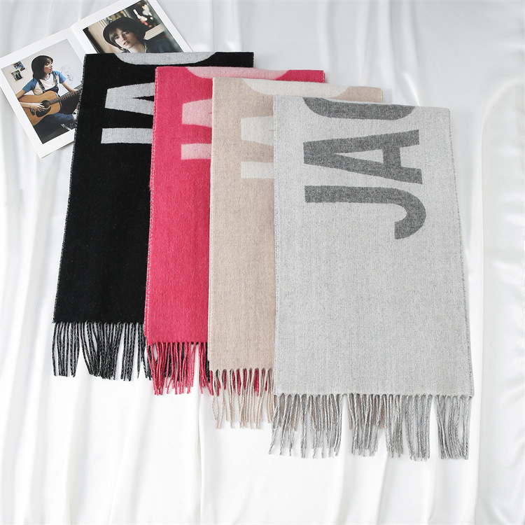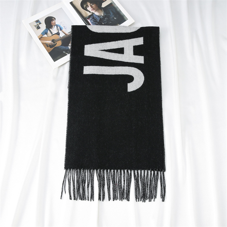 Jac***mus 스카프 2024 가을 겨울 신상 남성 및 여성용 레터 자카드 따뜻한 태슬 울 스카프 숄