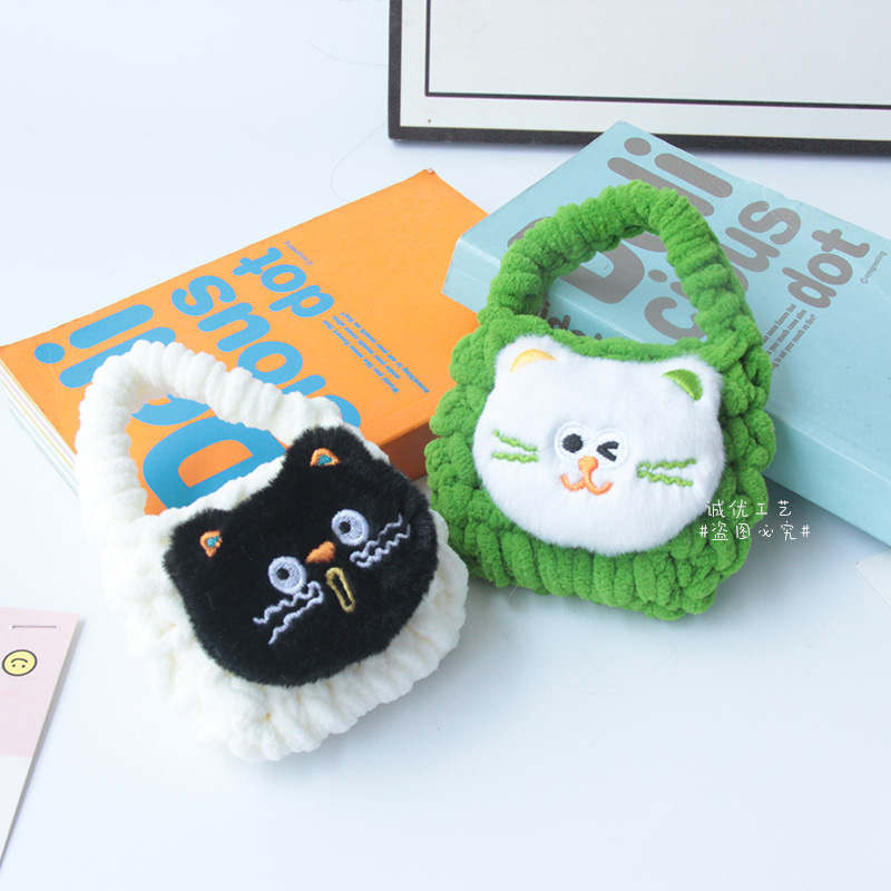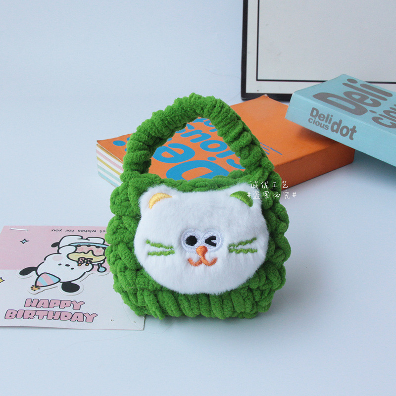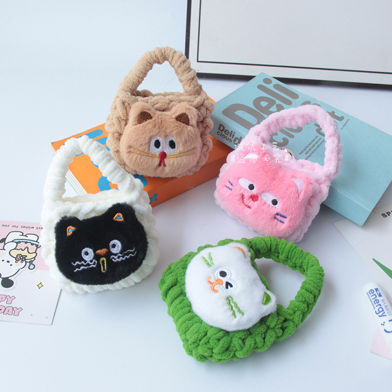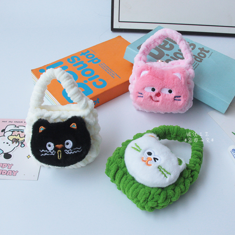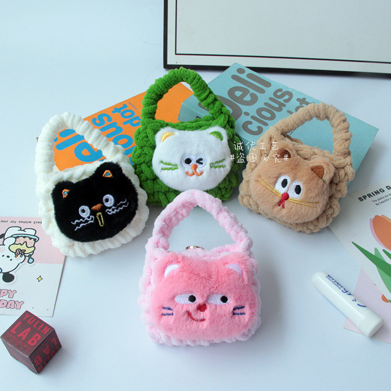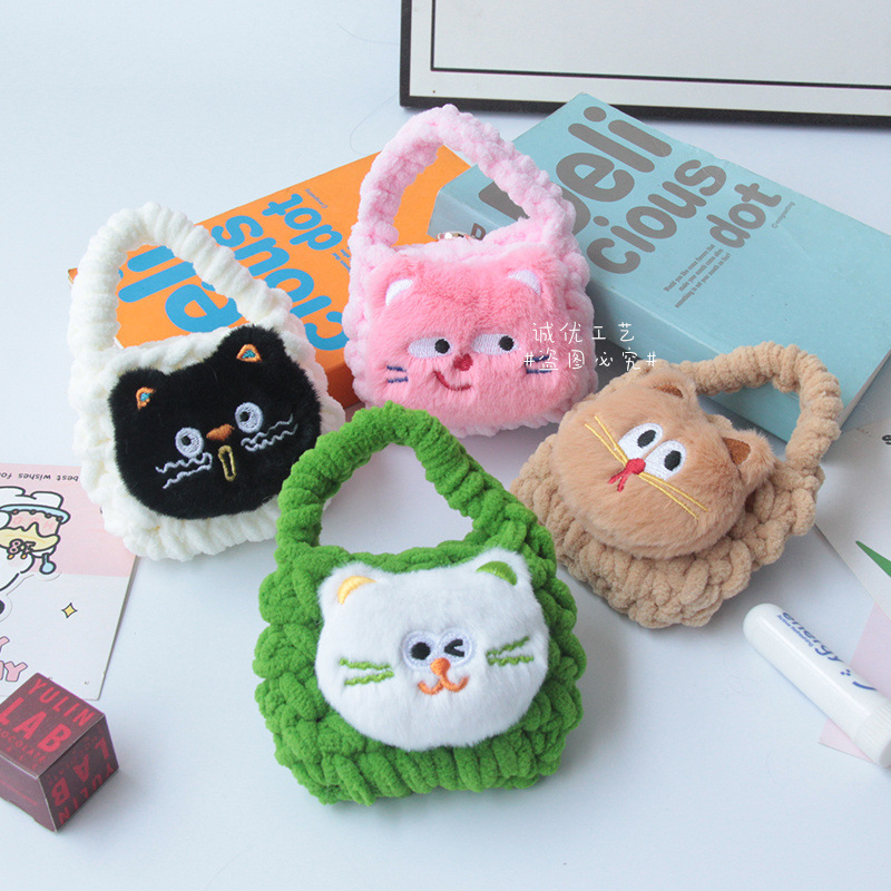 완성 된 귀여운 고양이 수제 꼰 이어폰 가방 어린이 동전 지갑 블루투스 헤드셋 보호 미니 보관 가방스토어 가기