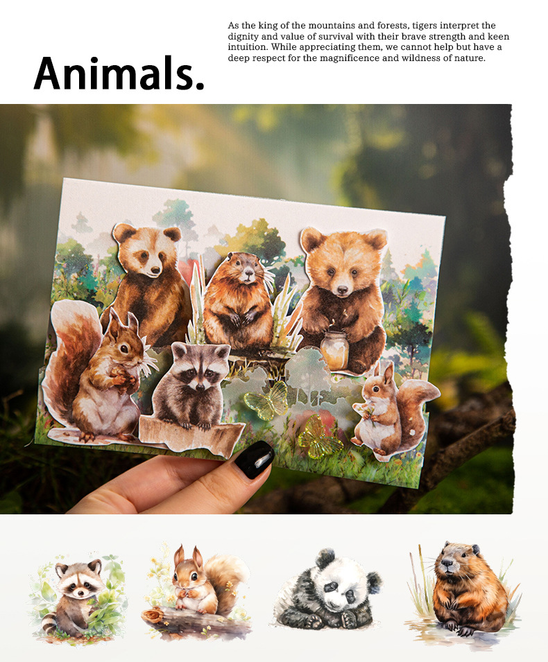 아름다운 날 스티커 팩 동물 이야기 시리즈 동물 테마 큰 수량 손 계정 소재 팩 4스토어 가기