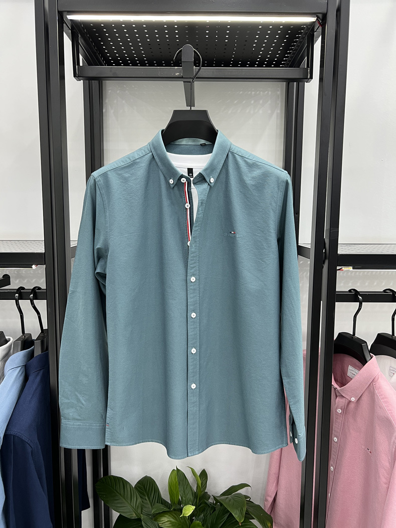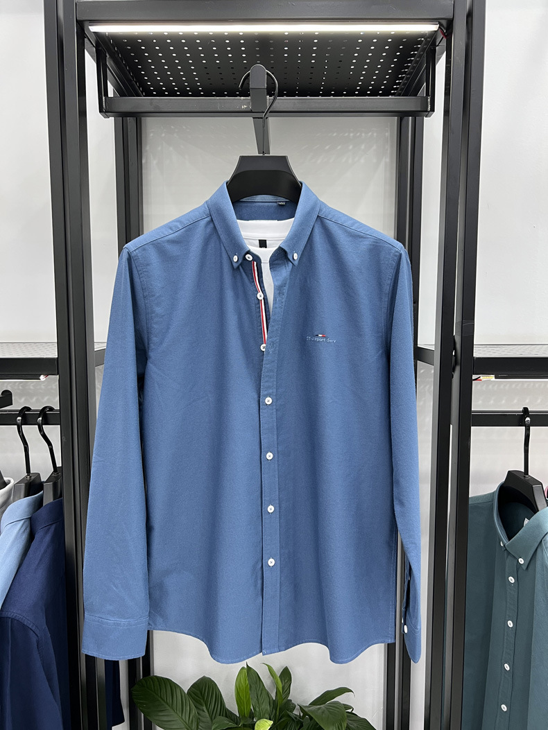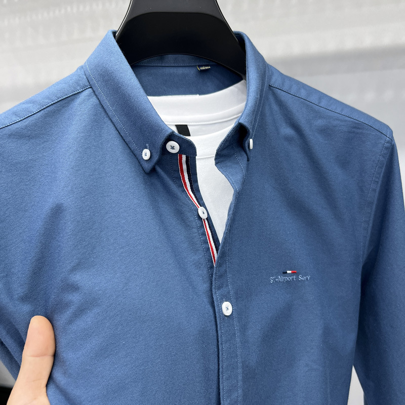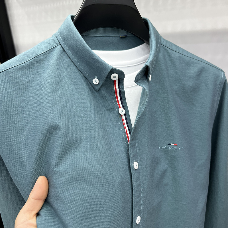 100 면화 대외 무역 셔츠 남성 긴 소매 봄과 가을 옥스포드 섬유 수출 꼬리 싱글 젊은 및 중년 남성 캐주얼 셔츠