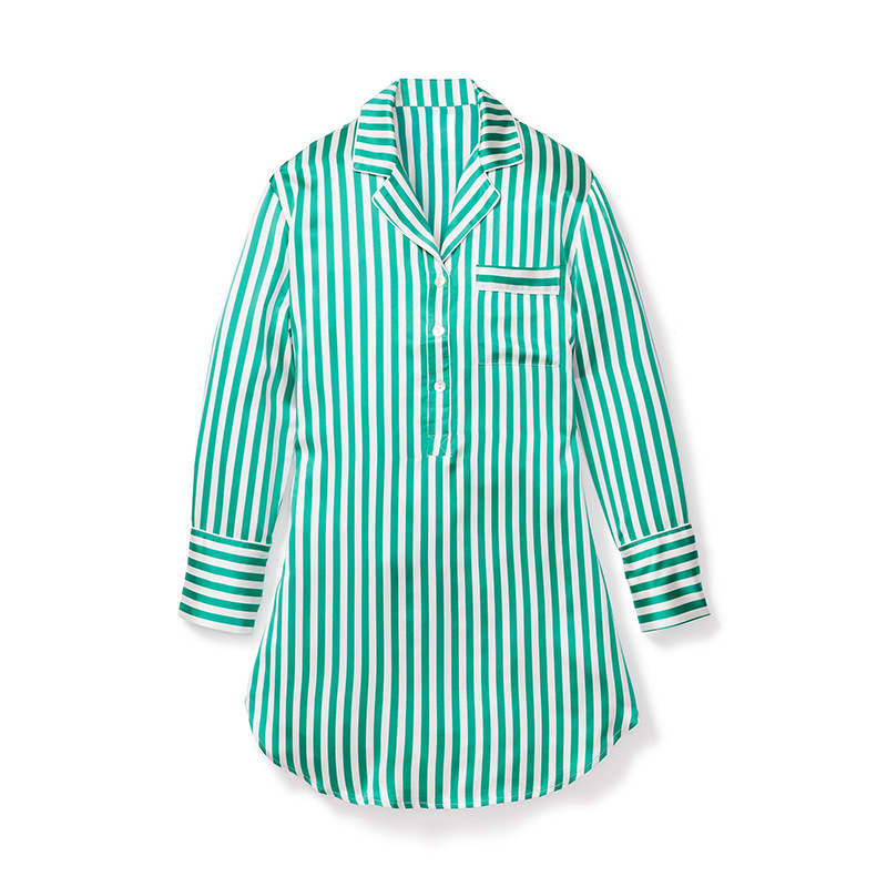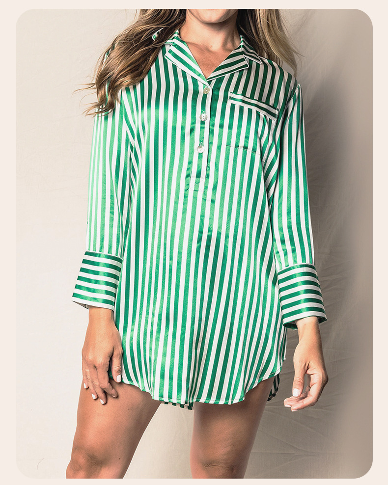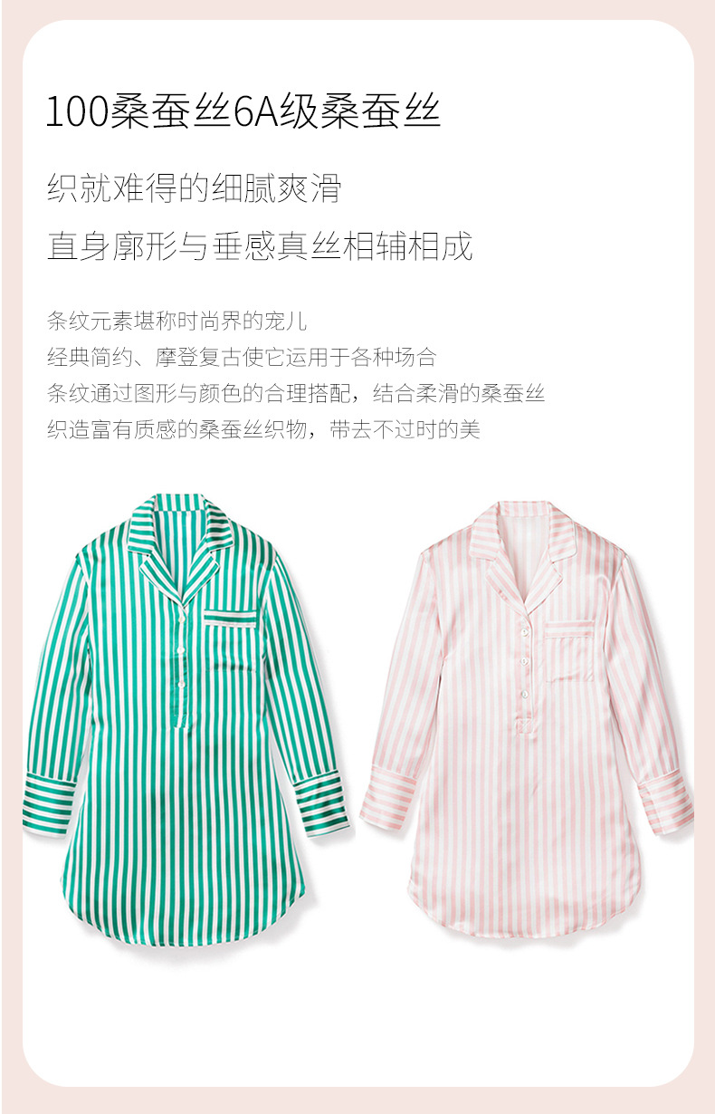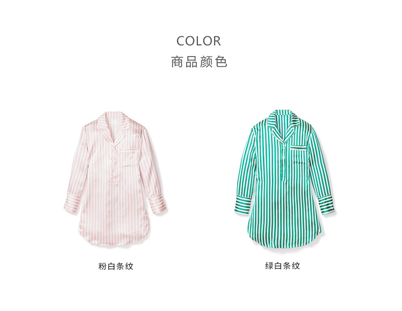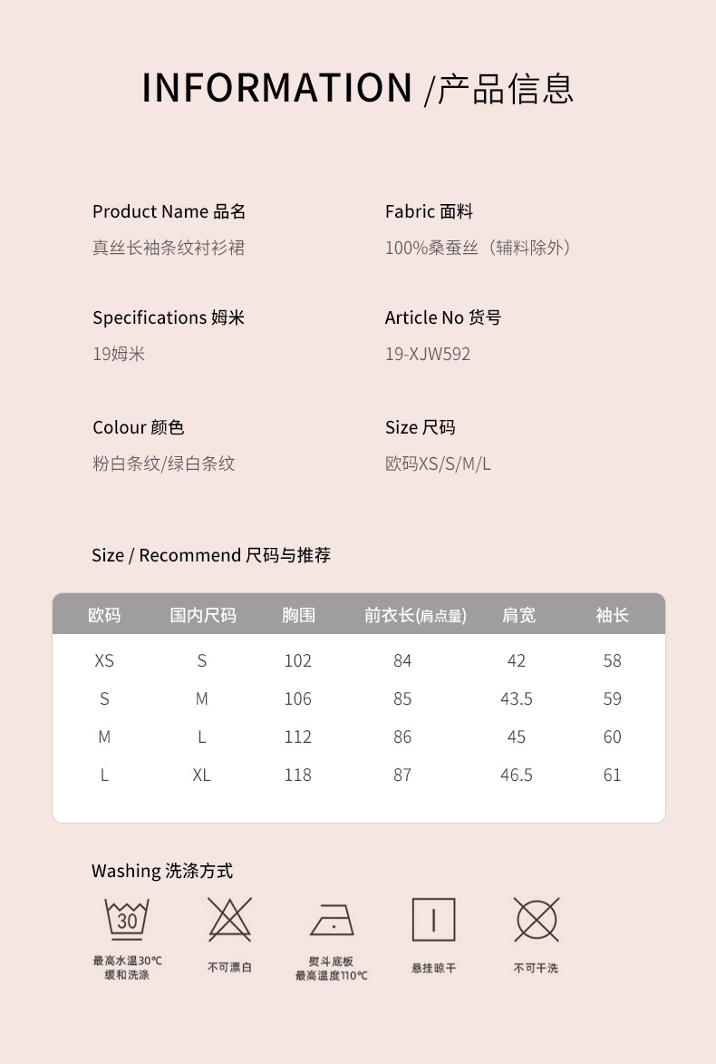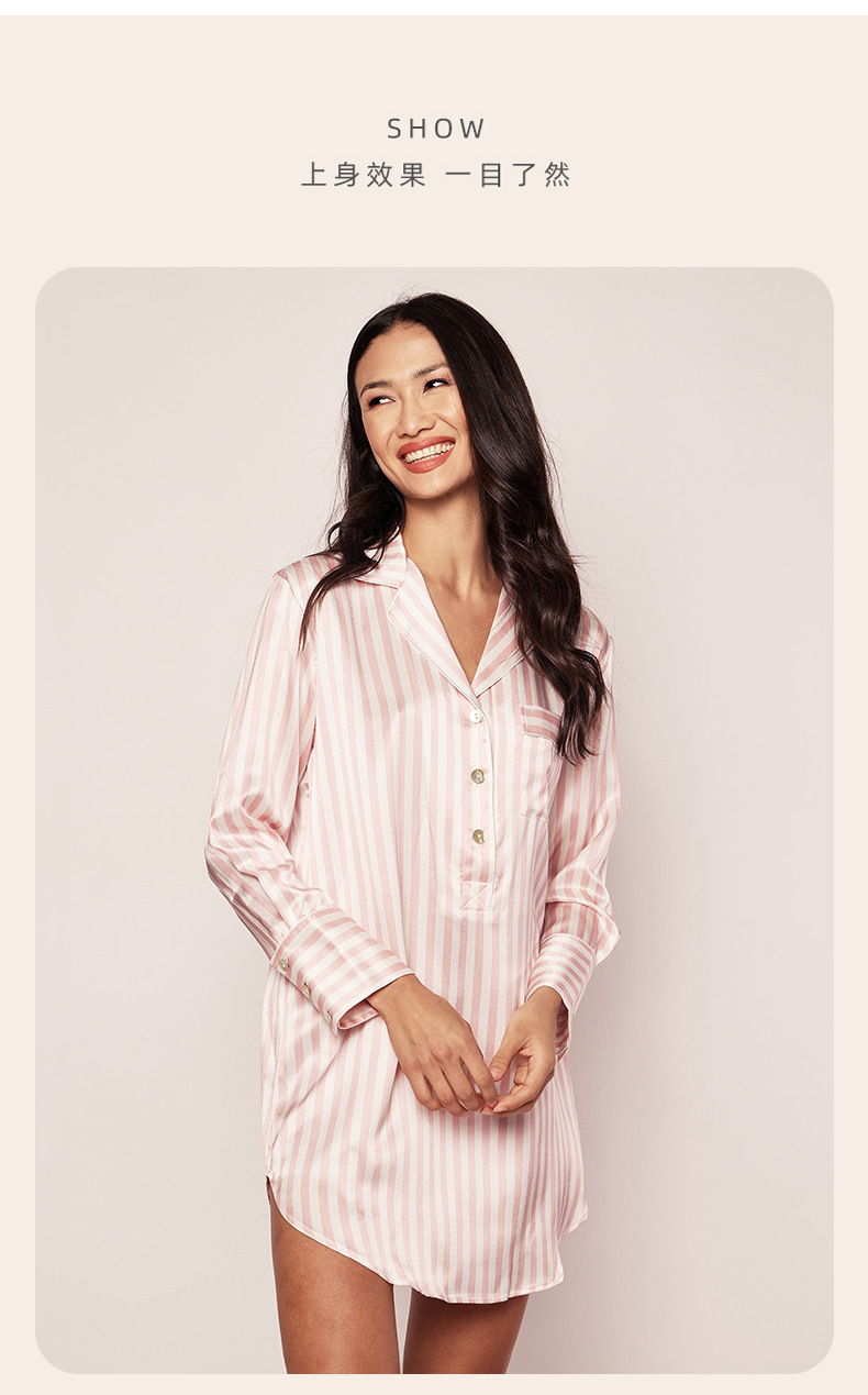 19 Mmi 실크 셔츠 원피스 100 뽕나무 실크 클래식 긴 소매 줄무늬 잠옷 여성 봄 및 여름 홈 옷