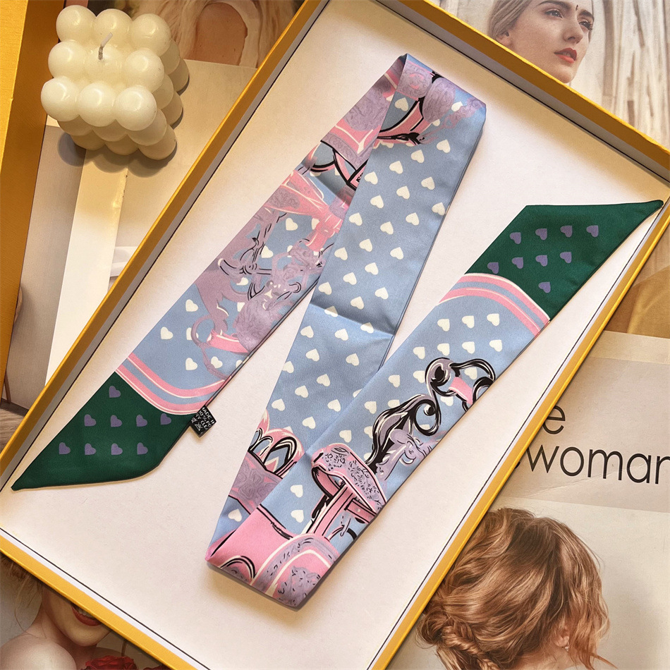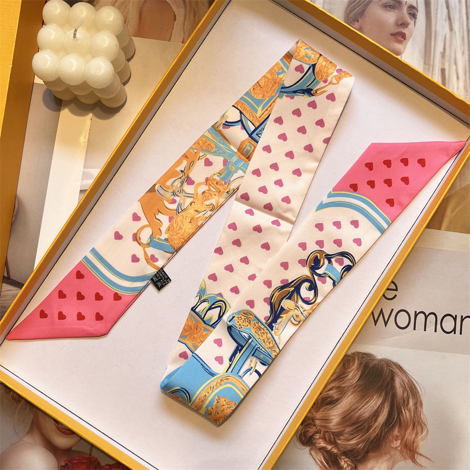 넥타이 포장 가방 핸들 실크 스카프 장식 레이스 벨트 핸들 리본 긴 스카프 여성 리본 사랑 핑크