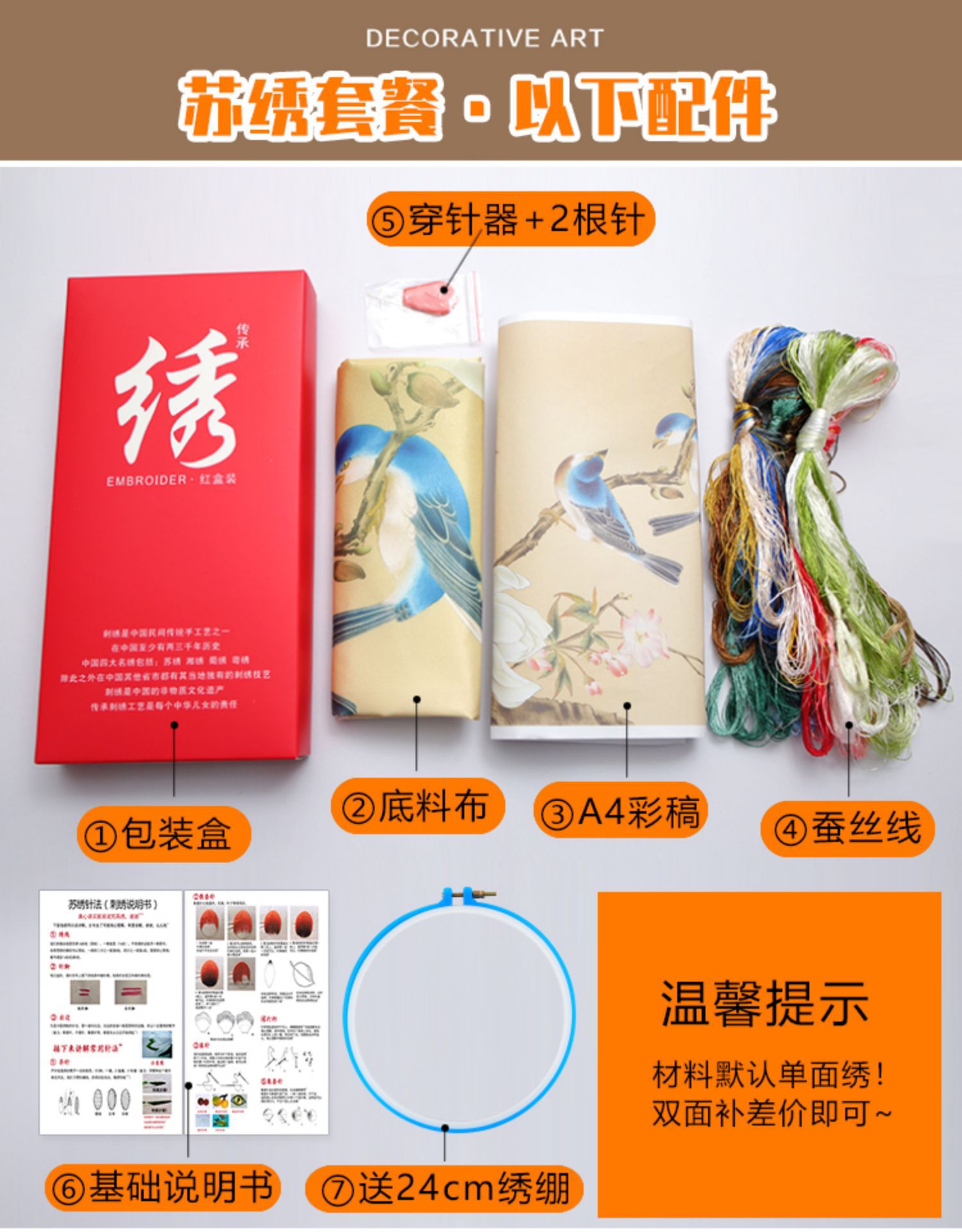 P66D 쑤저우 자수 자수 수동 DIY 키트 자체 자수 소재 가방 초보자 골동품 자기 자수 입구 스티치 피닉스 꽃스토어 가기