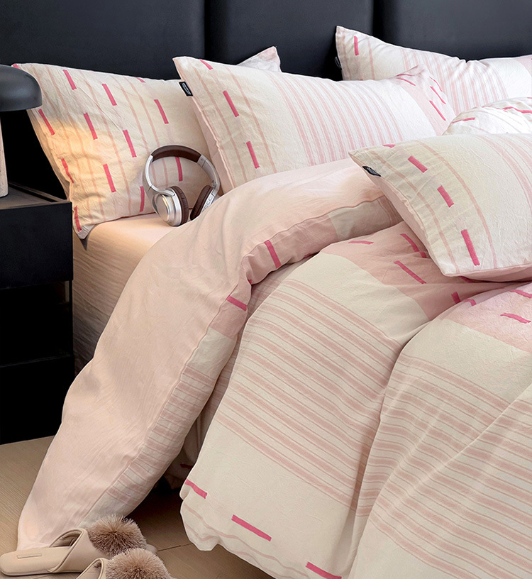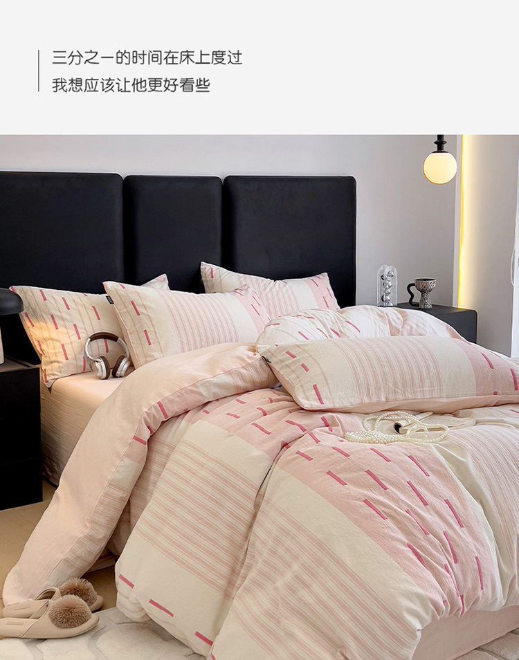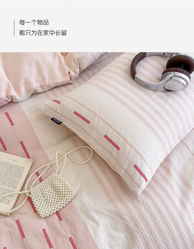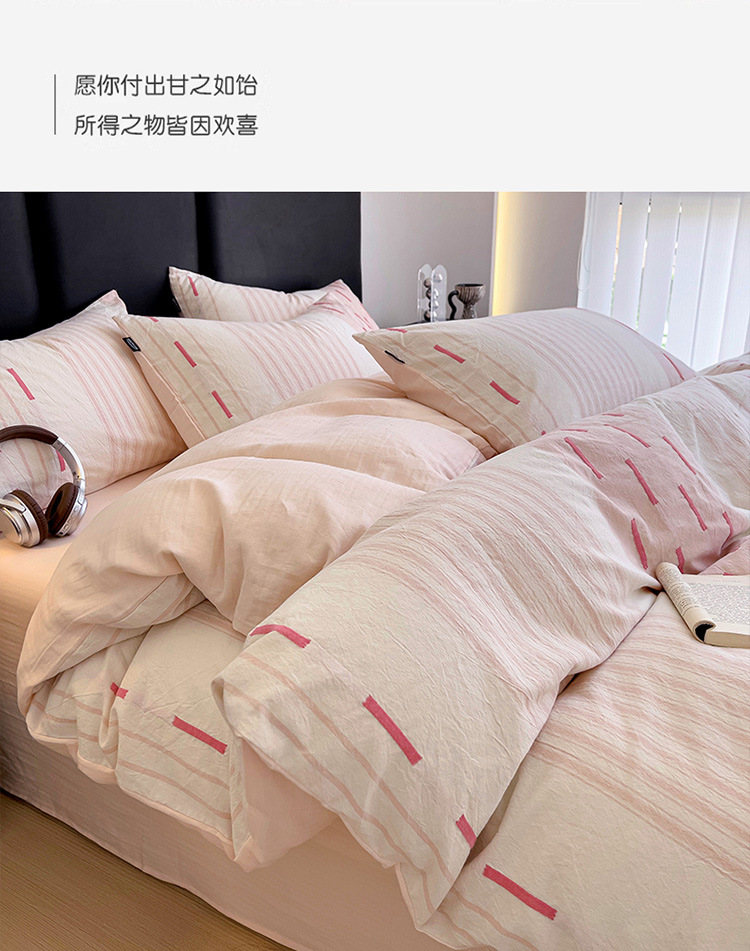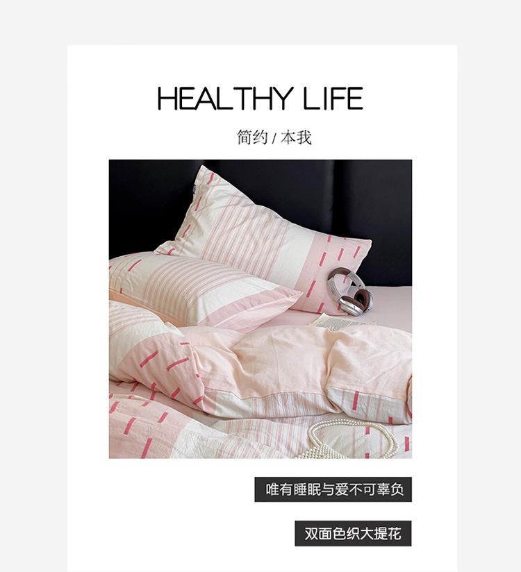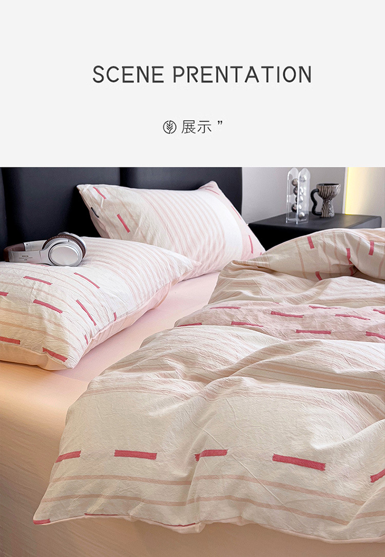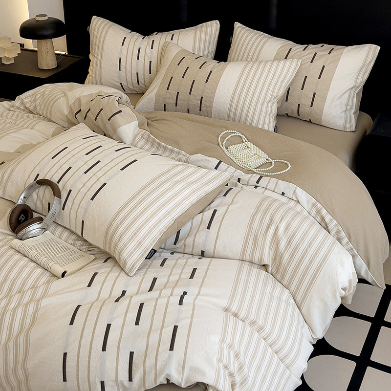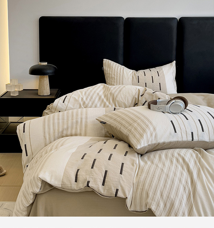 자카드 퓨어 코튼 베드 4 피스 세트 심플 스트라이프 퓨어 코튼 원사 염색 원피스 퀼트 커버 침대 시트 학생 기숙사 3 피스 세트스토어 가기