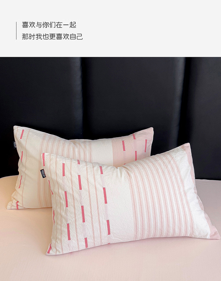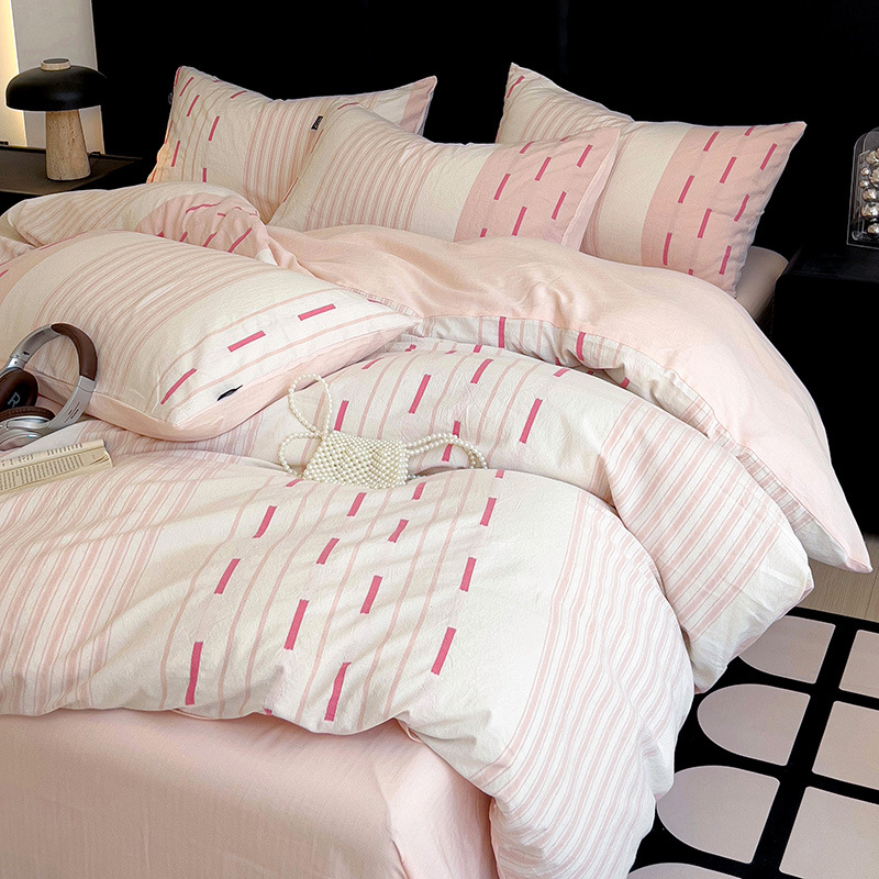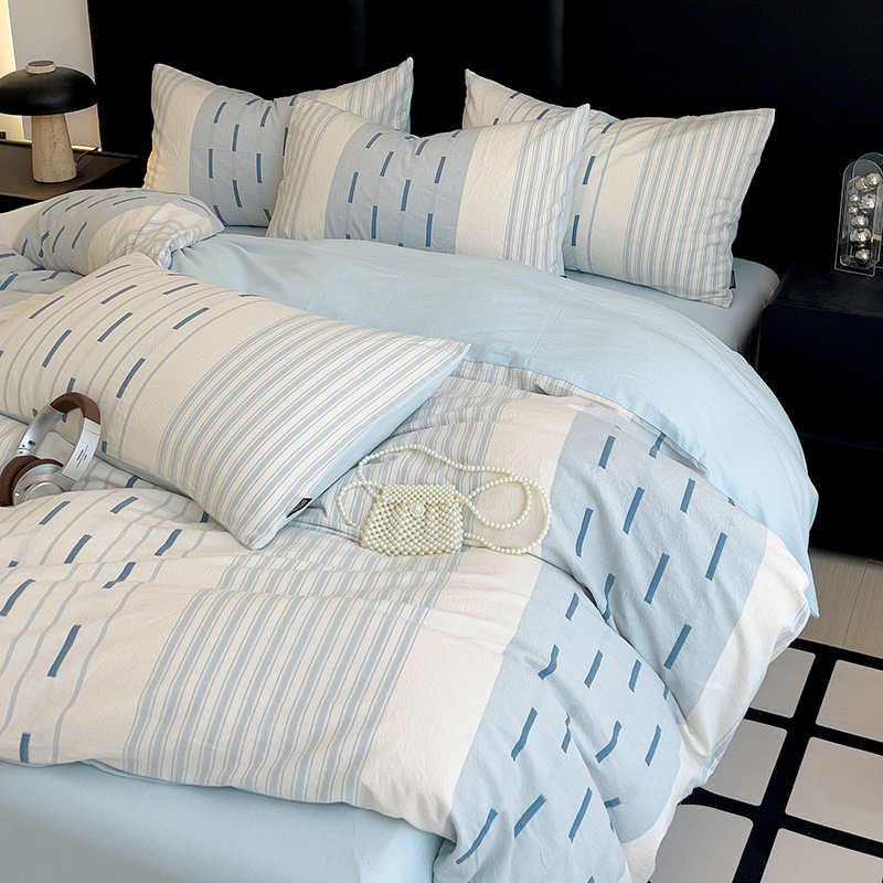 자카드 퓨어 코튼 베드 4 피스 세트 심플 스트라이프 퓨어 코튼 원사 염색 원피스 퀼트 커버 침대 시트 학생 기숙사 3 피스 세트