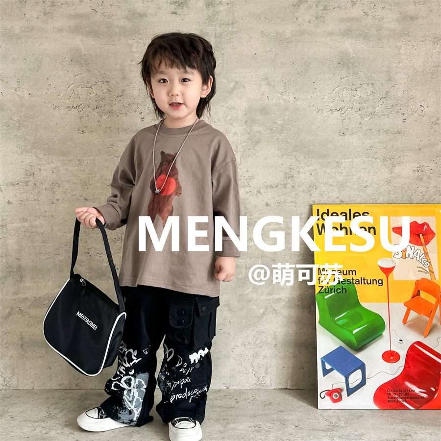 Meng Su 아동복 어린이 긴팔 티셔츠 2024 가을 패션 브랜드 아기 만화 긴팔 소년베이스 셔츠 어린이 티셔츠스토어 가기