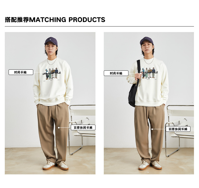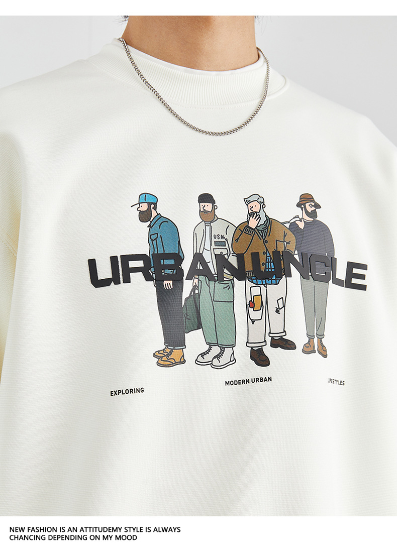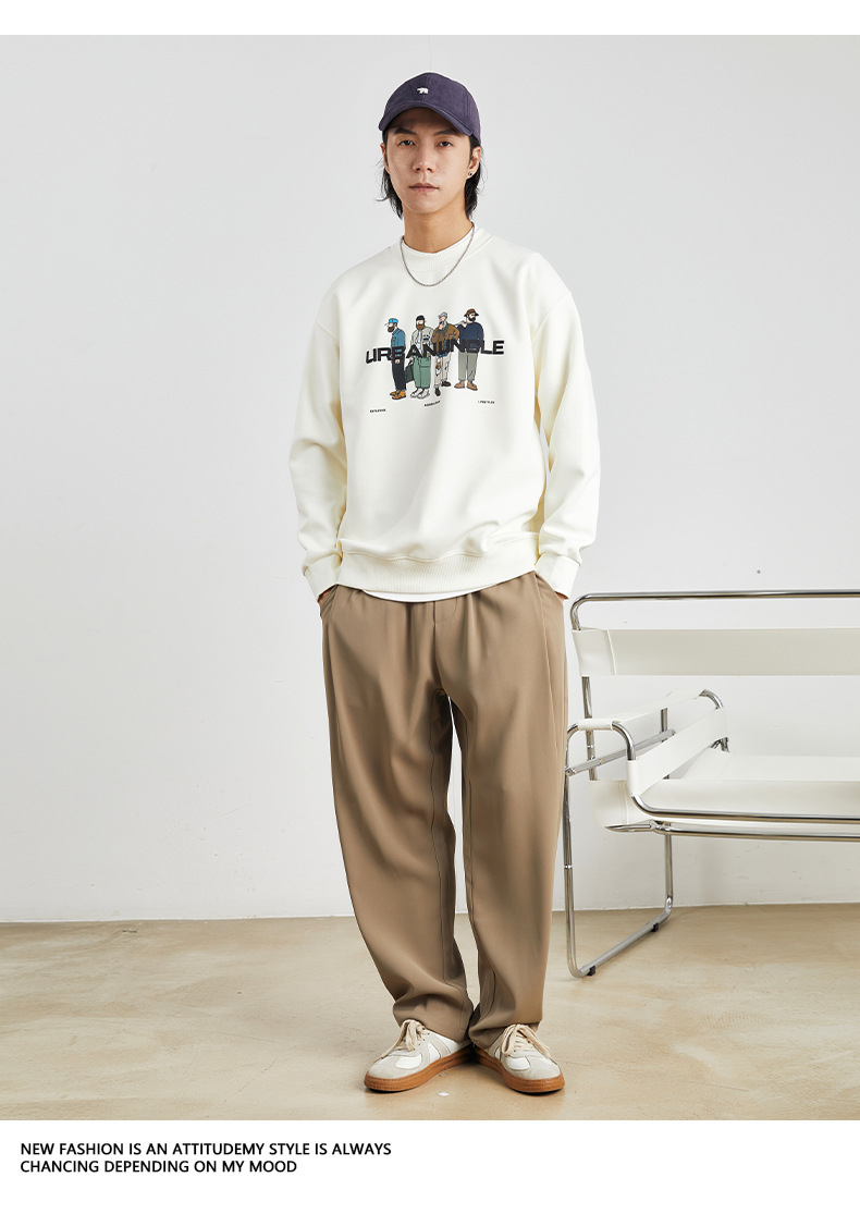 남성용 고급 트렌디 브랜드 프린트 헤비웨이트 라운드넥 스웨트셔츠 남성 봄 가을용 루즈핏 커플 풀오버 상의
