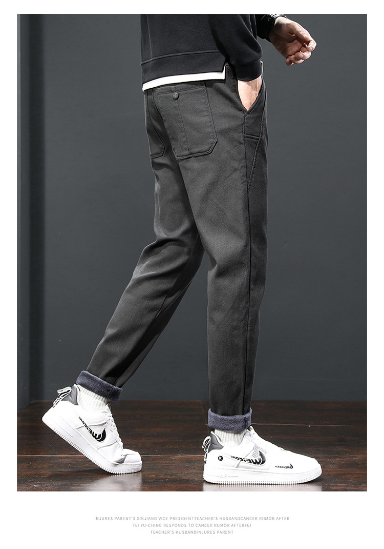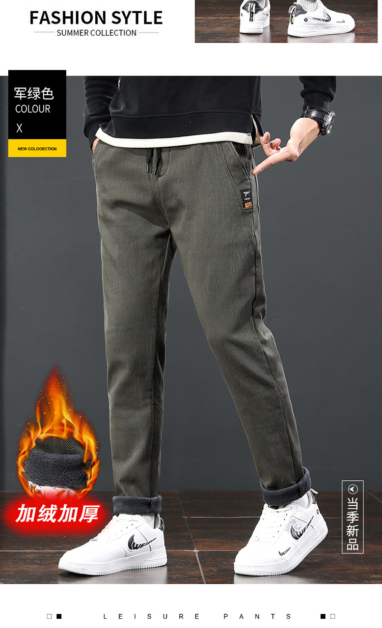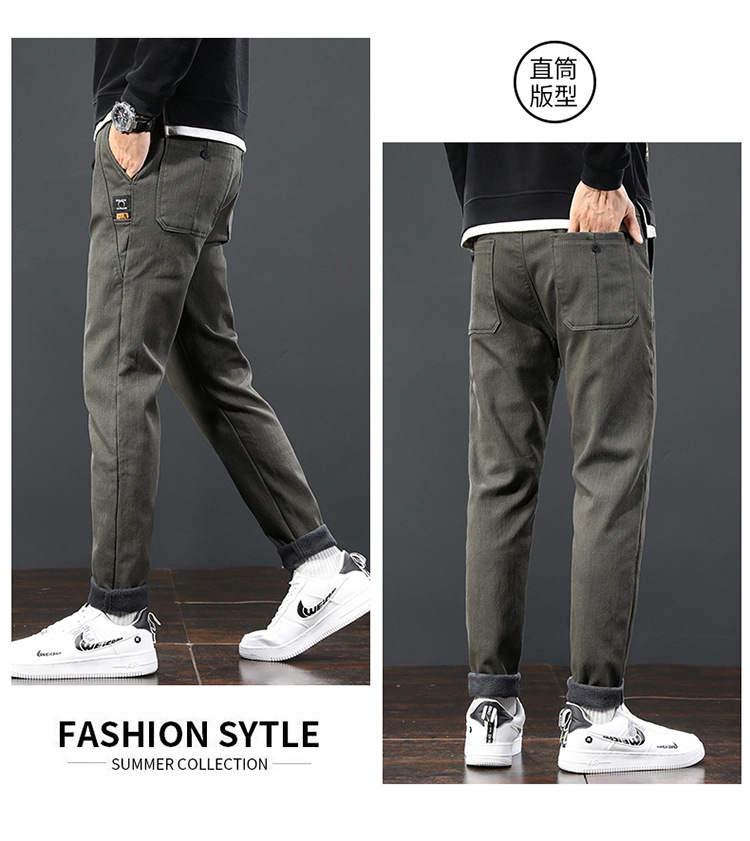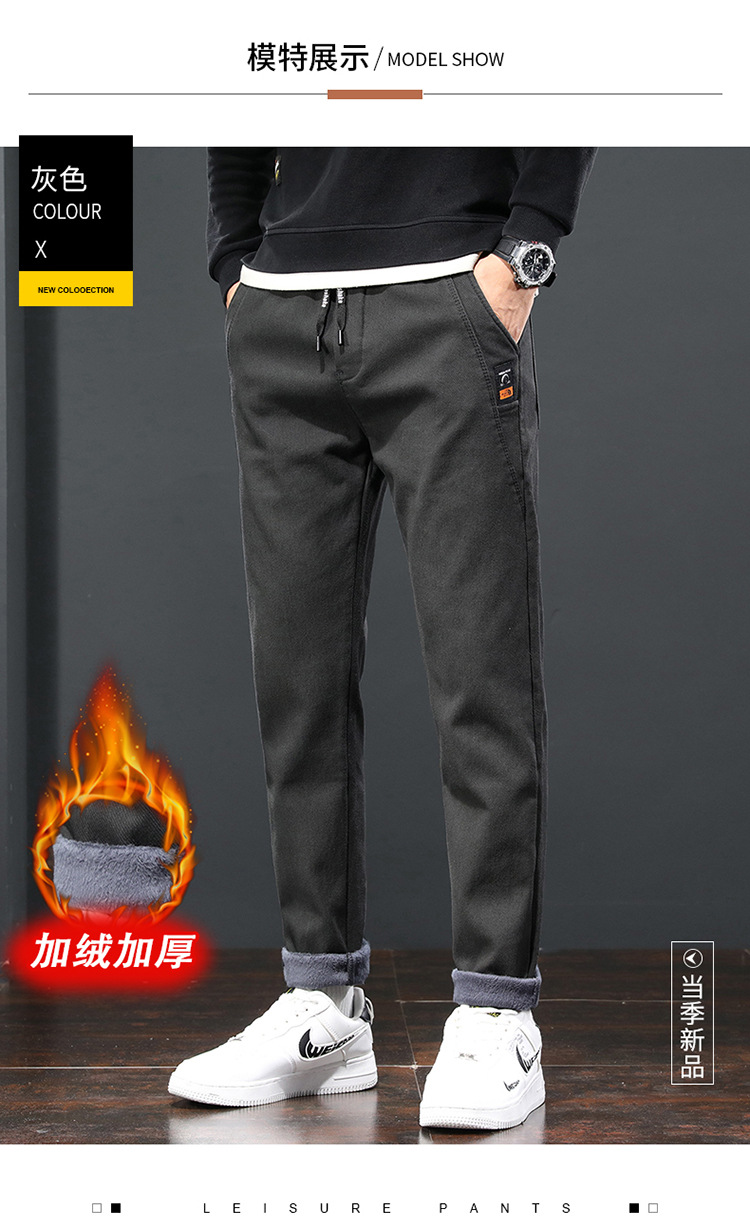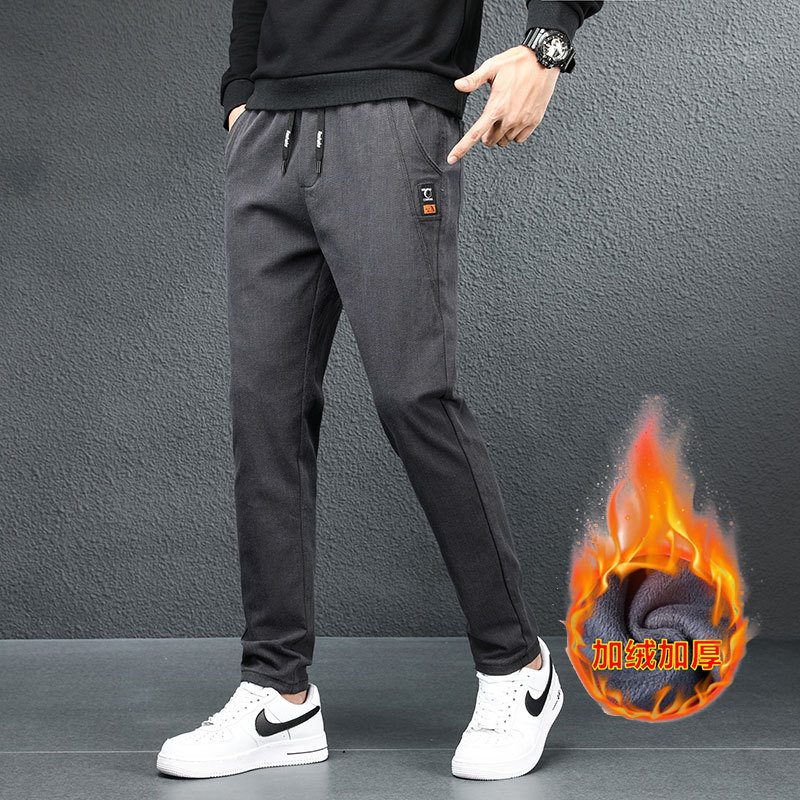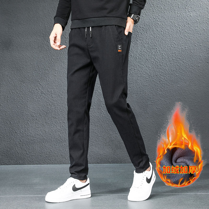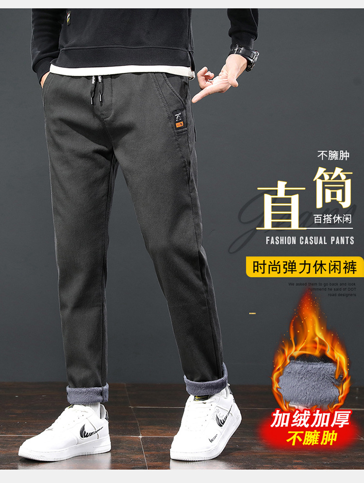 2024 가을과 겨울 새로운 남성 기모 두꺼운 캐주얼 바지 한국 패션 단색 캐주얼 바지 남성복스토어 가기