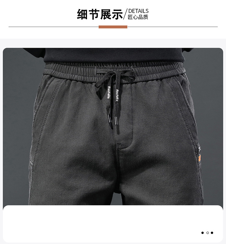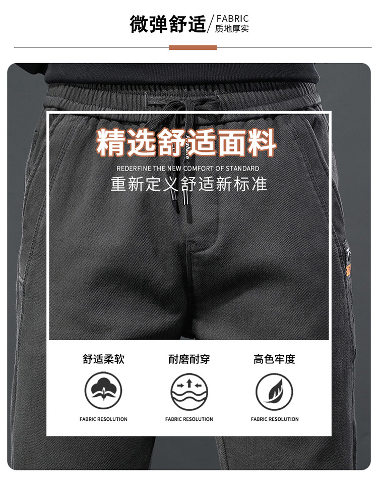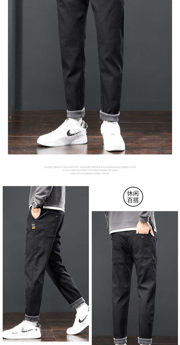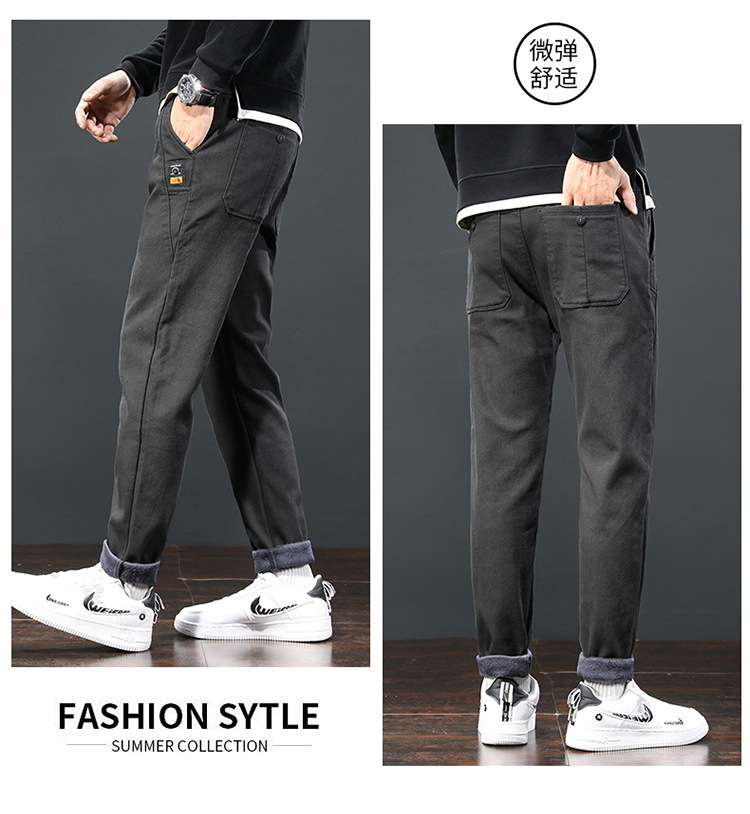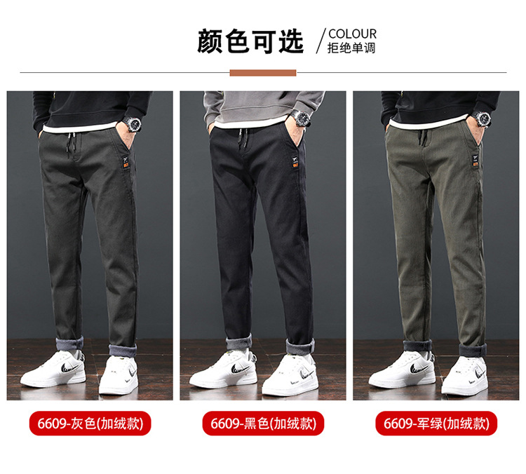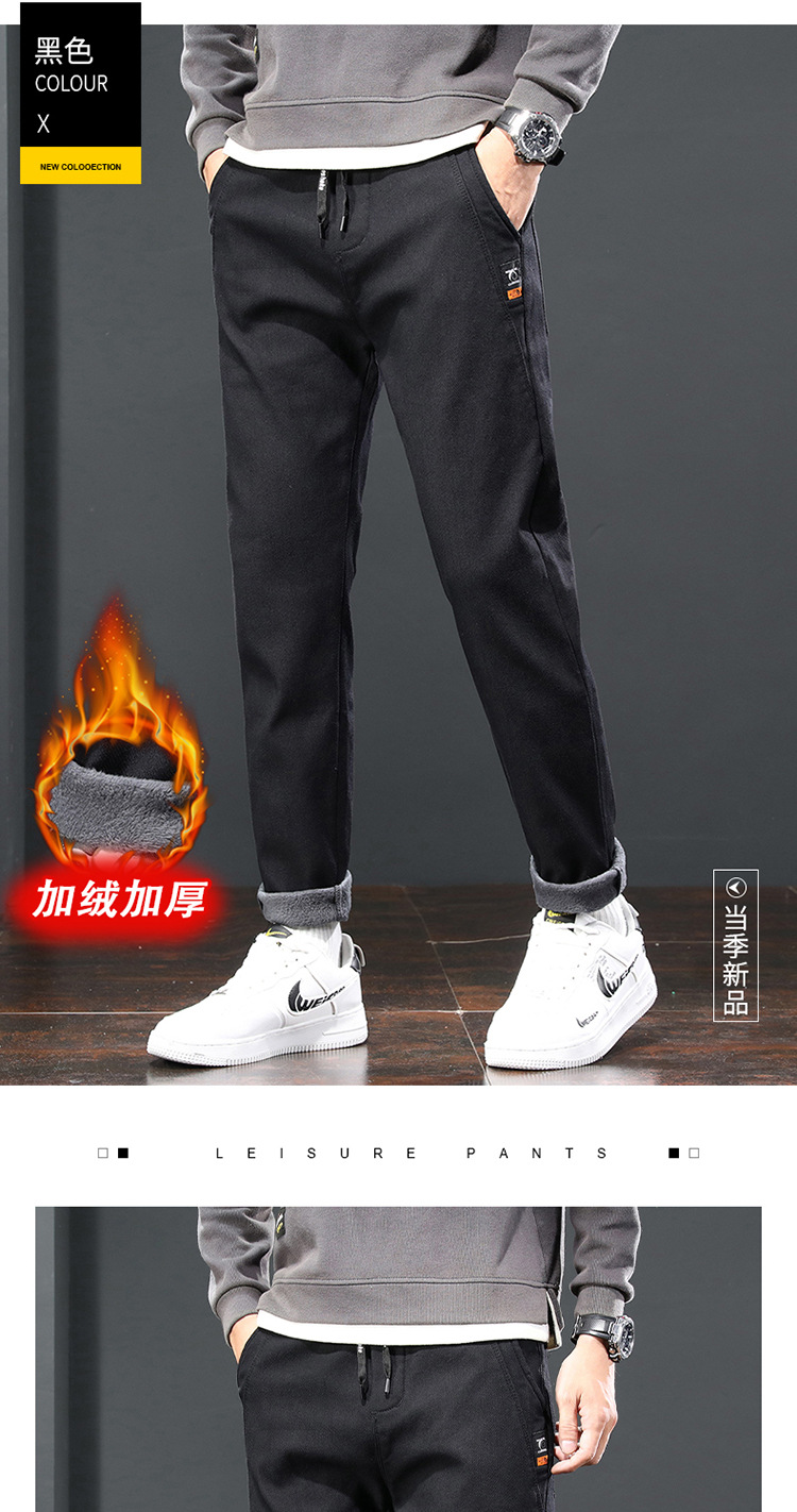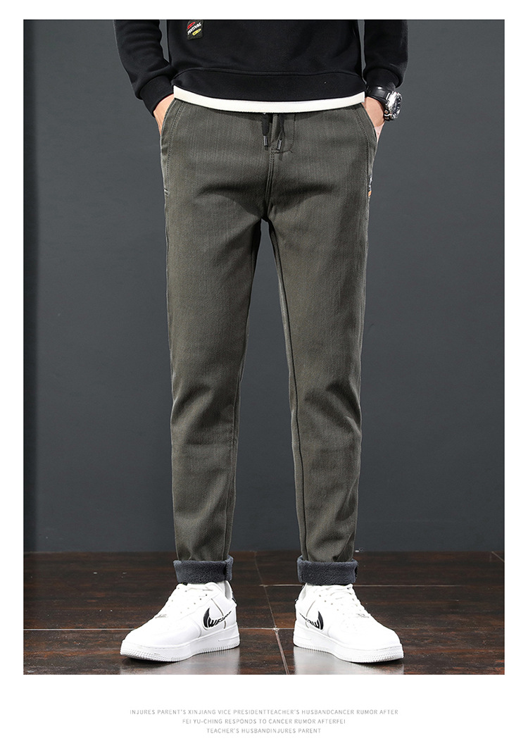 2024 가을과 겨울 새로운 남성 기모 두꺼운 캐주얼 바지 한국 패션 단색 캐주얼 바지 남성복스토어 가기