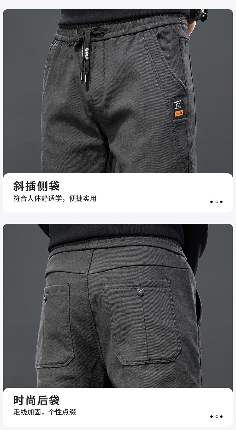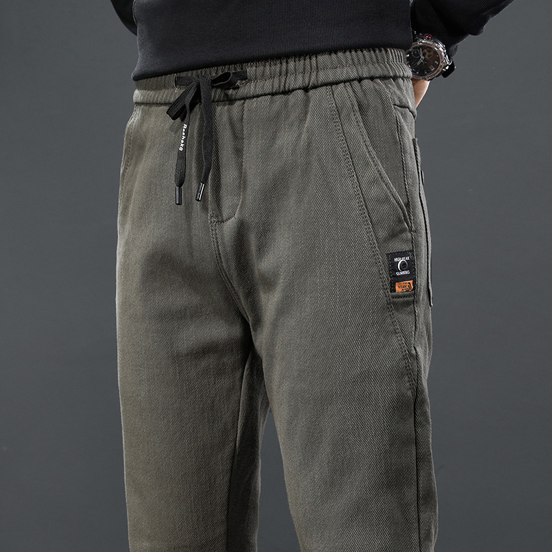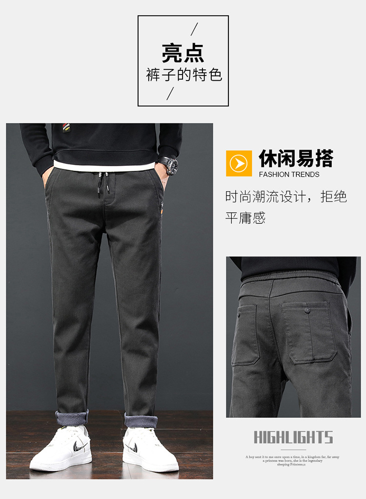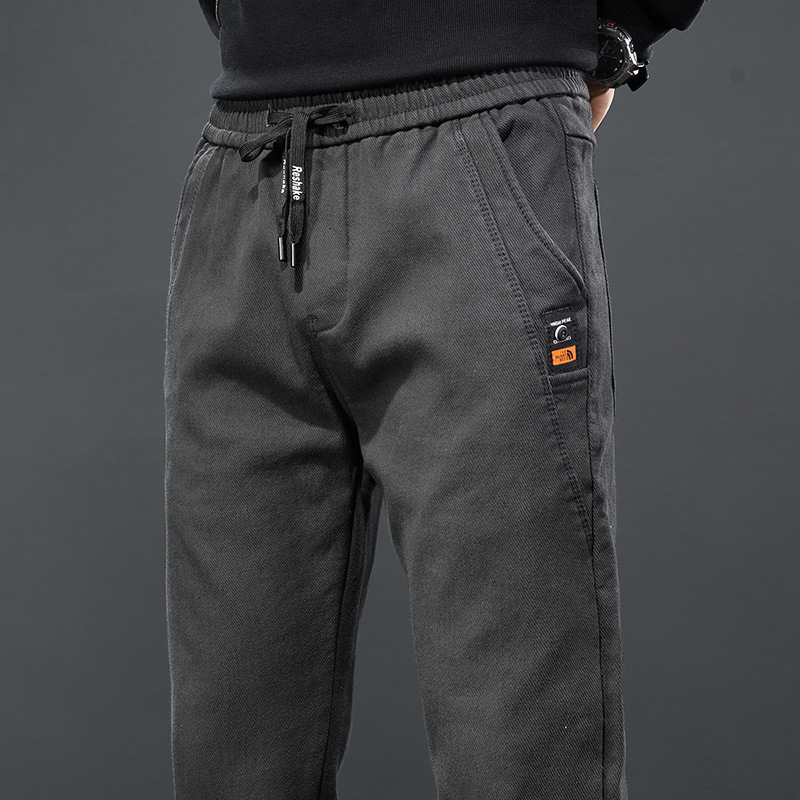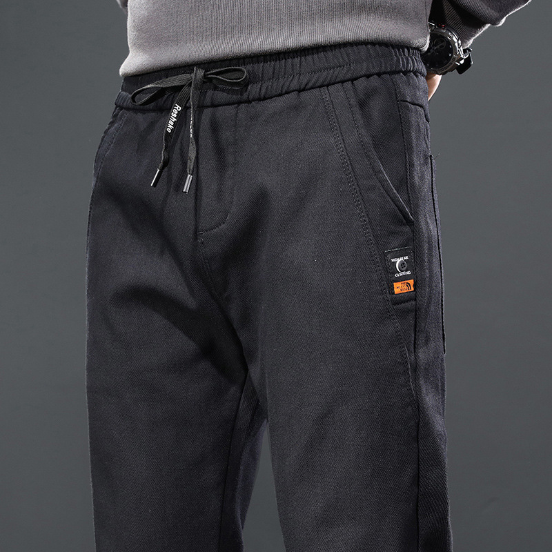 2024 가을과 겨울 새로운 남성 기모 두꺼운 캐주얼 바지 한국 패션 단색 캐주얼 바지 남성복