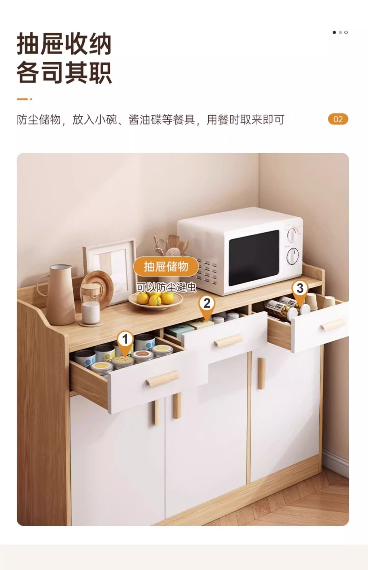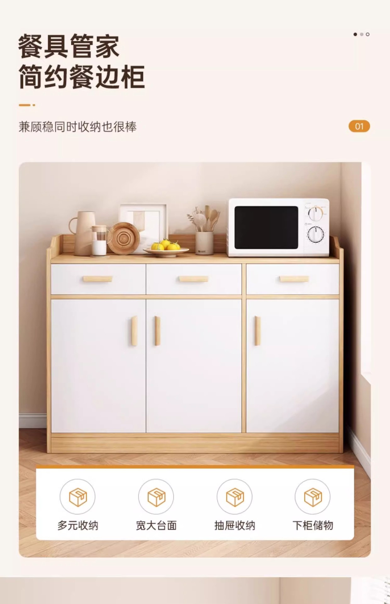 家用多功能客厅收纳置物柜茶水柜落地实木餐边柜子靠墙一体储物柜
