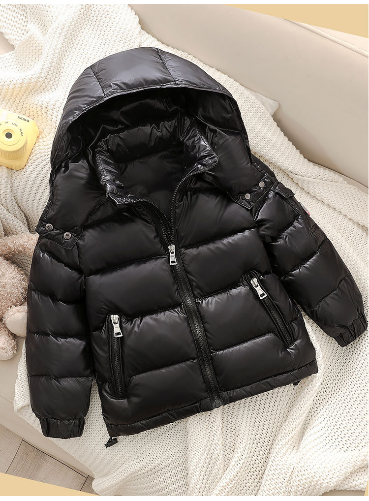아동용 다운 재킷 남아용 짧은 스타일 2025 겨울 두꺼운 M 브랜드 동일 스타일 삼중 방수 광택 중대형 아동용 여아용 코트