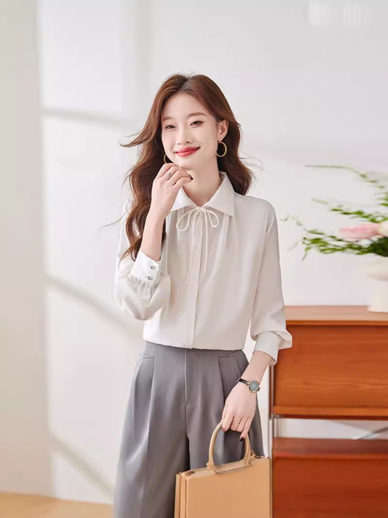 가을 2024 국경 여성 셔츠 긴팔 전문 여성 셔츠 기질 OL 통근 패션 화이트 셔츠 하이 엔드스토어 가기
