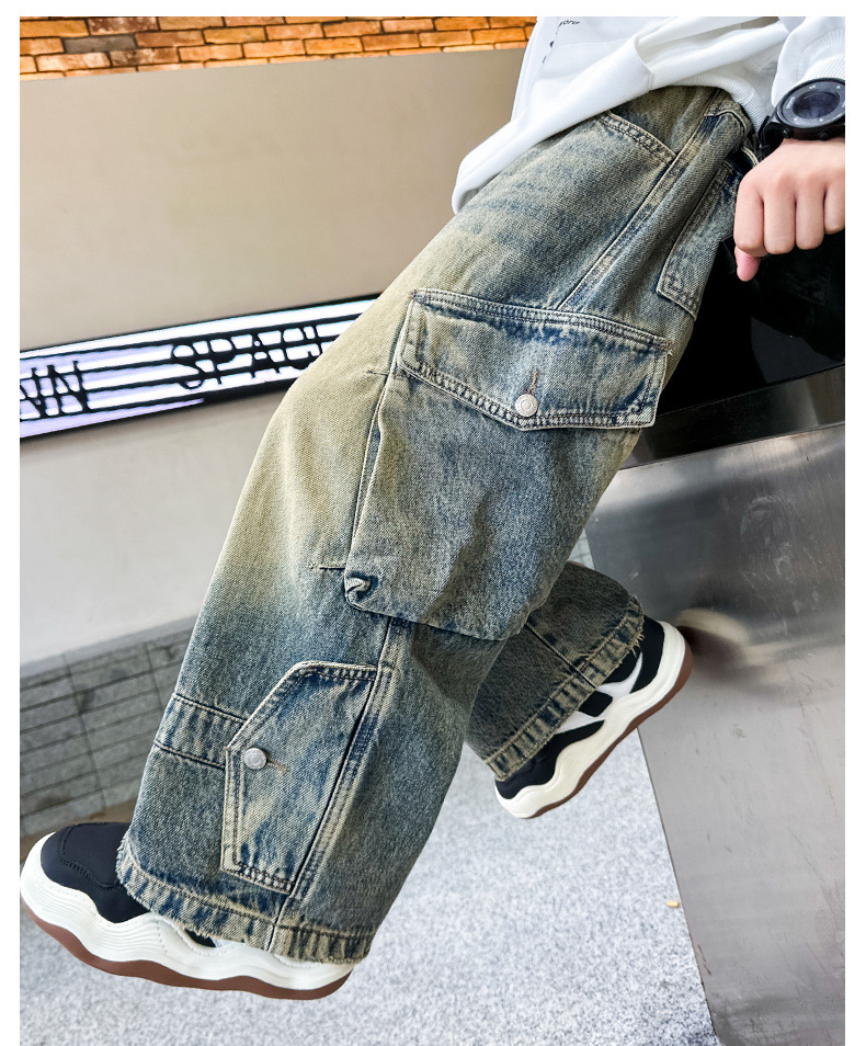아동복 남아 작업복 포켓 데님 팬츠 가을 신상 2025 남아 레트로 와이드 팬츠 중대형 아동 봄스토어 가기