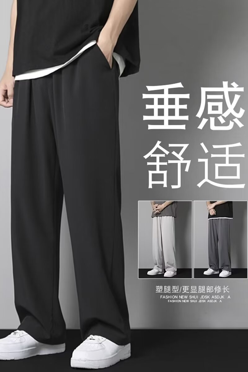 얼음 실크 바지 소년을위한 여름 얇은 느슨한 직선 튜브 느슨한 허리 빠른 건조 스포츠 캐주얼 바지스토어 가기