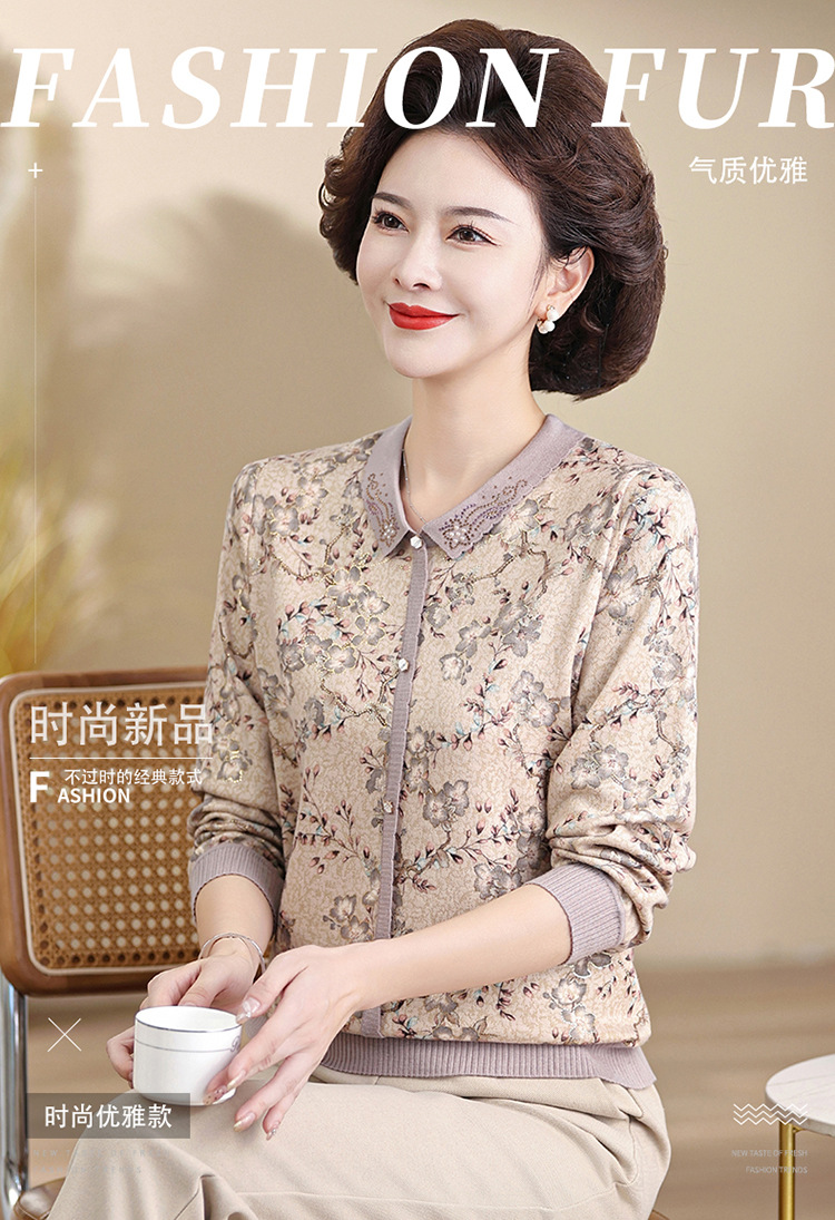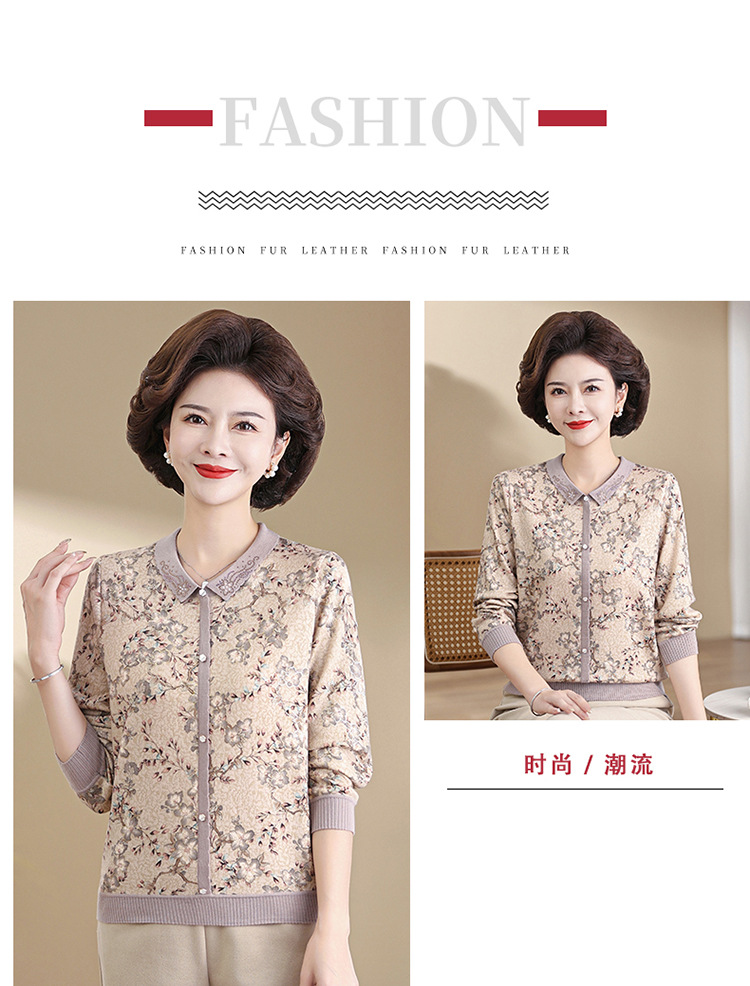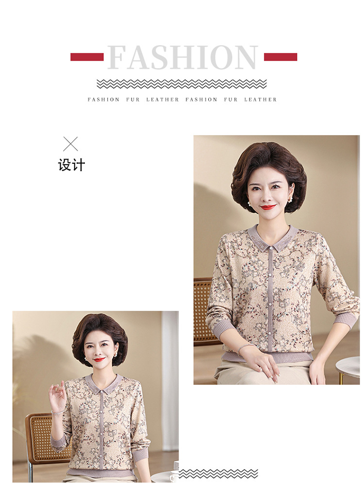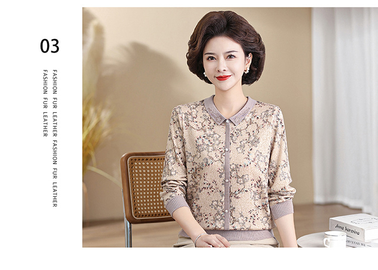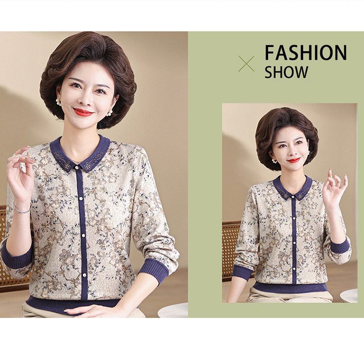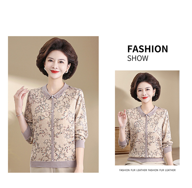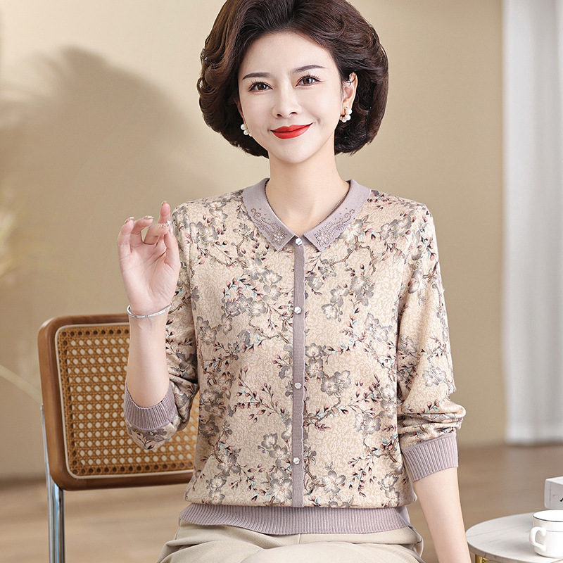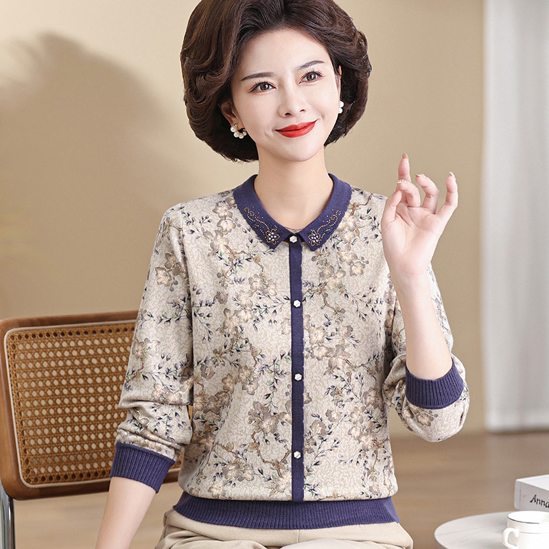 새로운 스타일 어머니의 서양식 최고 중년 및 노인 봄 및 가을 니트 베이스 셔츠 여성용 느슨한 레이저 느슨한 긴팔 티셔츠스토어 가기