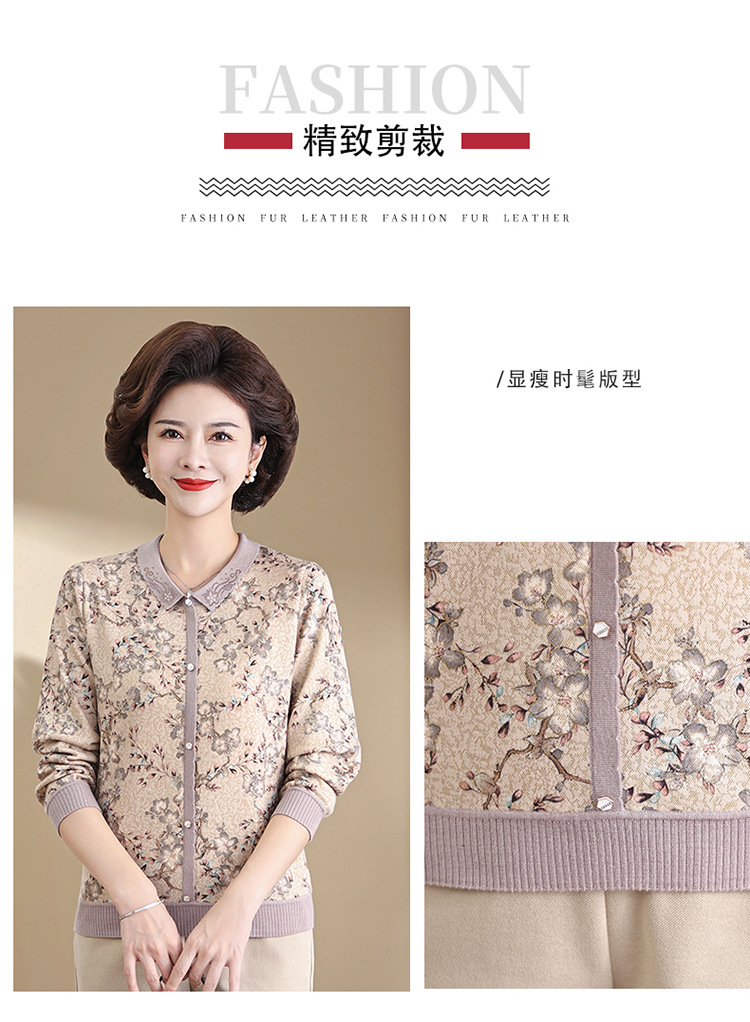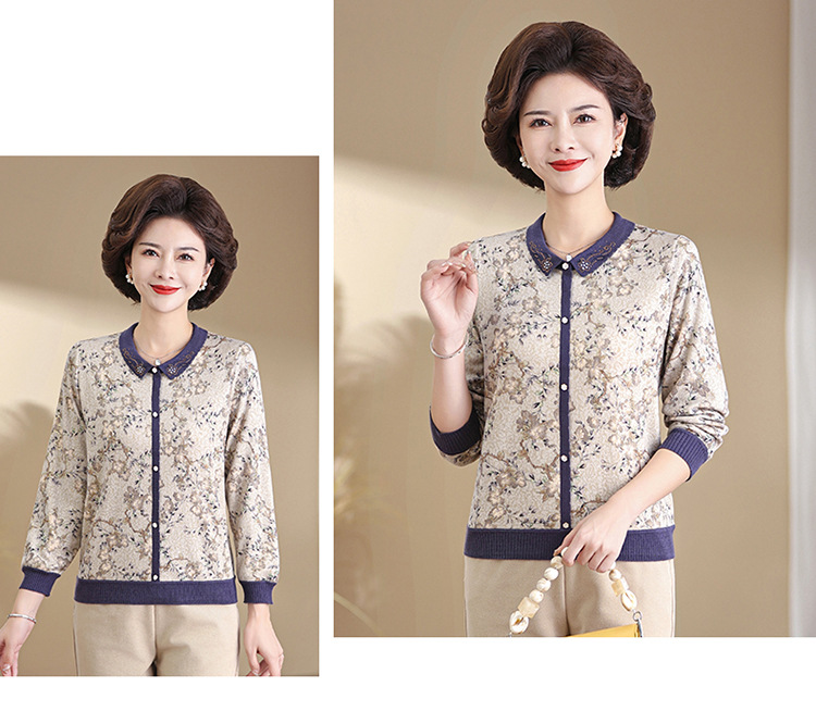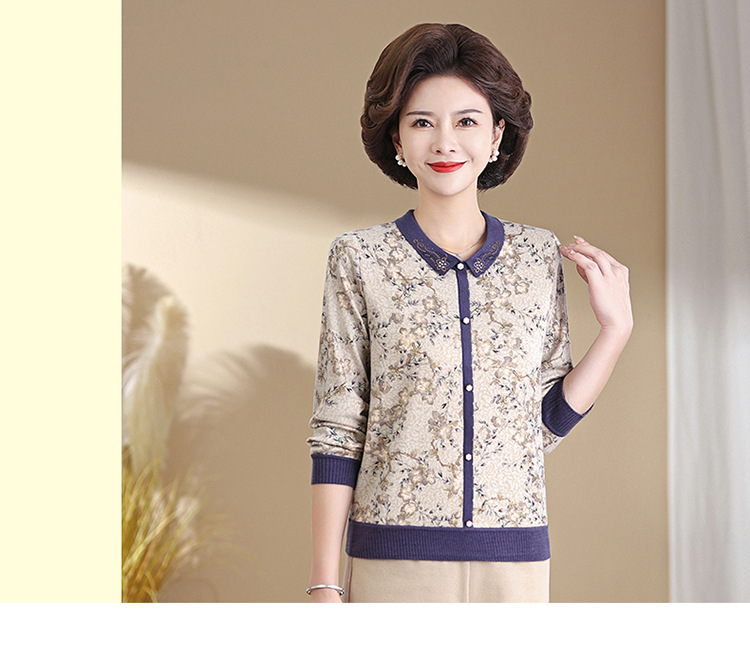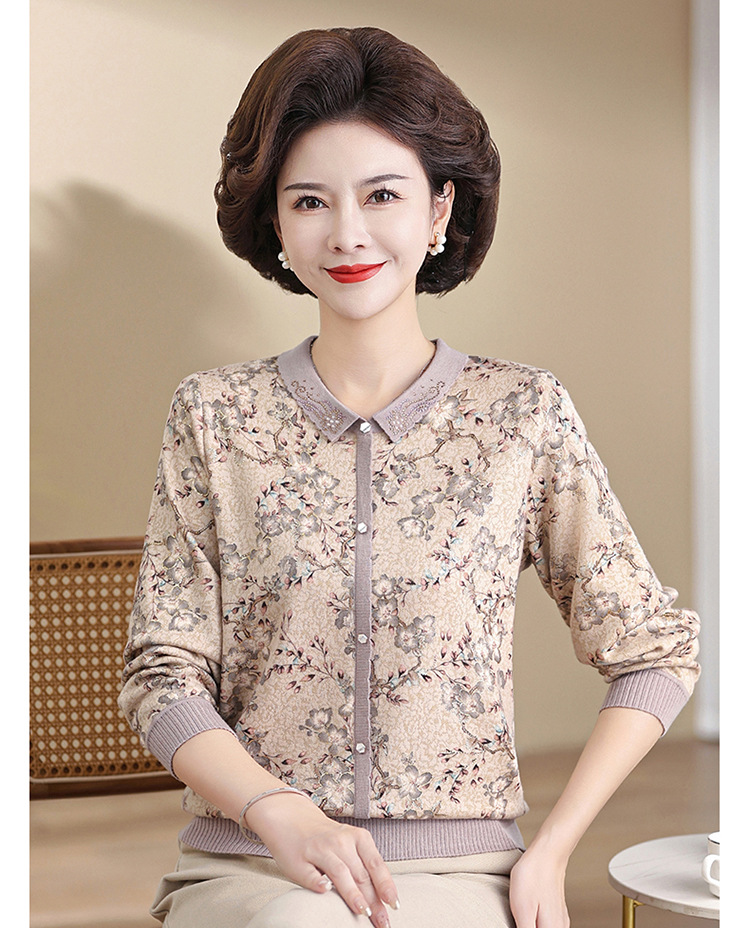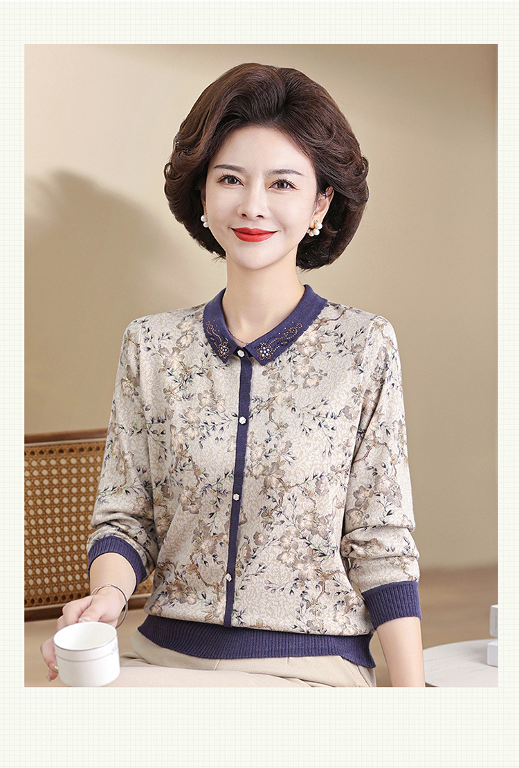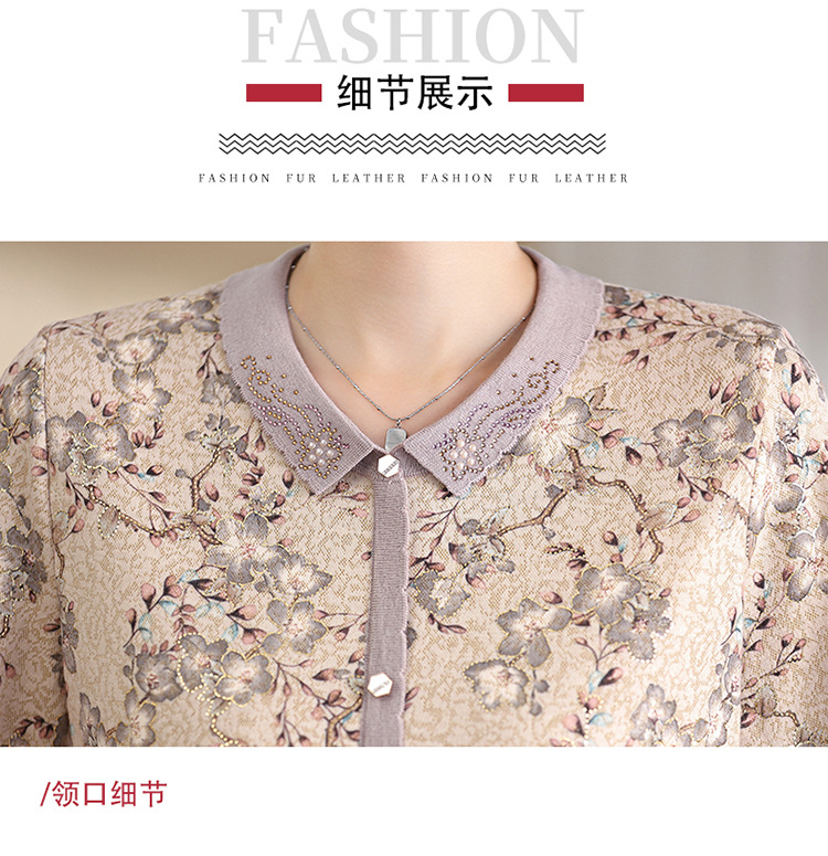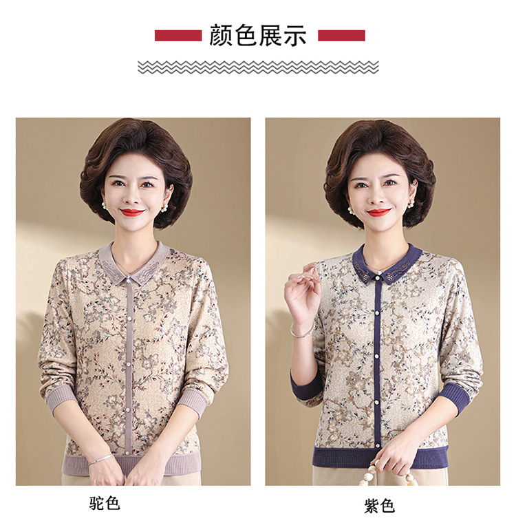 새로운 스타일 어머니의 서양식 최고 중년 및 노인 봄 및 가을 니트 베이스 셔츠 여성용 느슨한 레이저 느슨한 긴팔 티셔츠스토어 가기