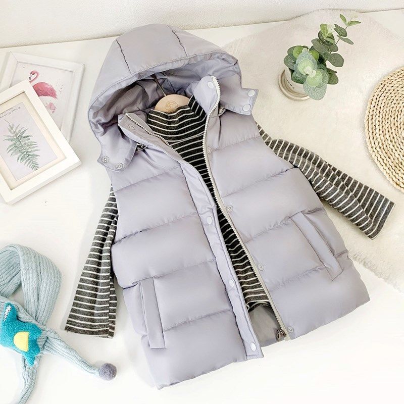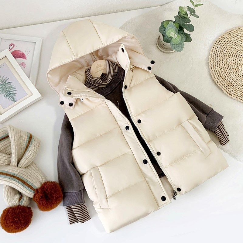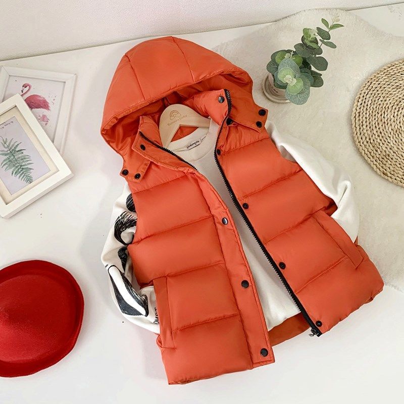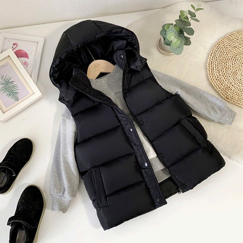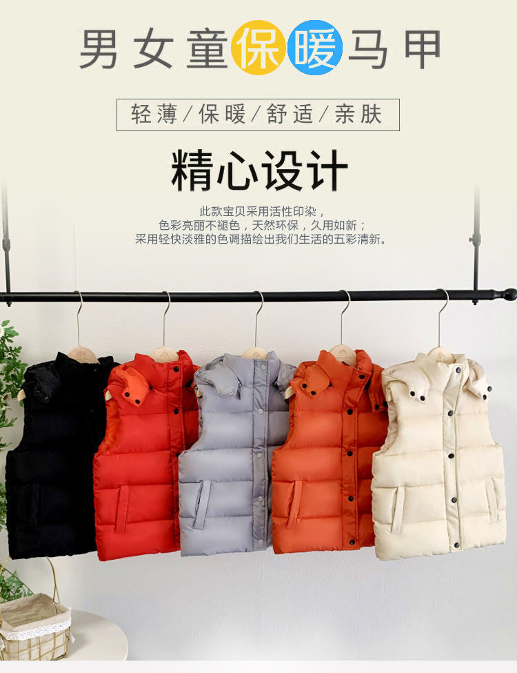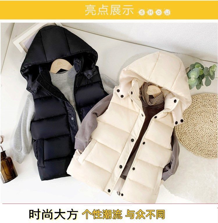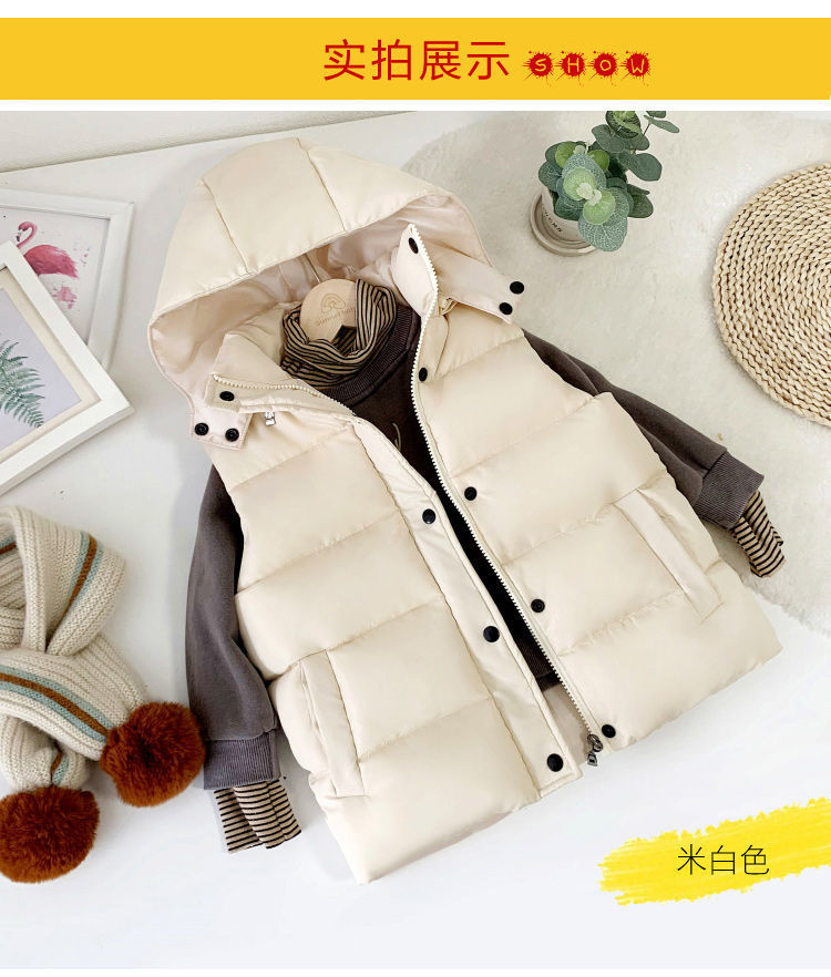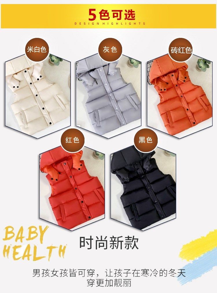 소년 소녀를위한 어린이 다운 코튼 조끼 가을 및 겨울 의상 외국 스타일 아기의 중년 어린이 조끼 후드 웨이스트 코트