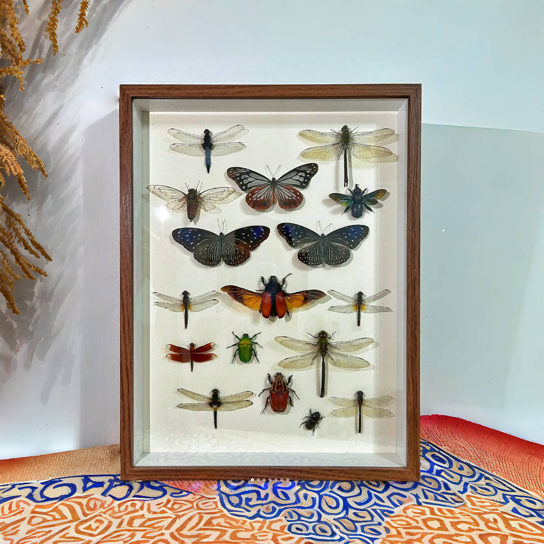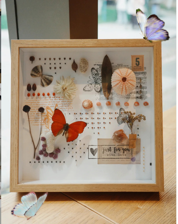 나무 3차원 중공 3CM5cm 유리 드라이플라워 나비 표본 액자, 자체 조립식 A3 벽걸이 및 탁상용 액자스토어 가기