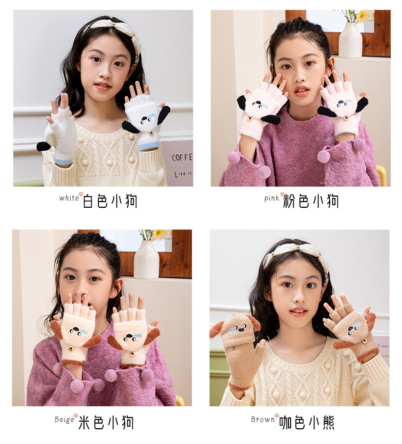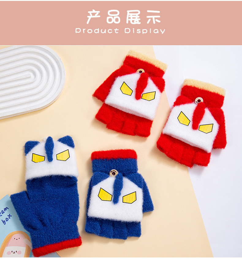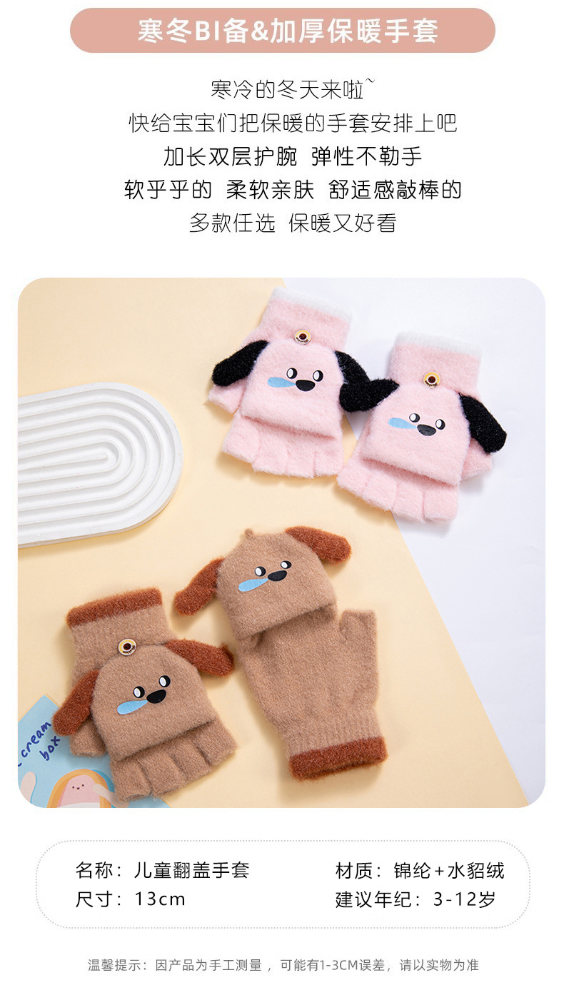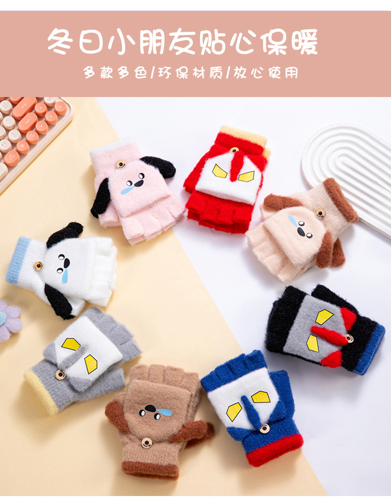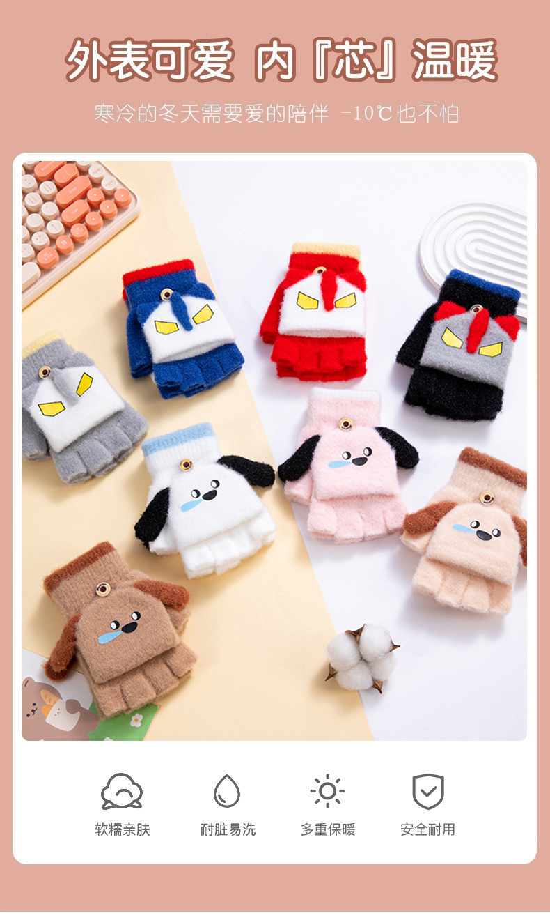 2024新款保暖可爱儿童半指翻盖手套。材质锦纶。抗起球水晶纱线材料