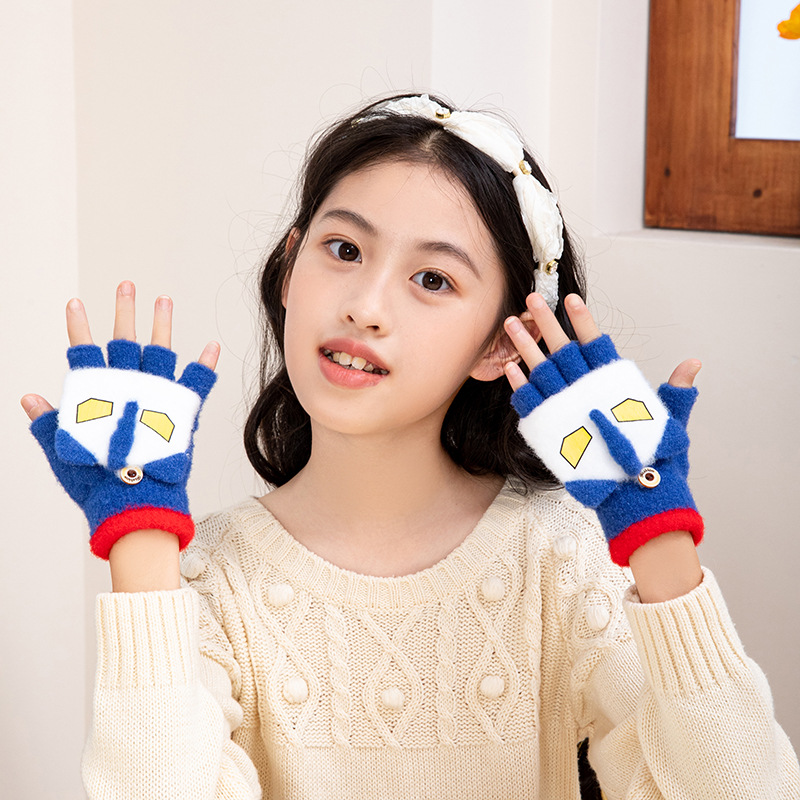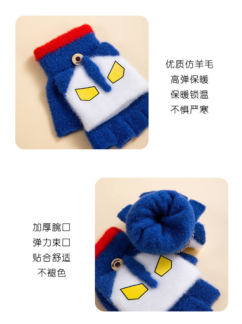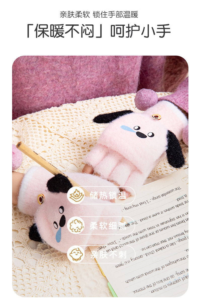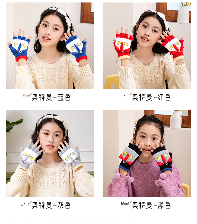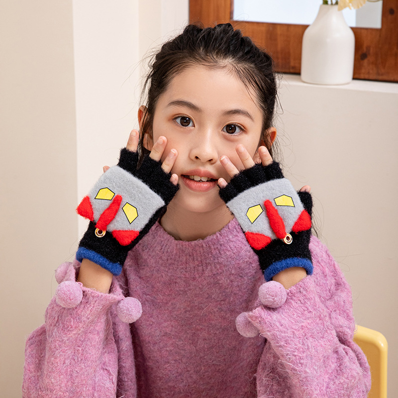 2024新款保暖可爱儿童半指翻盖手套。材质锦纶。抗起球水晶纱线材料