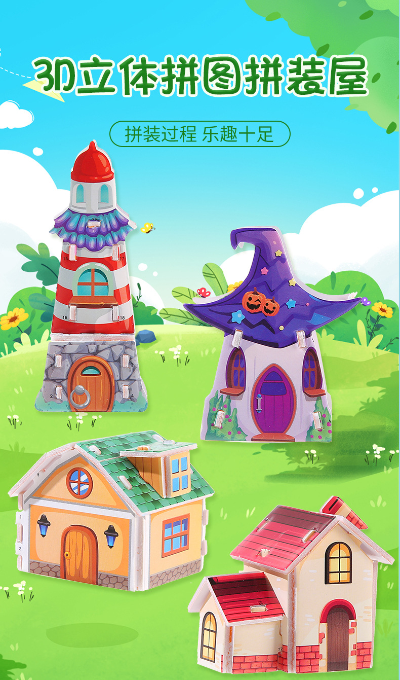 3D 입체 퍼즐 DIY 종이 손으로 조립 작은 집 선물 창조적 인 어린이 장난감 3-6 세 선물 도매스토어 가기