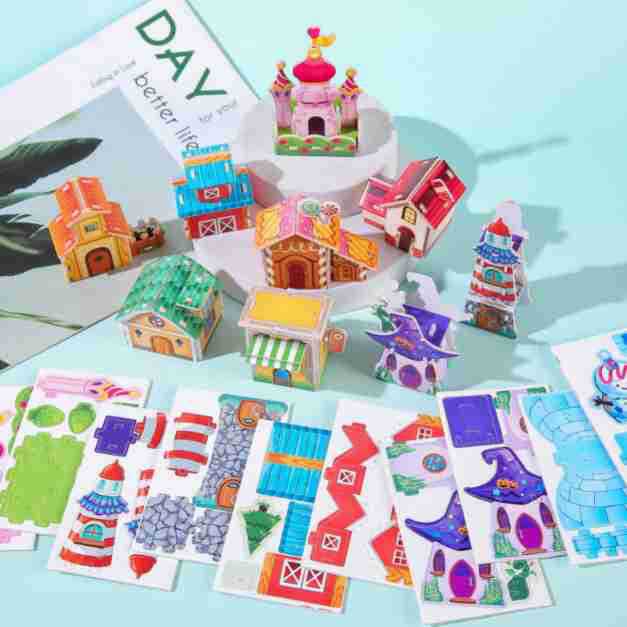 3D 입체 퍼즐 DIY 종이 손으로 조립 작은 집 선물 창조적 인 어린이 장난감 3-6 세 선물 도매