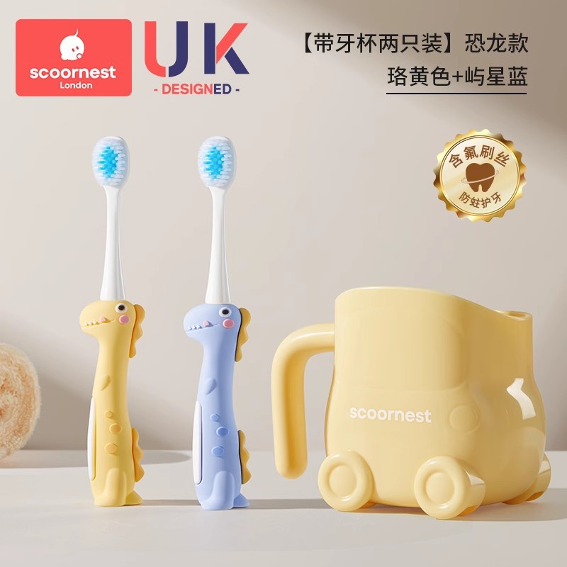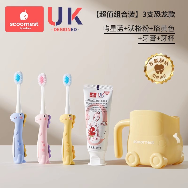 • [불소 3팩 + 컵 + 치약] 공룡옐로우 + 공룡블루 + 공룡가루 + 구강세정컵 + 어린이치약