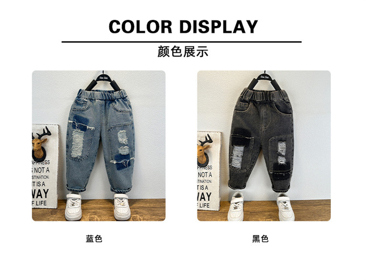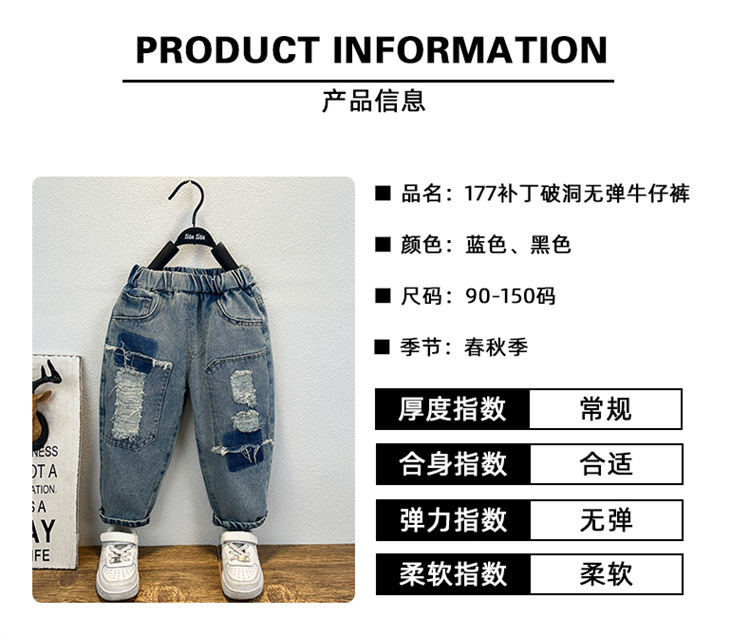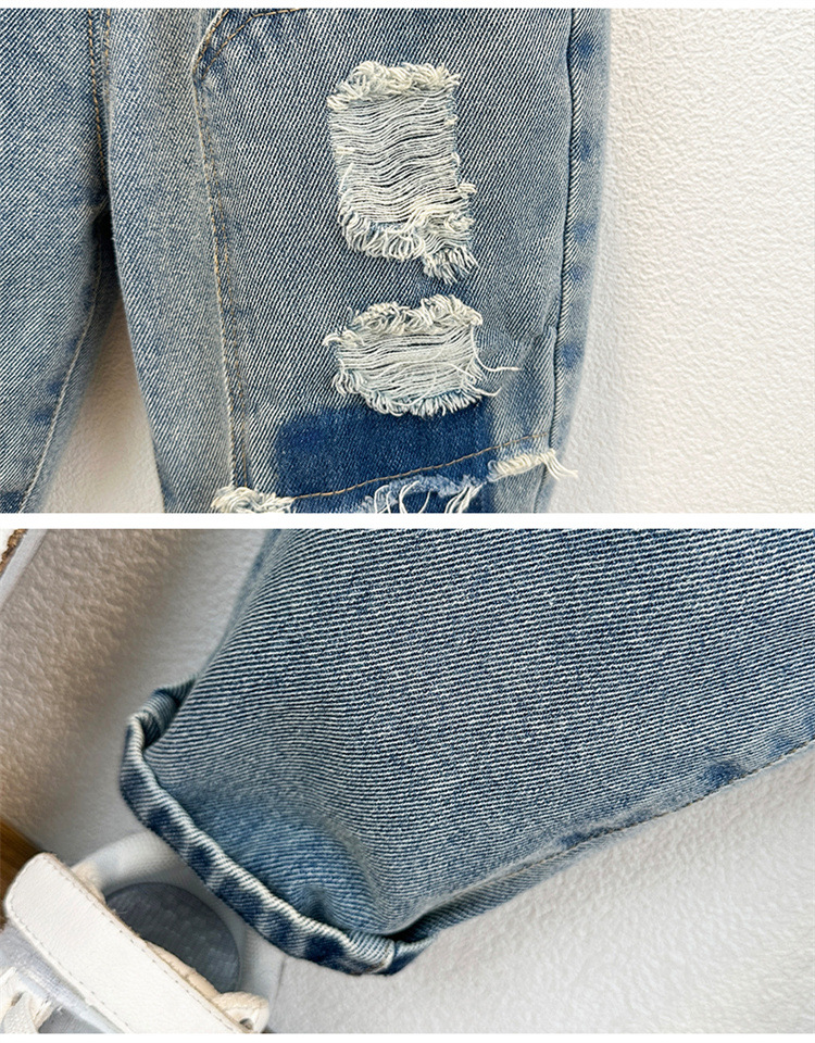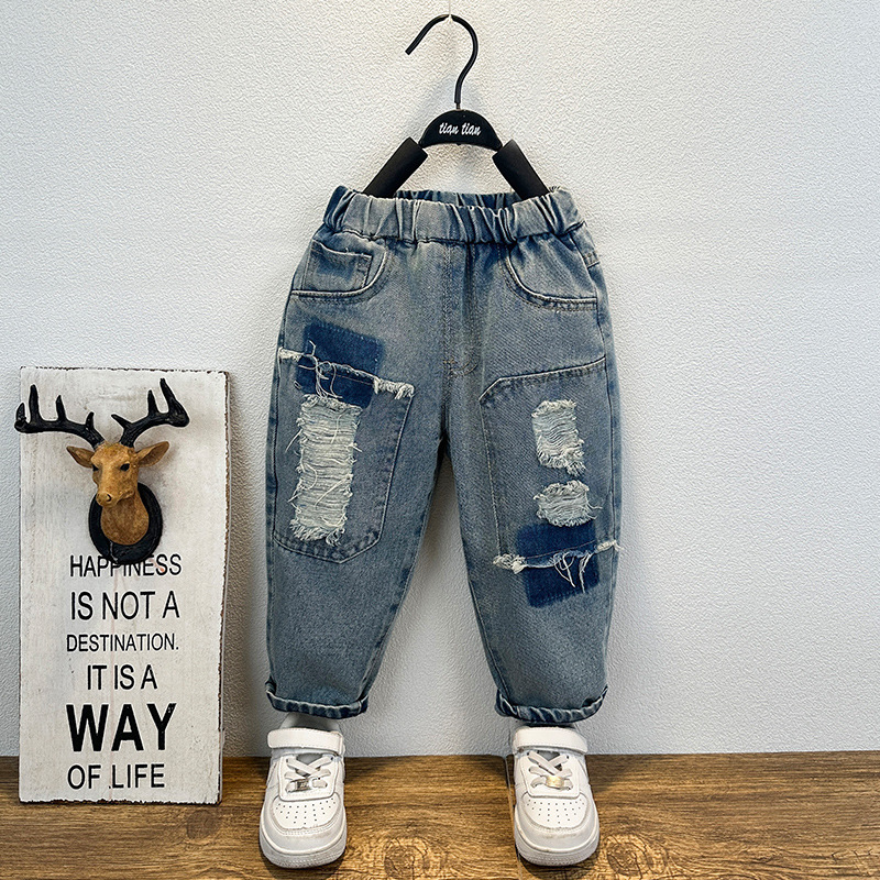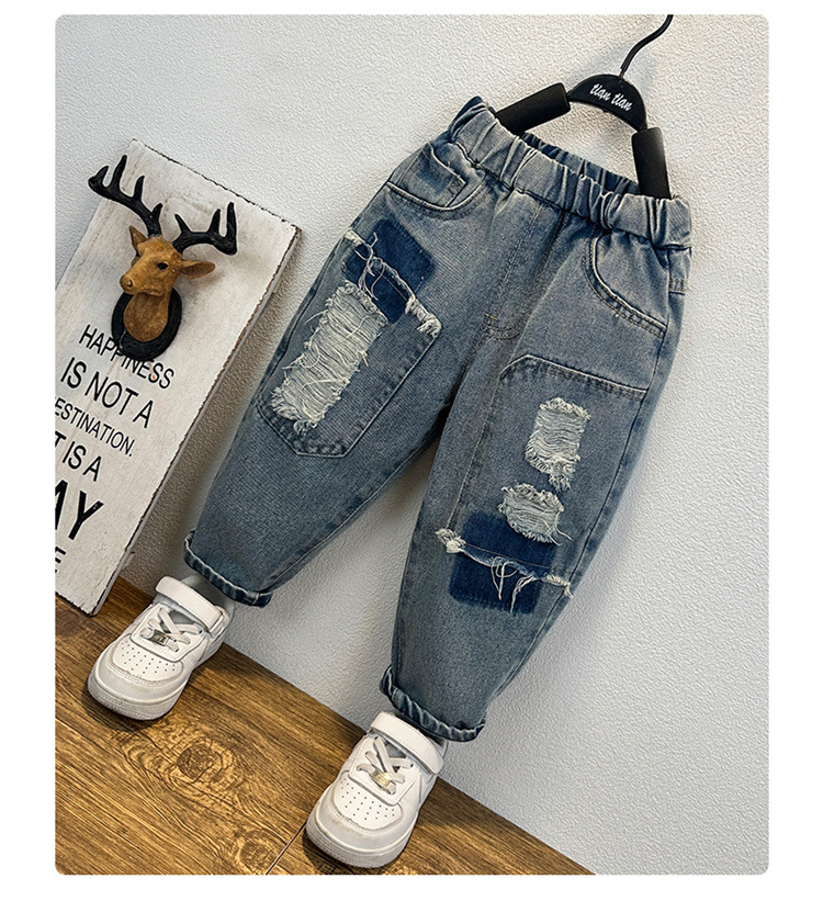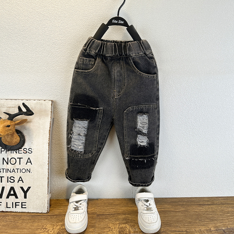 아동복 소년 청바지 2024 새로운 어린이 가을 착용 서양식 소년 봄과 가을 찢어진 올 매치 트렌디 바지스토어 가기