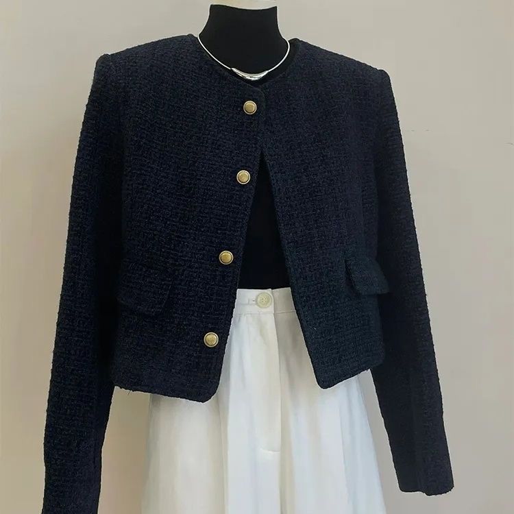 통통녀 샤오샹 스타일 봄 코트 프랑스 스타일 봄 가을 착용 새로운 2024 짧은 스타일 연예인 스타일 블랙 슈퍼 우아한스토어 가기