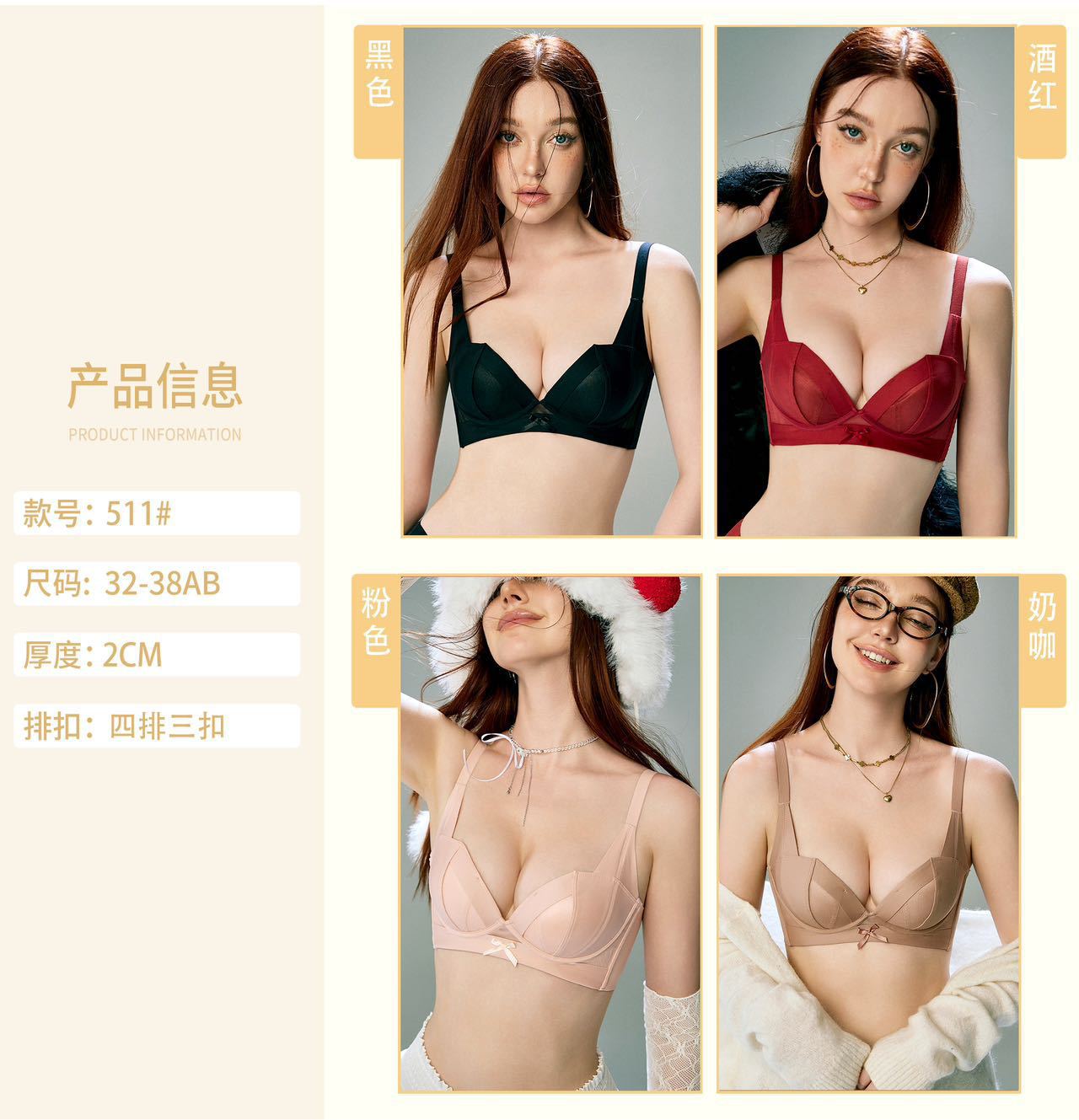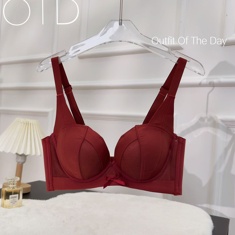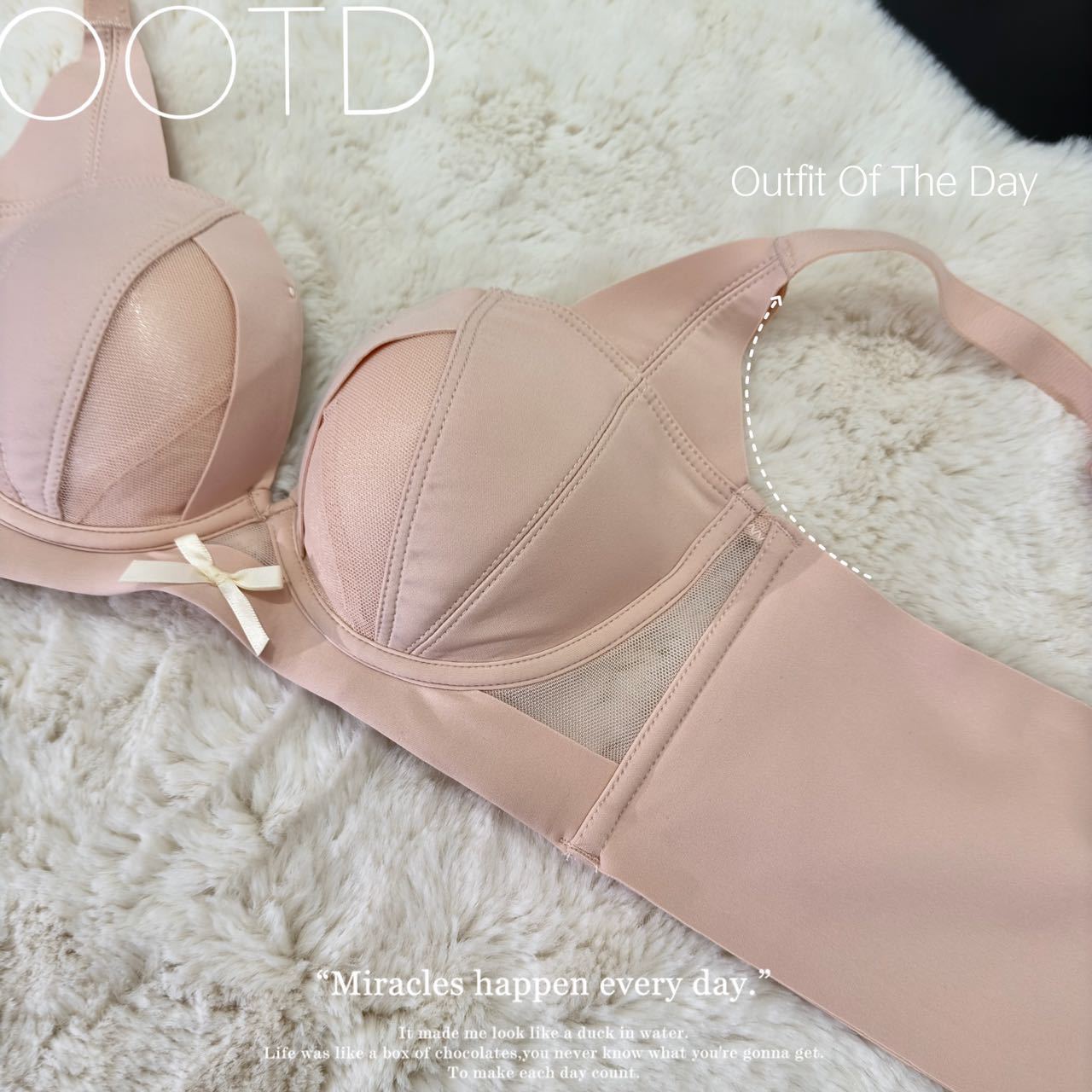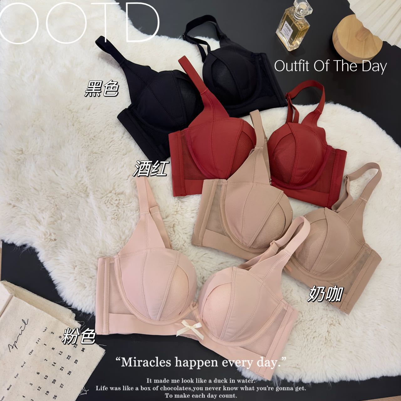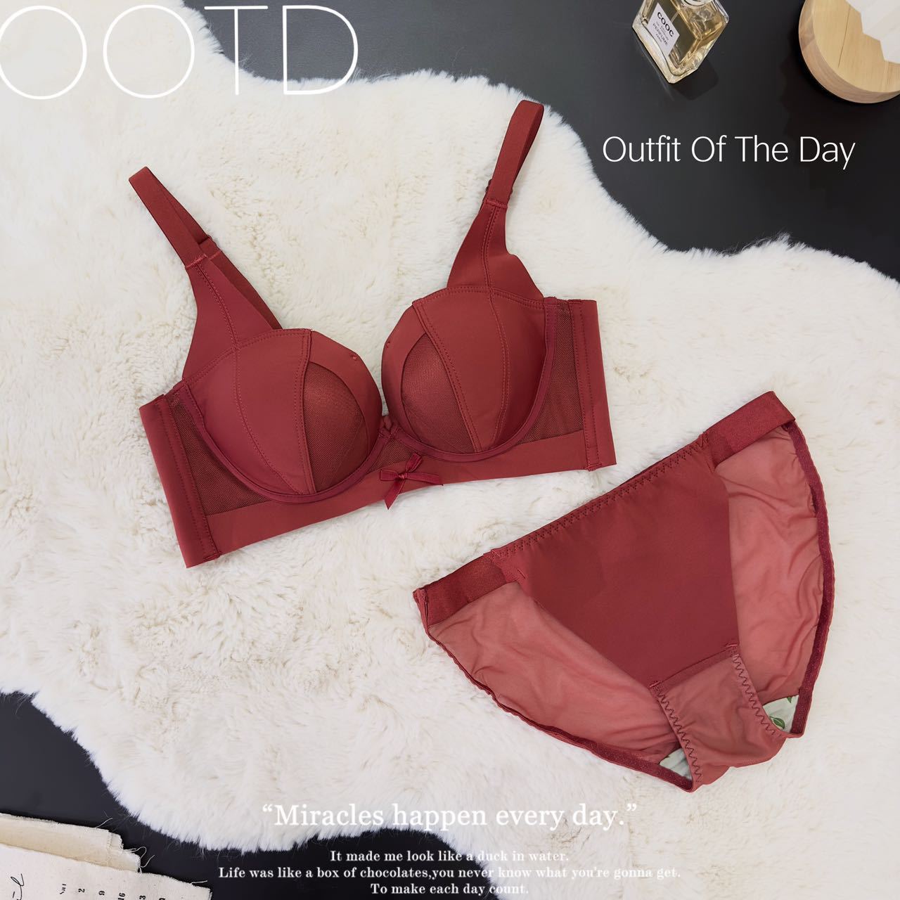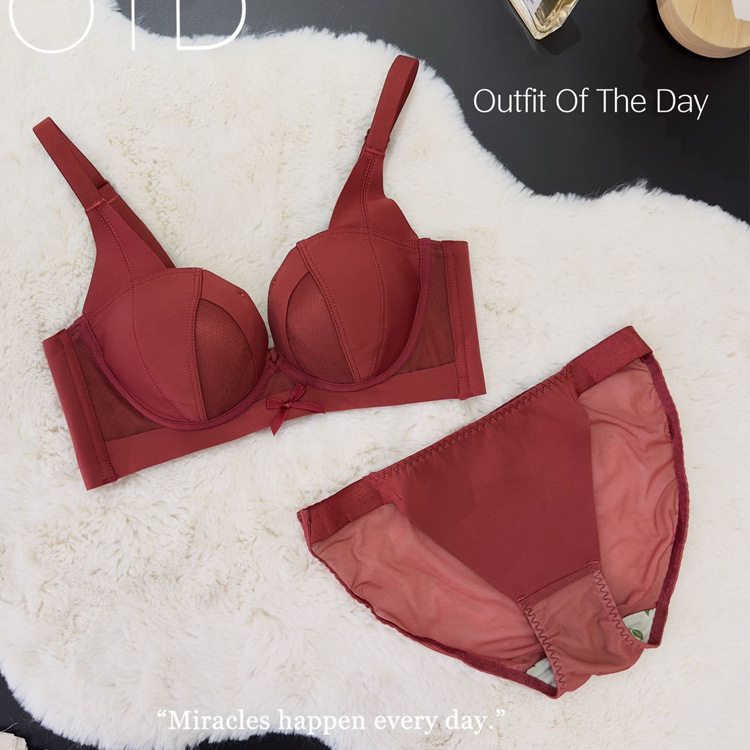 511 프랑스 복고풍 통기성 메쉬 Tracless 속옷 세트 편안한 무자비한 중간 두꺼운 작은 가슴 푸시 업 브래지어