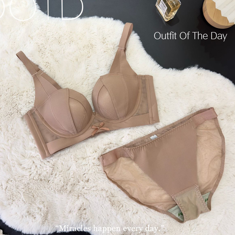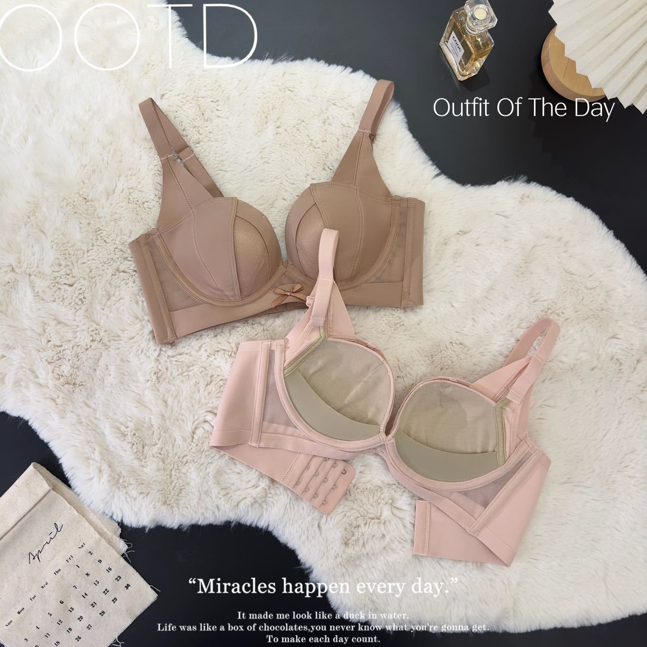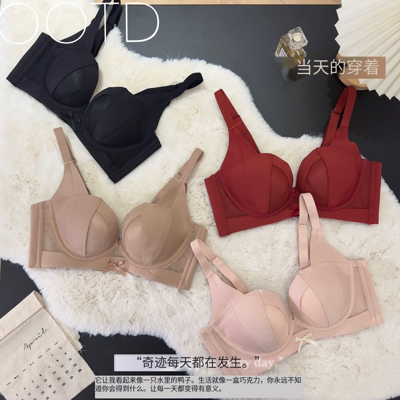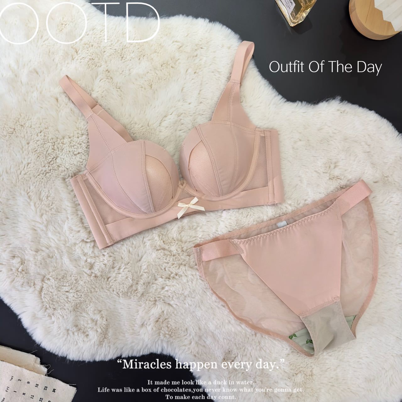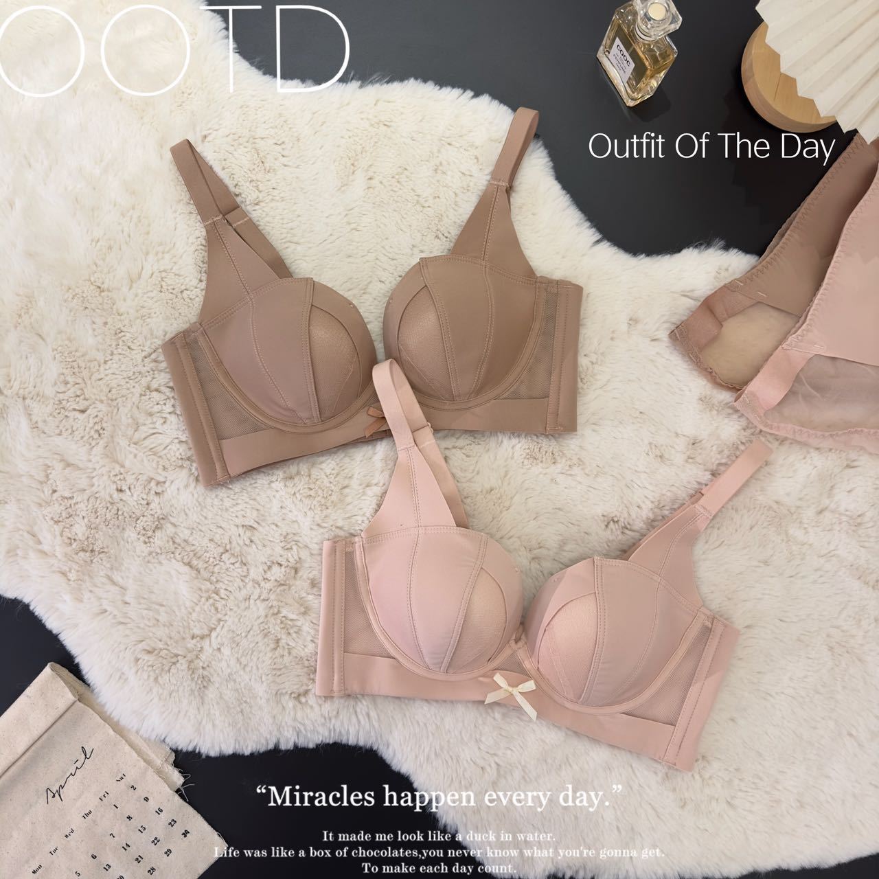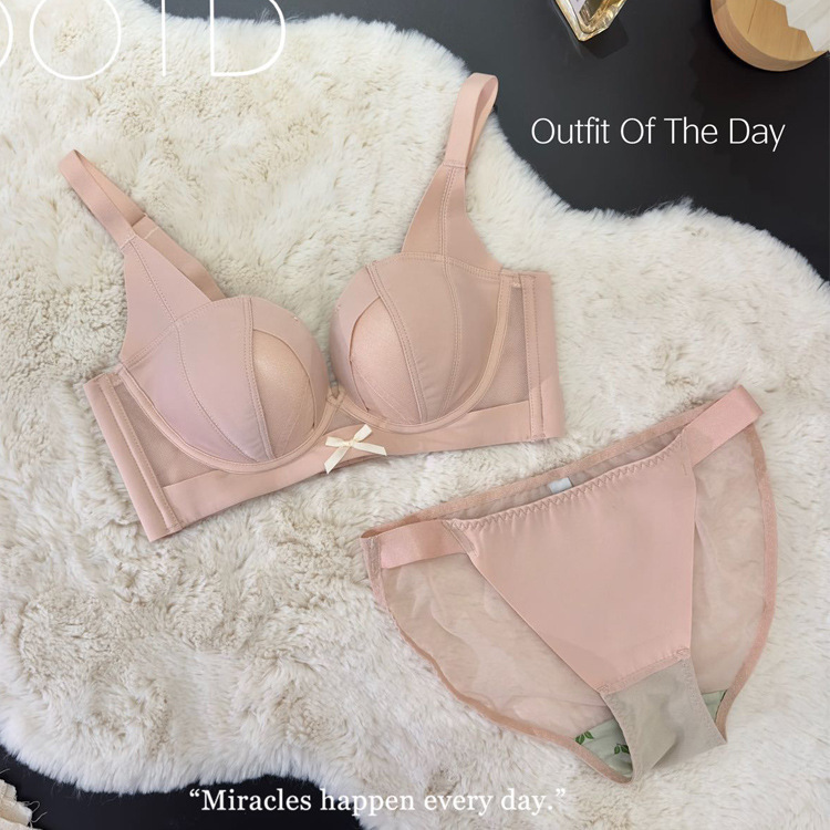 511 프랑스 복고풍 통기성 메쉬 Tracless 속옷 세트 편안한 무자비한 중간 두꺼운 작은 가슴 푸시 업 브래지어