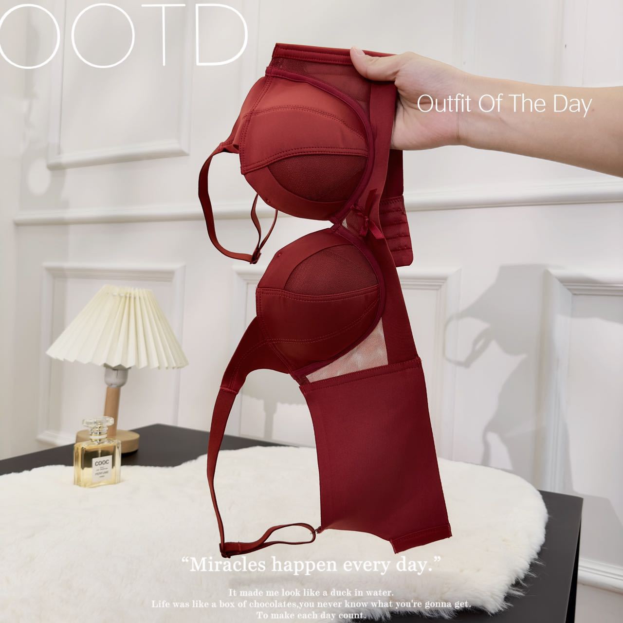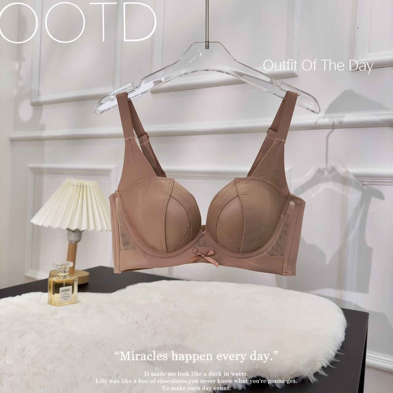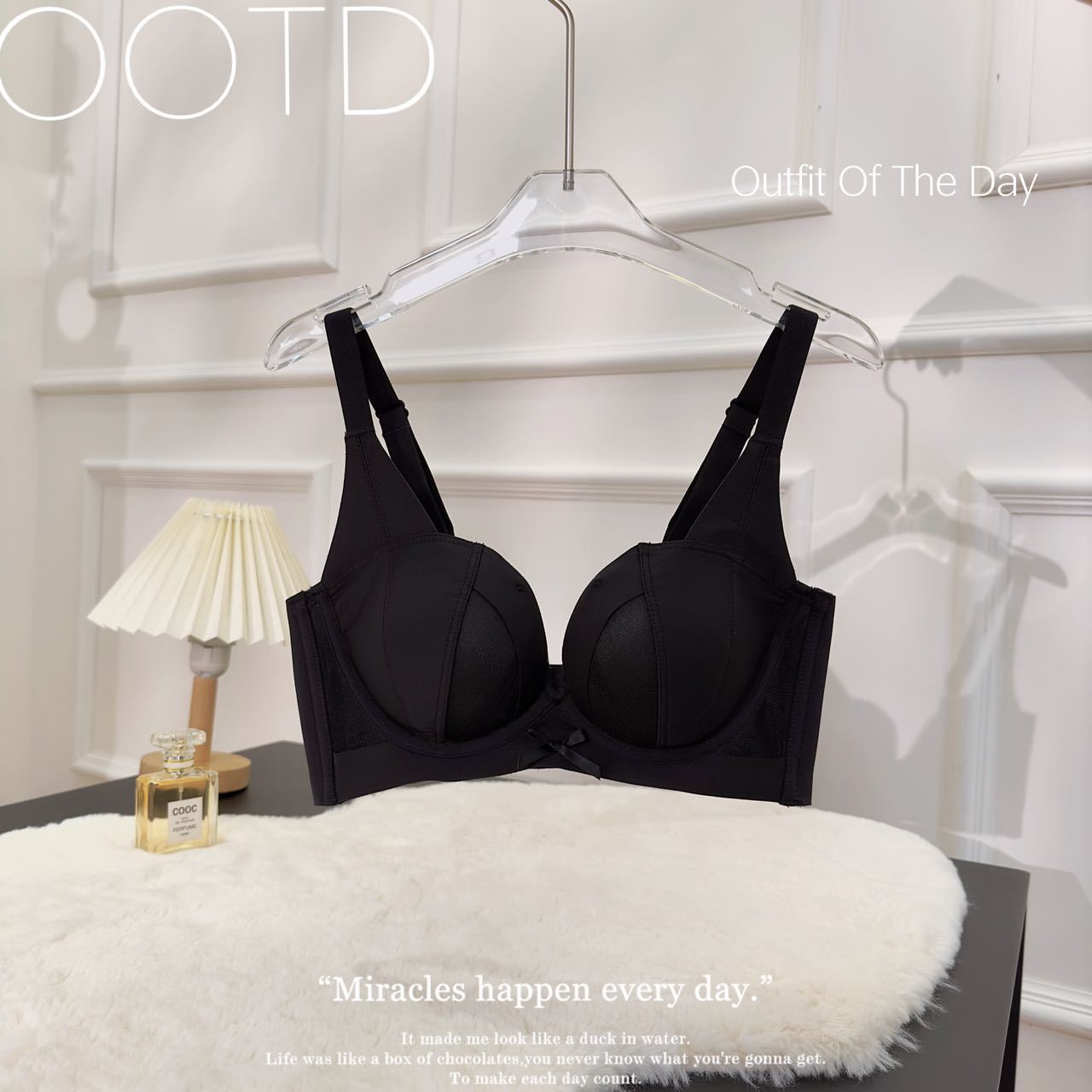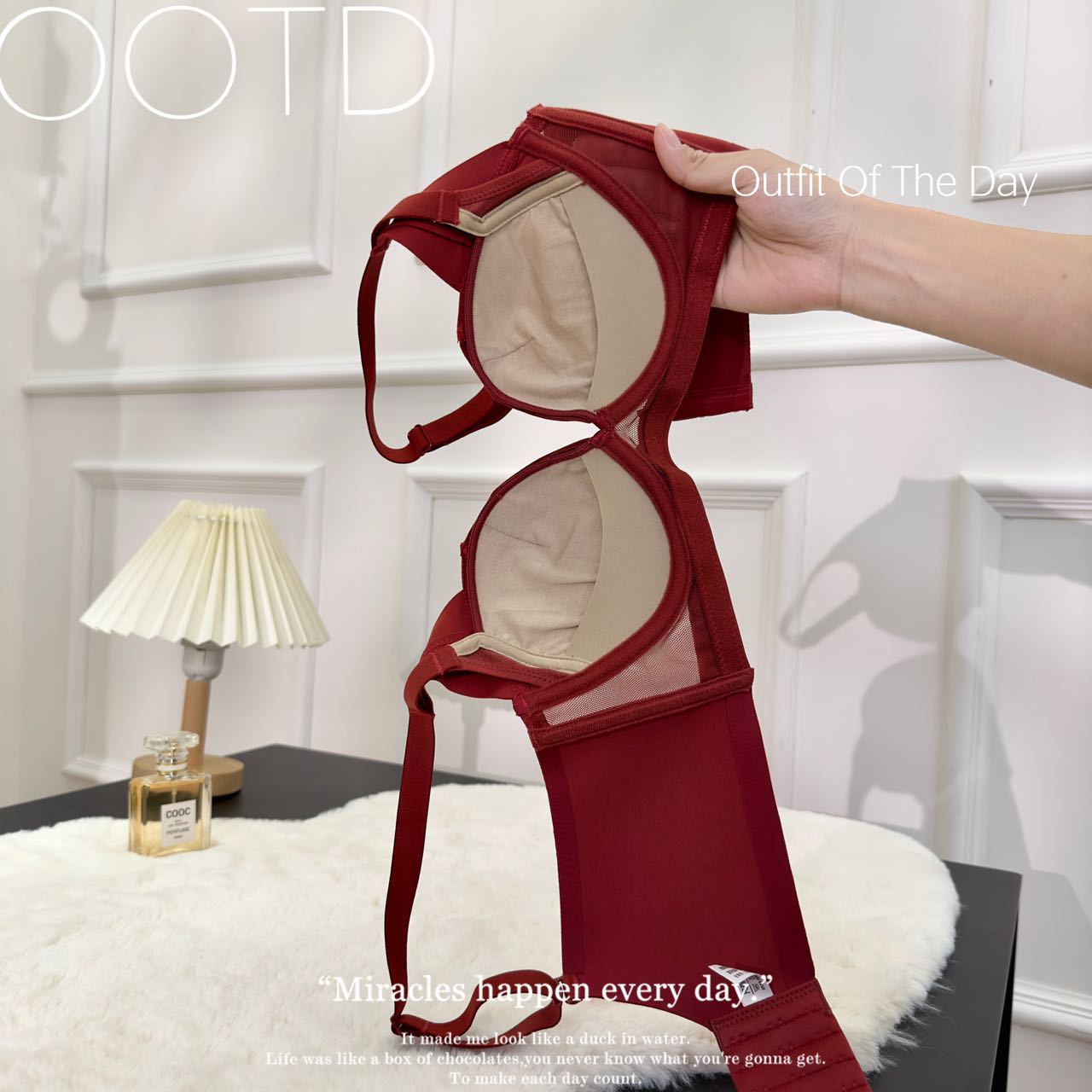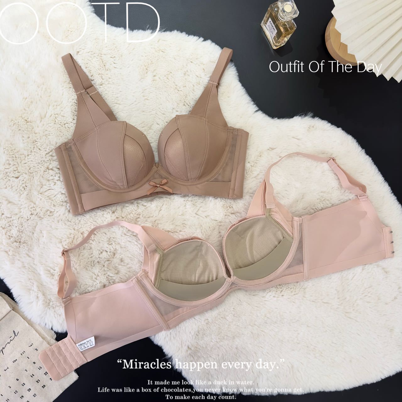 511 프랑스 복고풍 통기성 메쉬 Tracless 속옷 세트 편안한 무자비한 중간 두꺼운 작은 가슴 푸시 업 브래지어