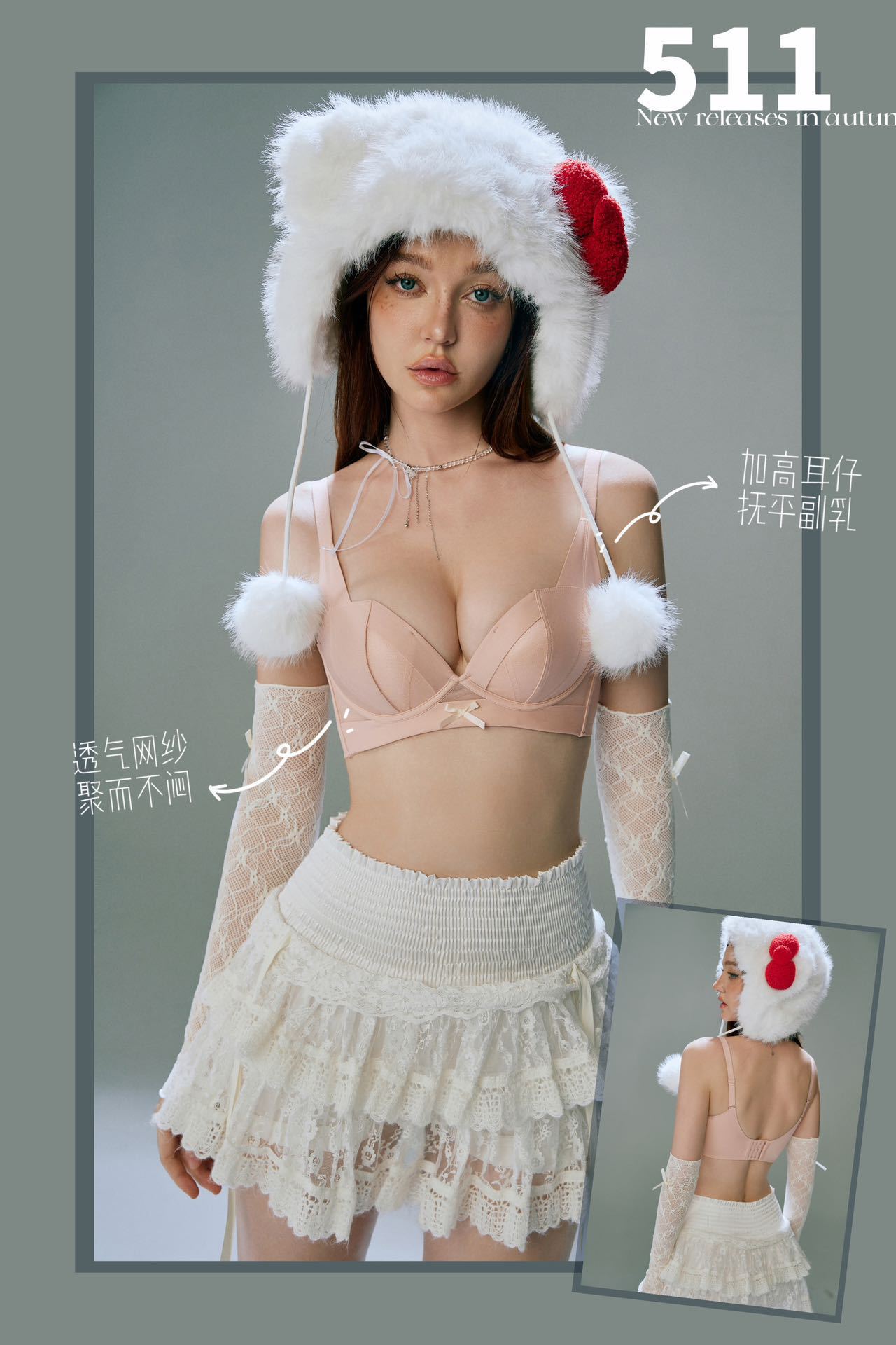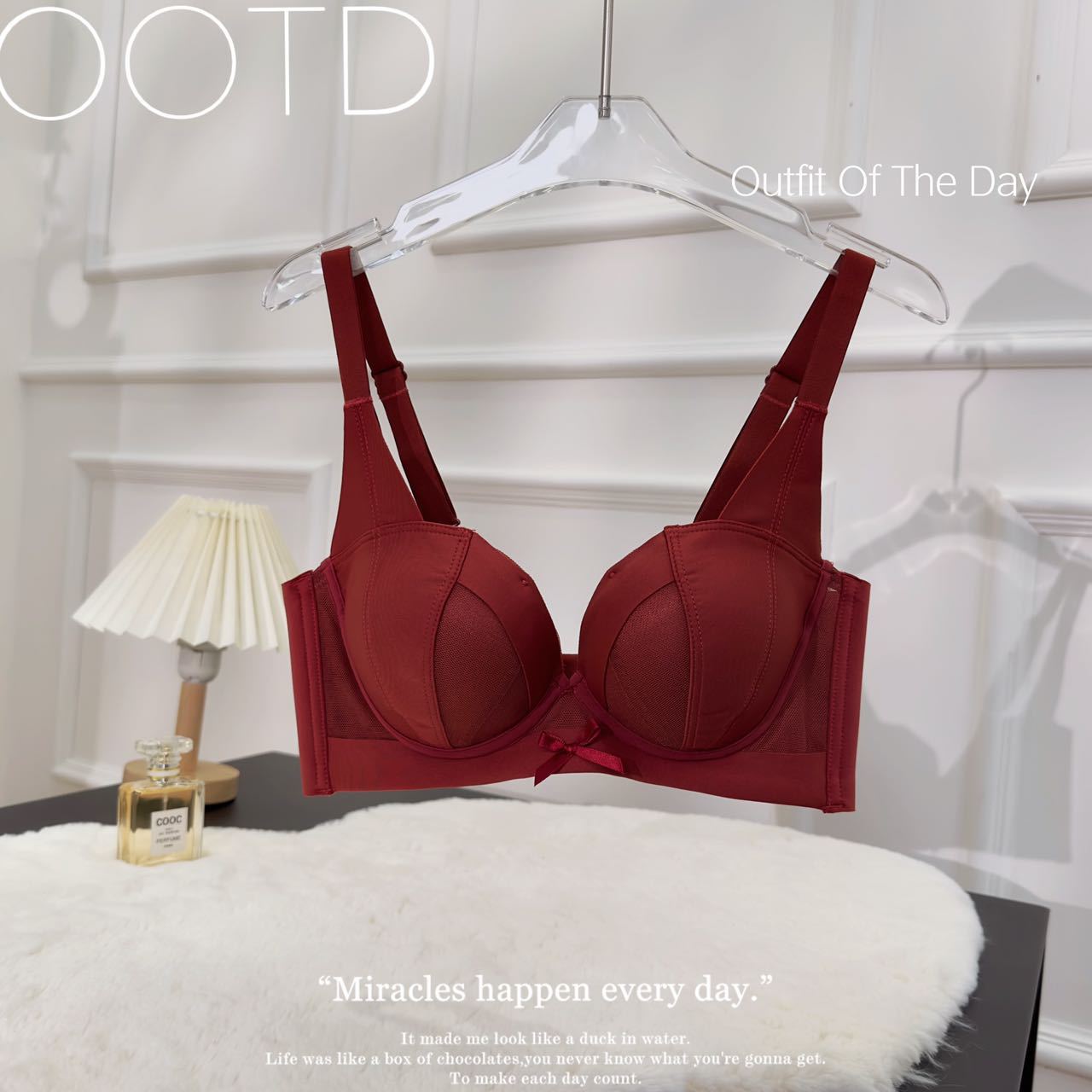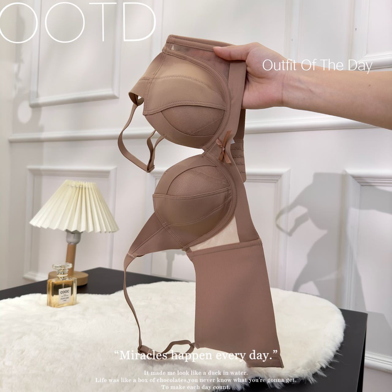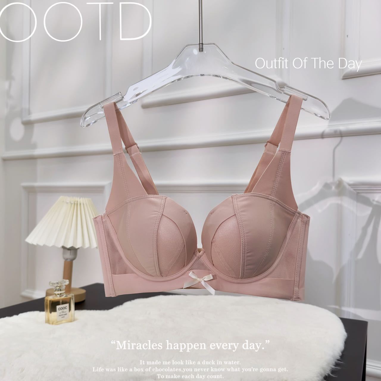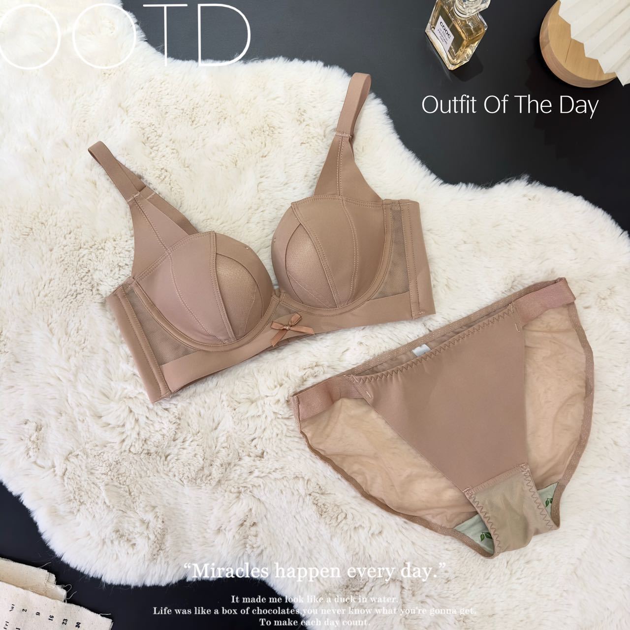 511 프랑스 복고풍 통기성 메쉬 Tracless 속옷 세트 편안한 무자비한 중간 두꺼운 작은 가슴 푸시 업 브래지어