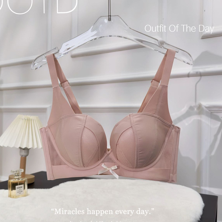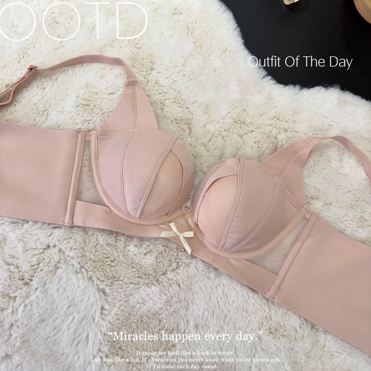 511 프랑스 복고풍 통기성 메쉬 Tracless 속옷 세트 편안한 무자비한 중간 두꺼운 작은 가슴 푸시 업 브래지어스토어 가기