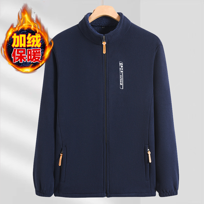 중년 및 노인 아빠를위한 가을 및 겨울 극지 양털 코트 남성용 양털 모양의 두꺼운 느슨한 수직 칼라 카디건 양털 탑 스웨트 셔츠