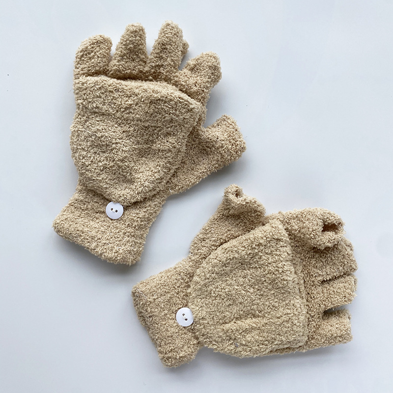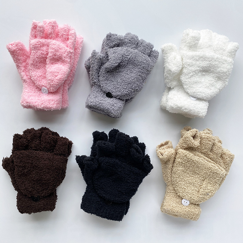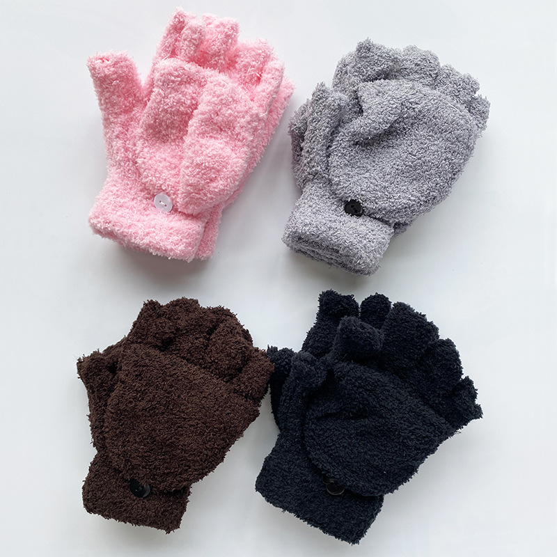 2024 가을과 겨울 유럽과 미국의 국경 간 플립 장갑 귀여운 손가락 노출 이중 목적 장갑 니트 사이클링 장갑 학생 절반스토어 가기