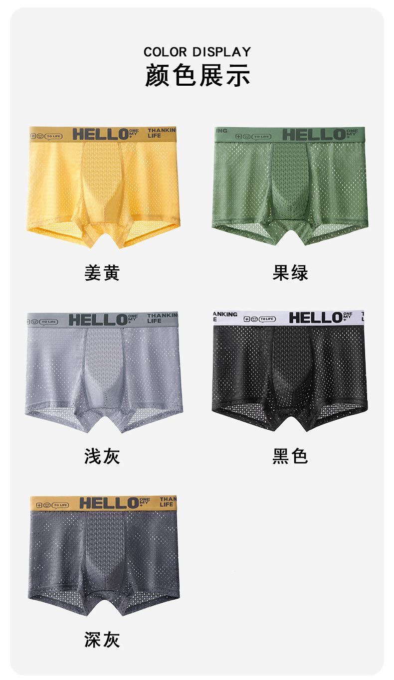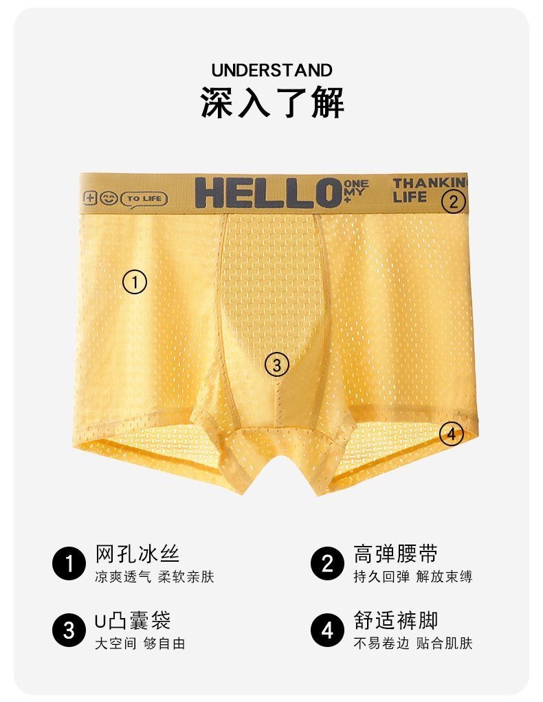 여름 메쉬 아이스 실크 남성 속옷 항균 얇은 플랫 4 코너 짧은 속옷 성인 학생 주니어 플러스 사이즈 남성 속옷스토어 가기