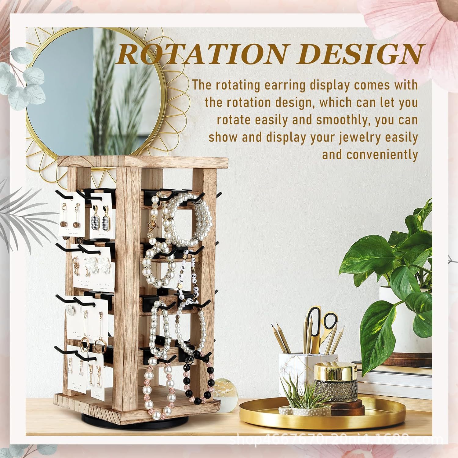 국경 간 나무 회전 다층 보석 보관 및 마감 스텐실 대용량 나무 보석 마감 랙 턴테이블