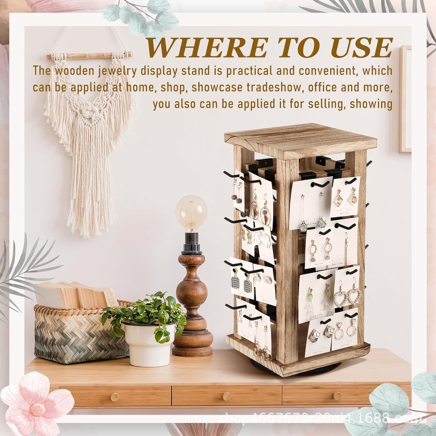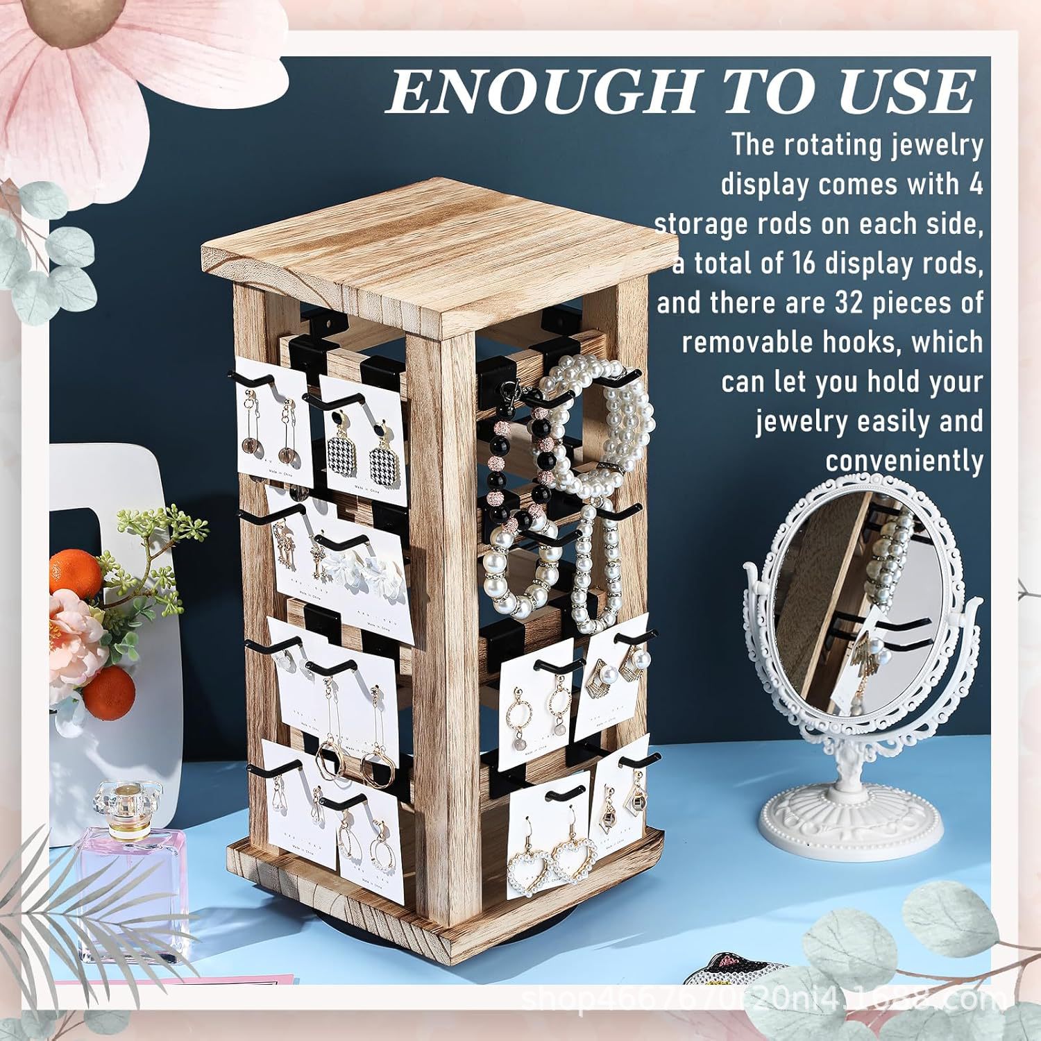 국경 간 나무 회전 다층 보석 보관 및 마감 스텐실 대용량 나무 보석 마감 랙 턴테이블스토어 가기