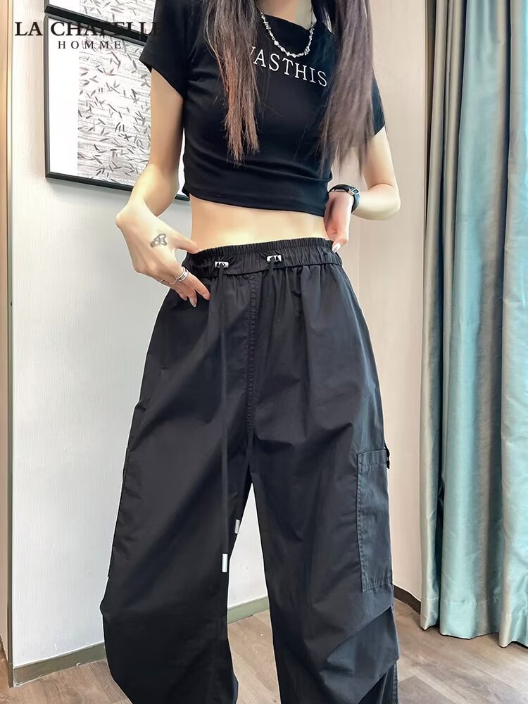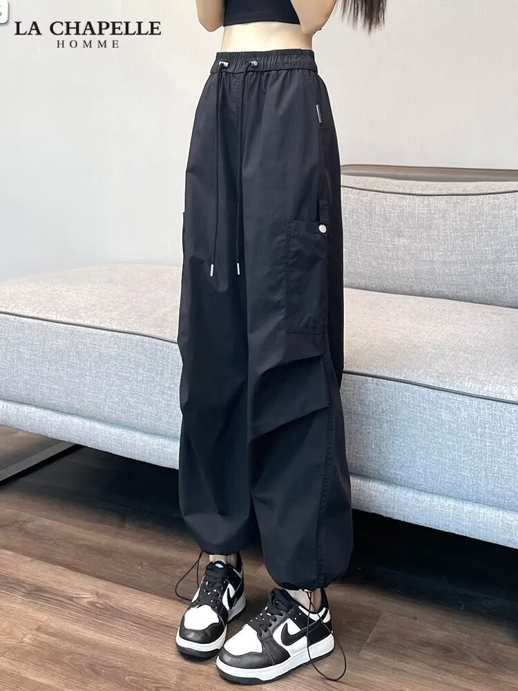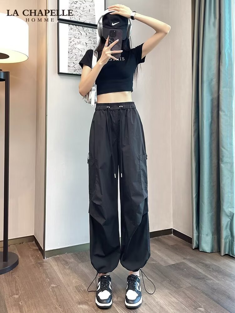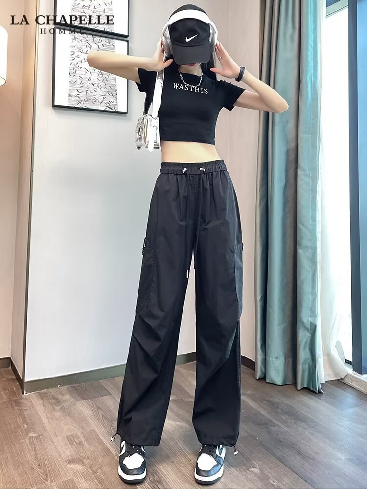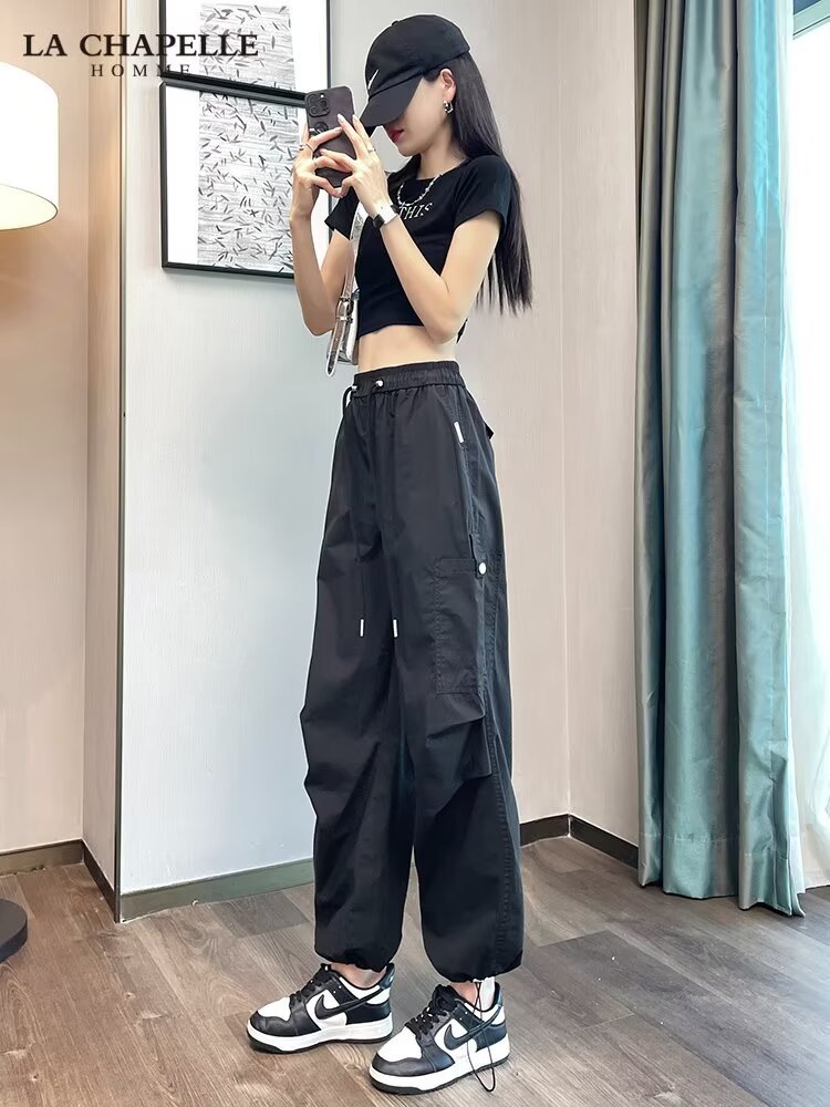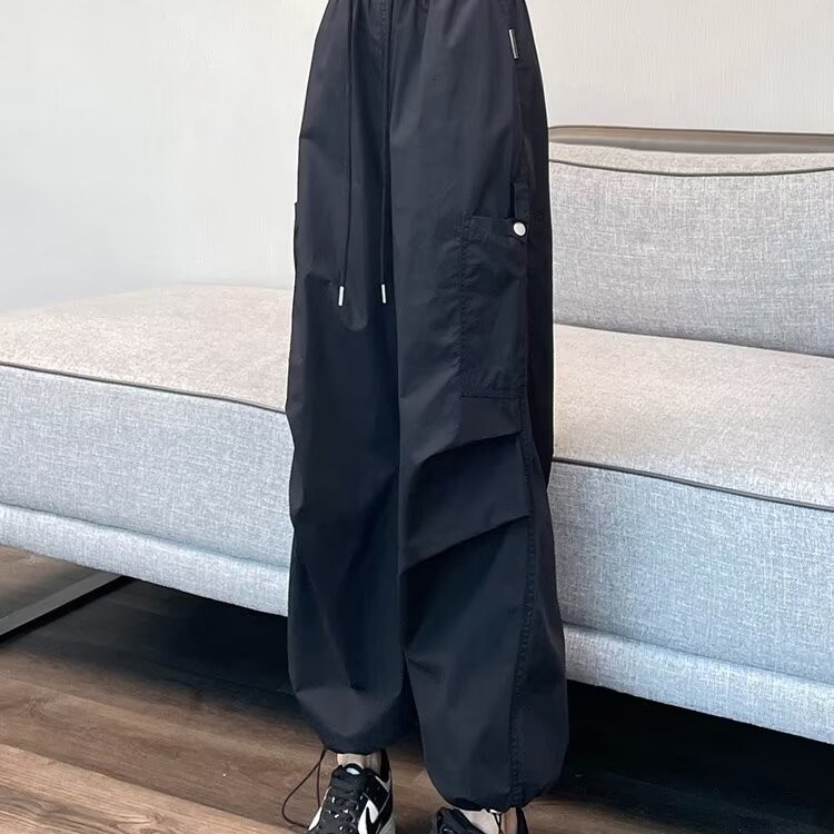 검은 바지 여성의 2024 새로운 봄 캐주얼 유럽 세트 등산 튀김 거리 멋진 스타일의 재즈 댄스 바지스토어 가기