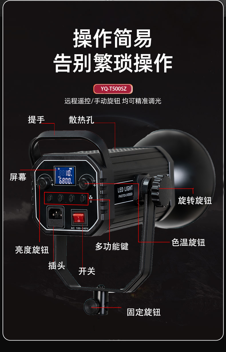 400W 고출력 비디오 램프 라이브 사진 램프 모든 금속 바디 COB 램프 구슬 넓은 지역 천 채우기 빛