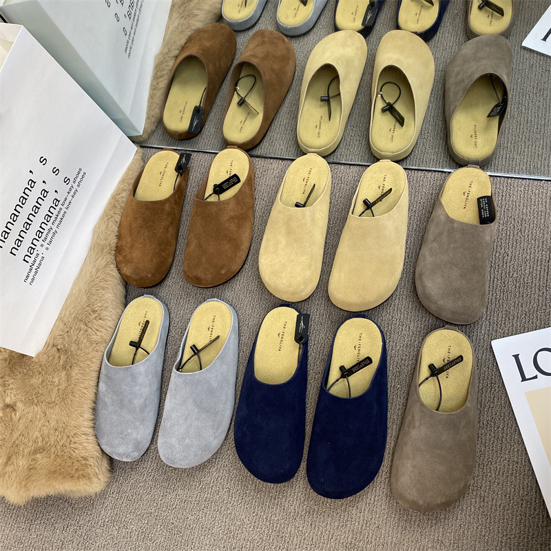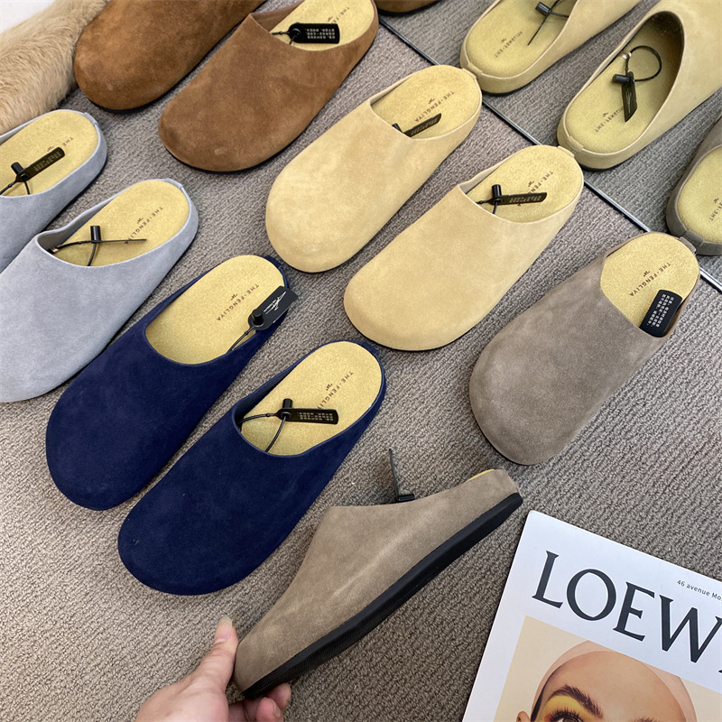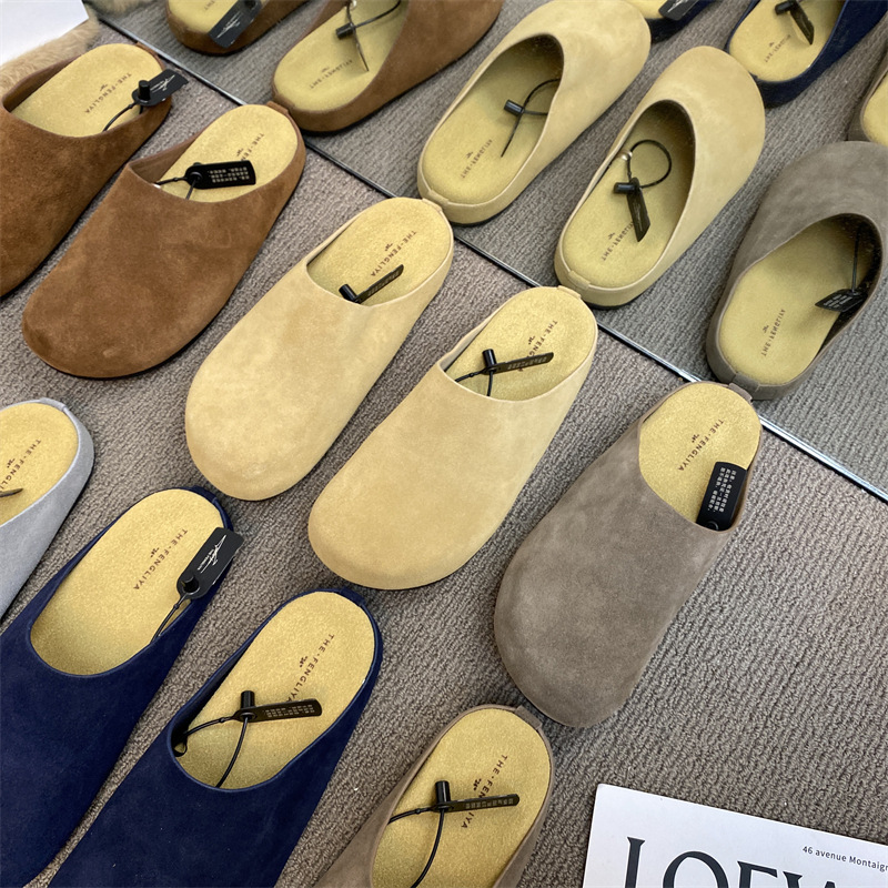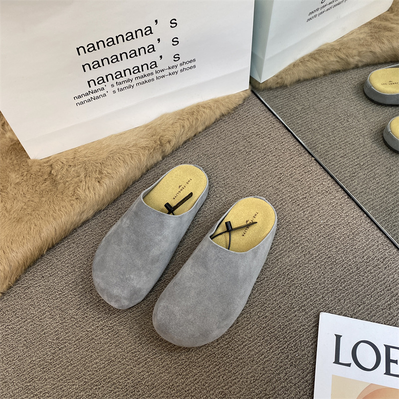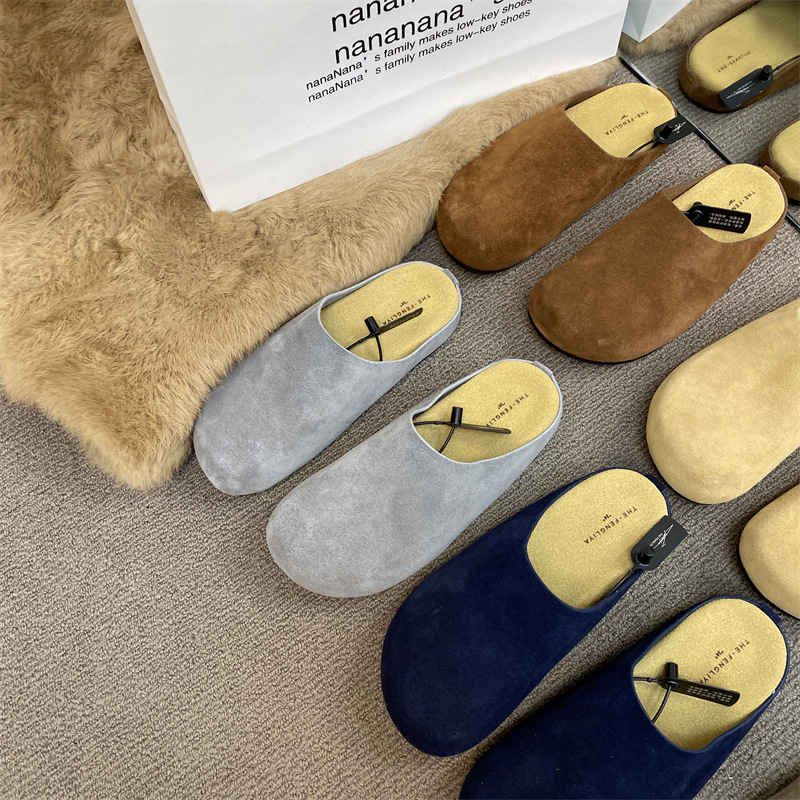 작은 서리가 내린 정품 가죽 바오터우 버켄 슬리퍼 여성용 두꺼운 유일한 비 슬립 게으른 반 슬리퍼 힐리스 바오터우 슬리퍼스토어 가기