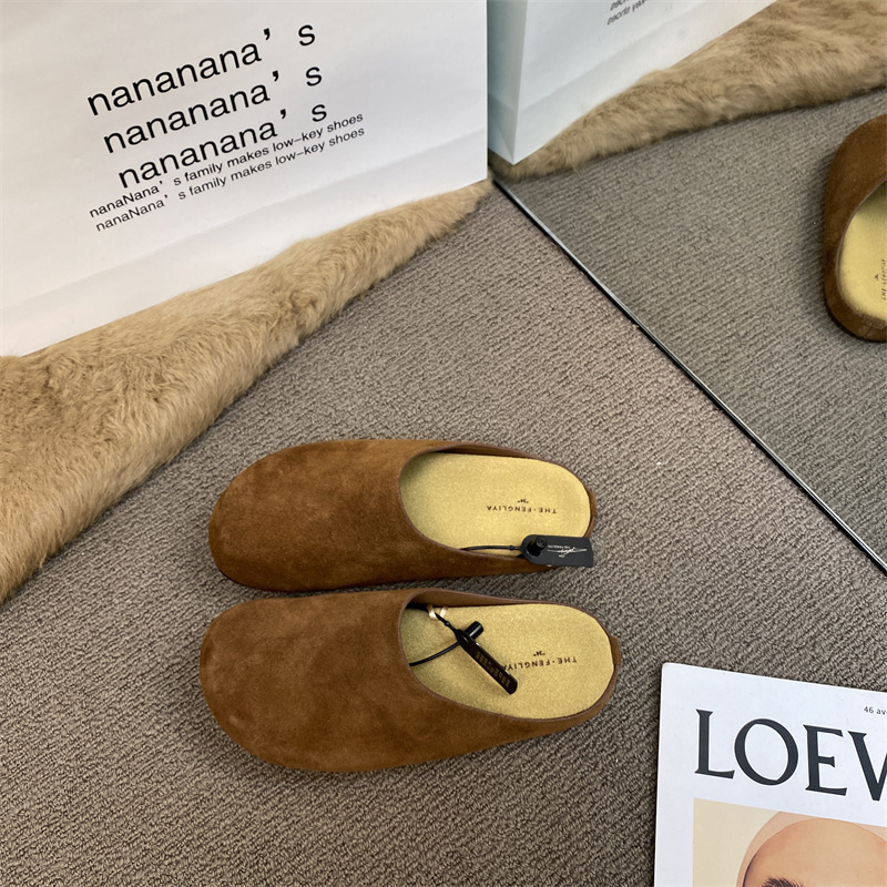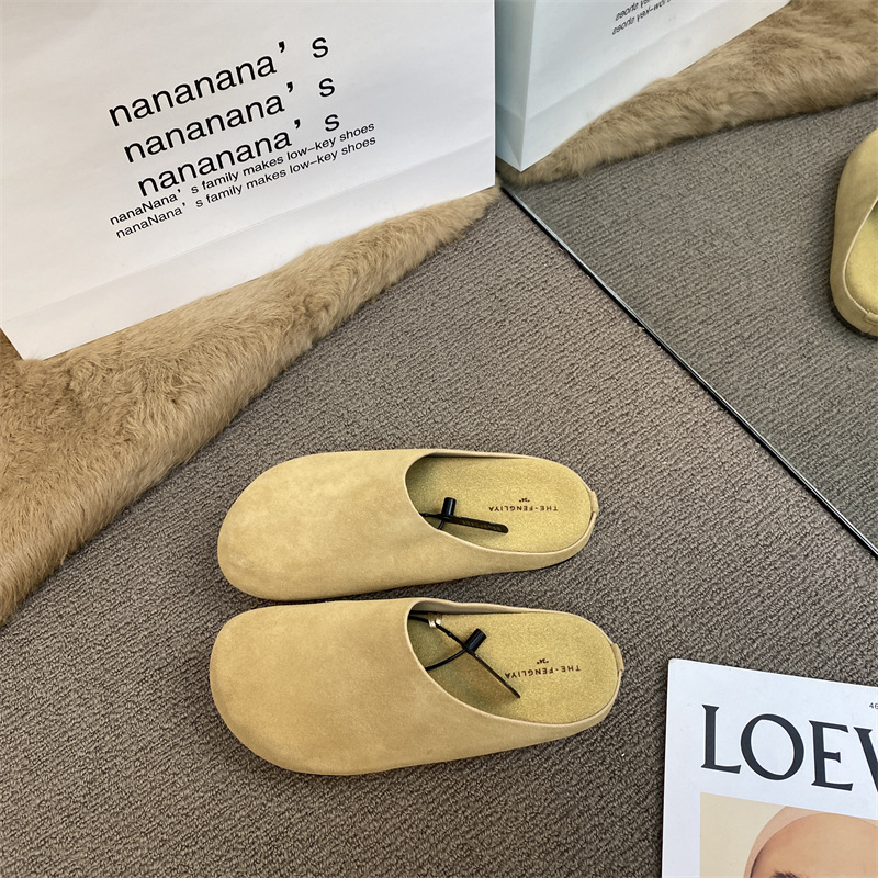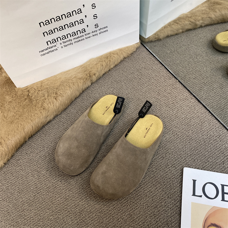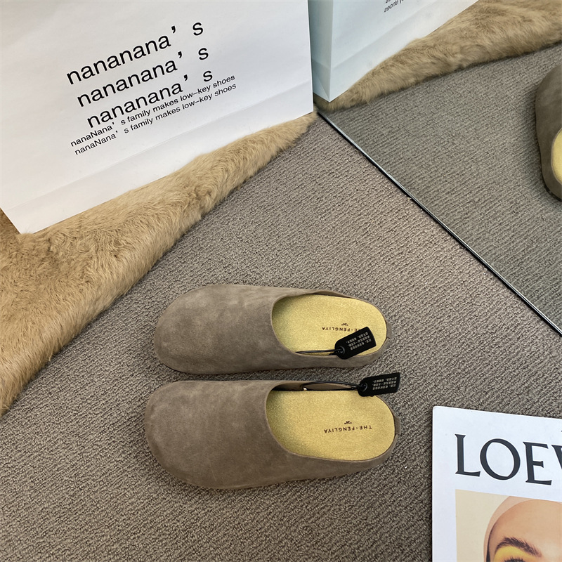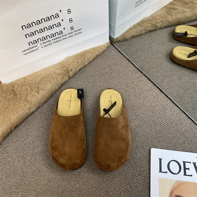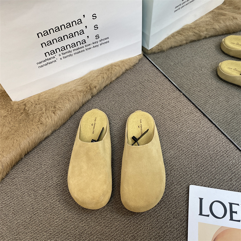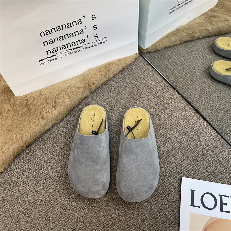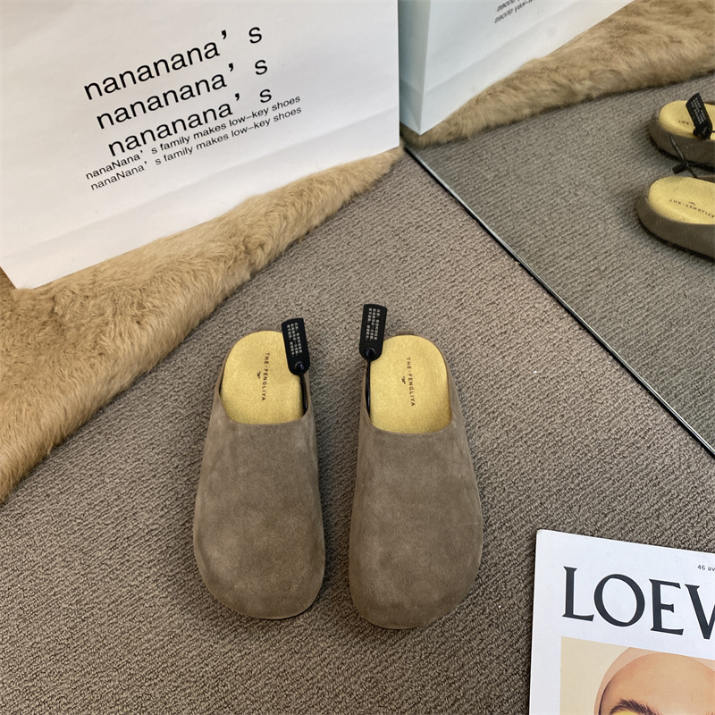 작은 서리가 내린 정품 가죽 바오터우 버켄 슬리퍼 여성용 두꺼운 유일한 비 슬립 게으른 반 슬리퍼 힐리스 바오터우 슬리퍼