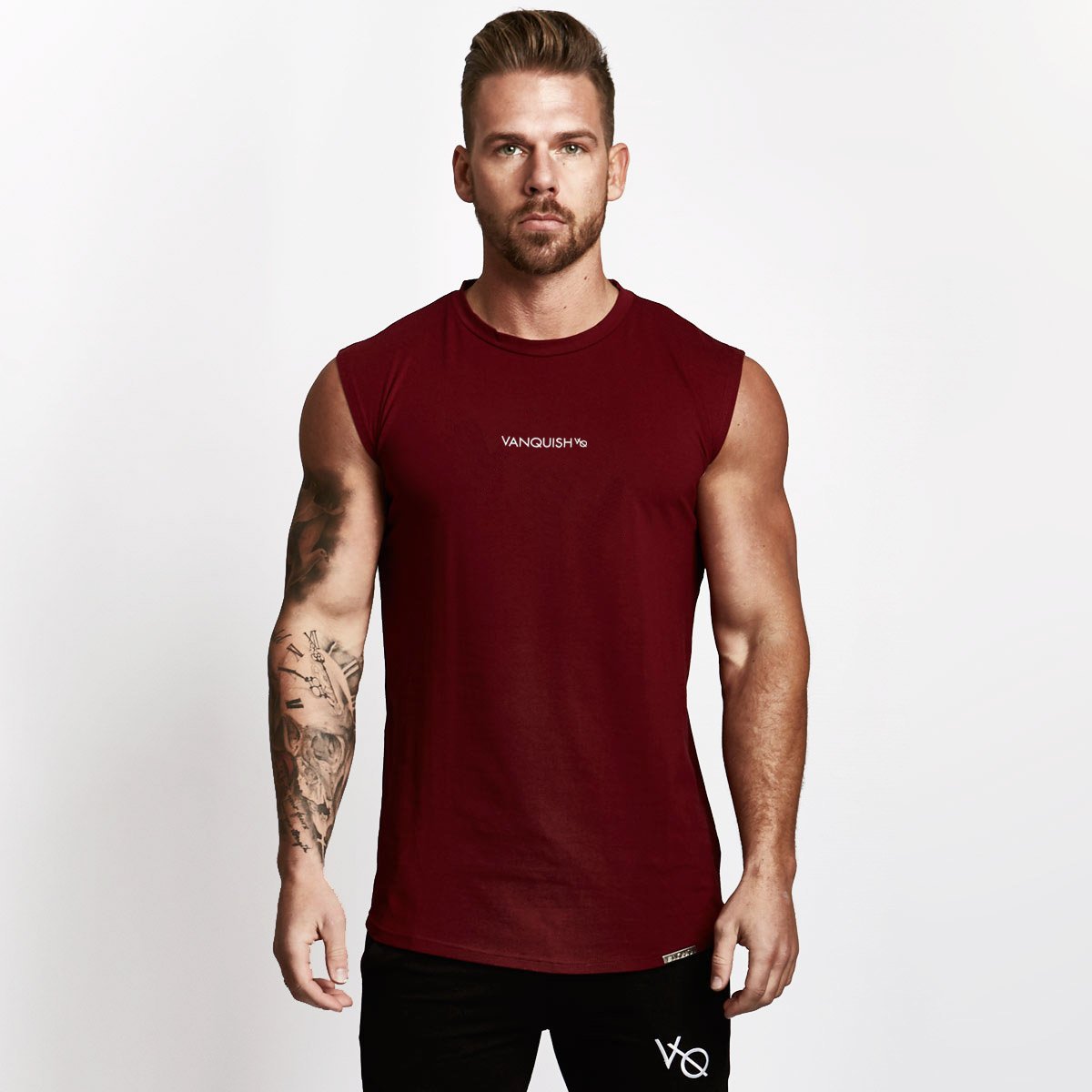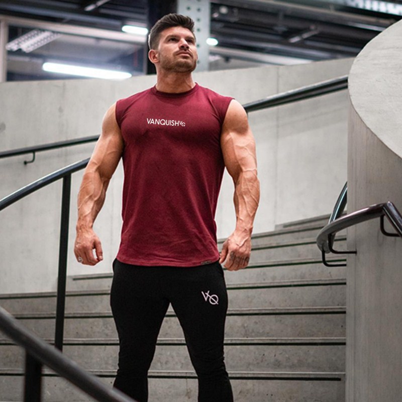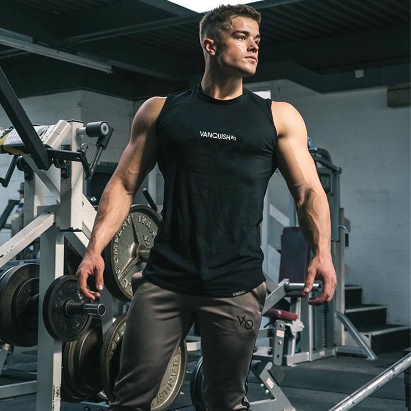 국경 간 근육 피트니스 VO 민소매 스포츠 남성 조끼 피트니스 달리기 민소매 티셔츠 통기성 슬림 트레이닝 세트스토어 가기