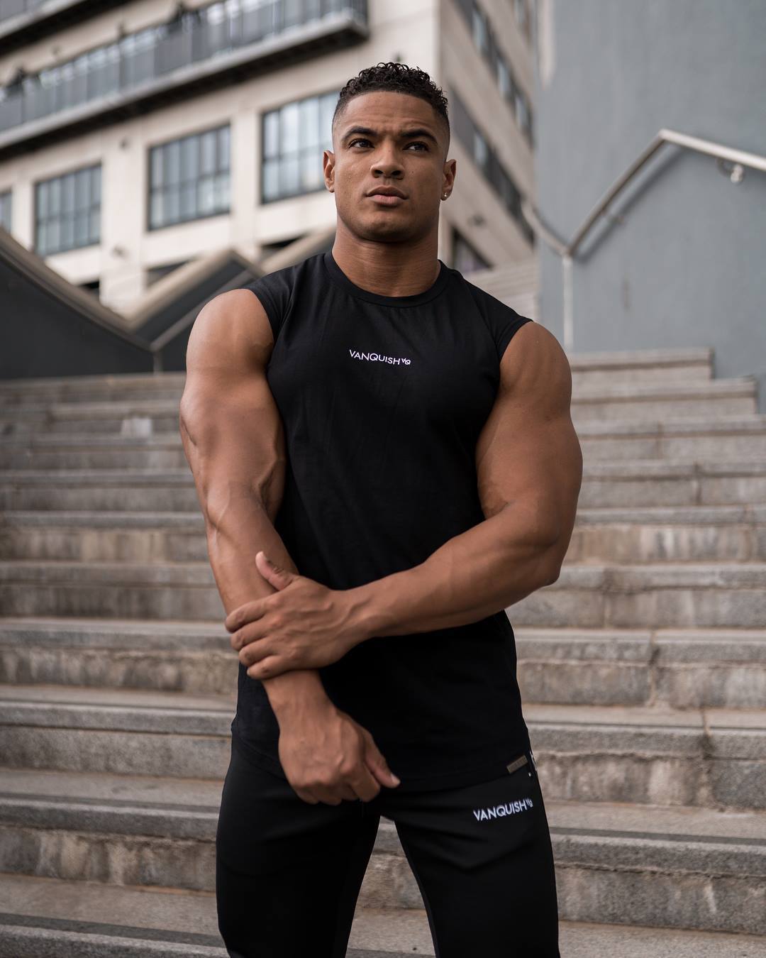 국경 간 근육 피트니스 VO 민소매 스포츠 남성 조끼 피트니스 달리기 민소매 티셔츠 통기성 슬림 트레이닝 세트