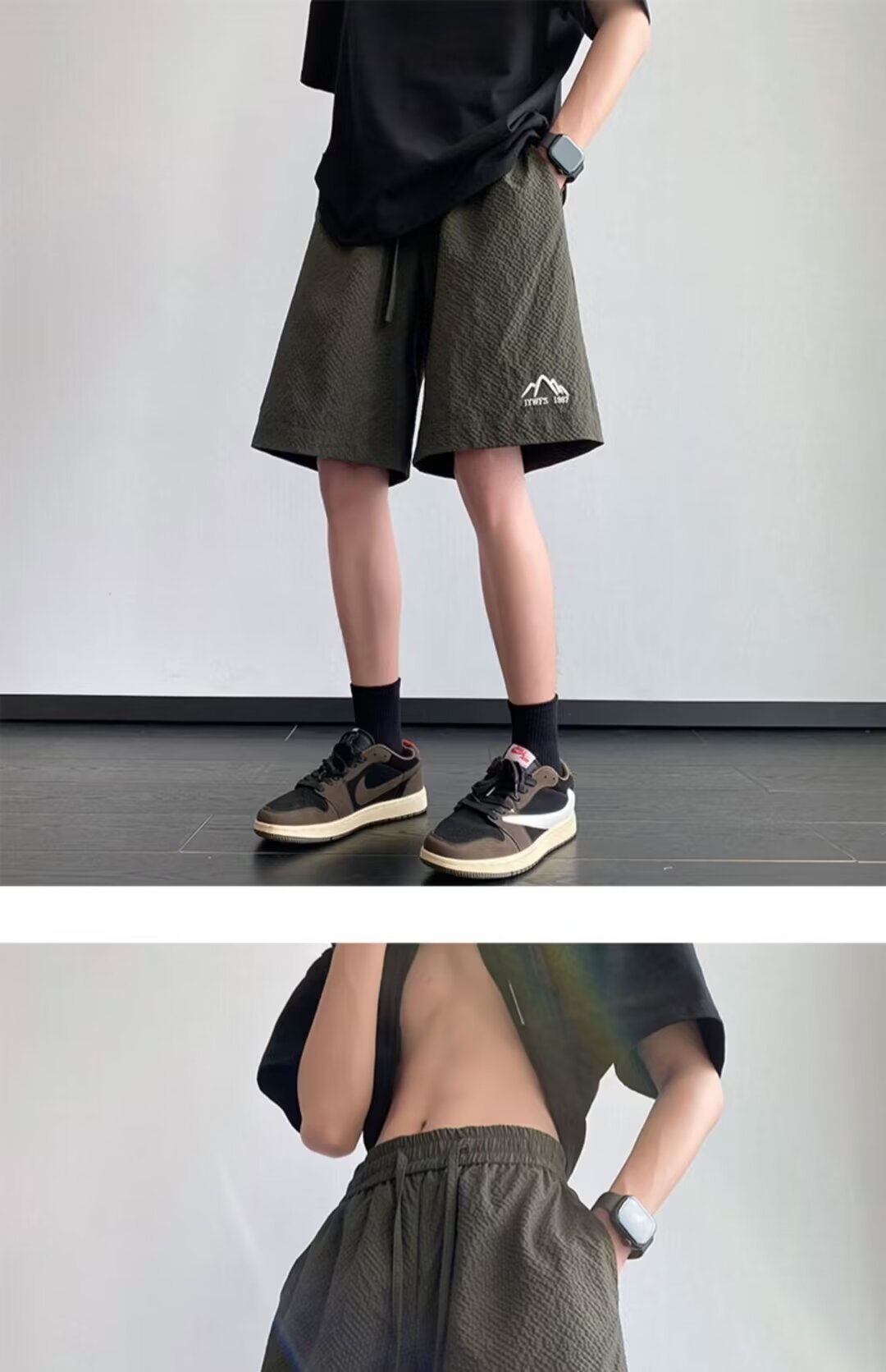 남성용 속건 반바지 여름 5부 팬츠 아메리칸 하이스트리트 스타일 루즈핏 캐주얼 스포츠 비치 팬츠 2025 바지스토어 가기
