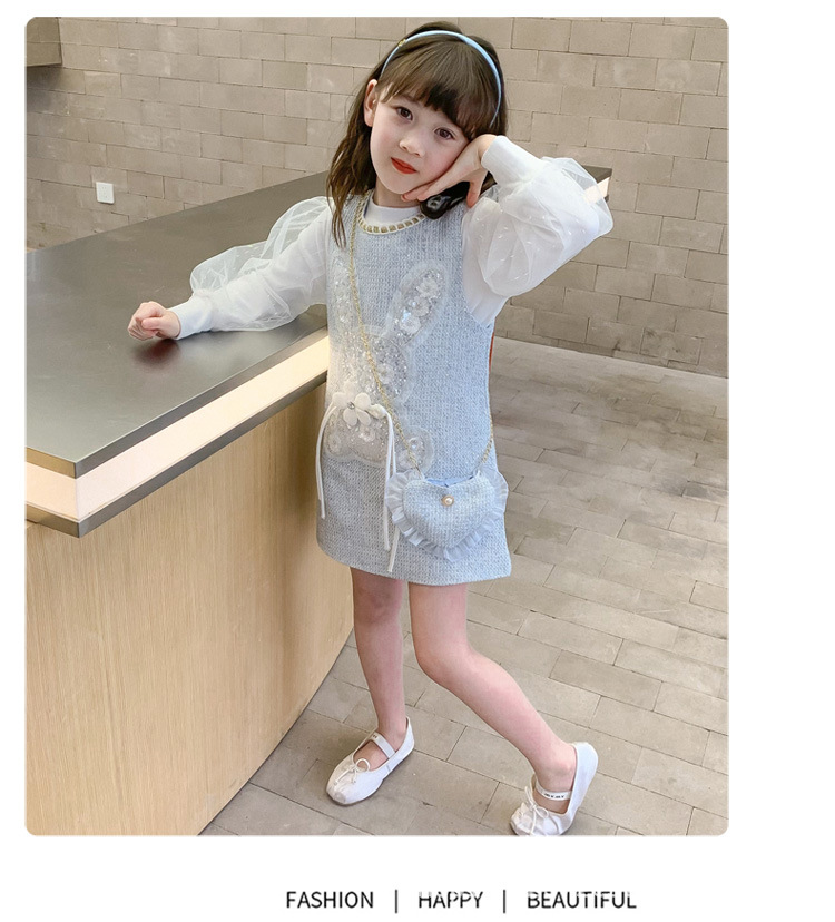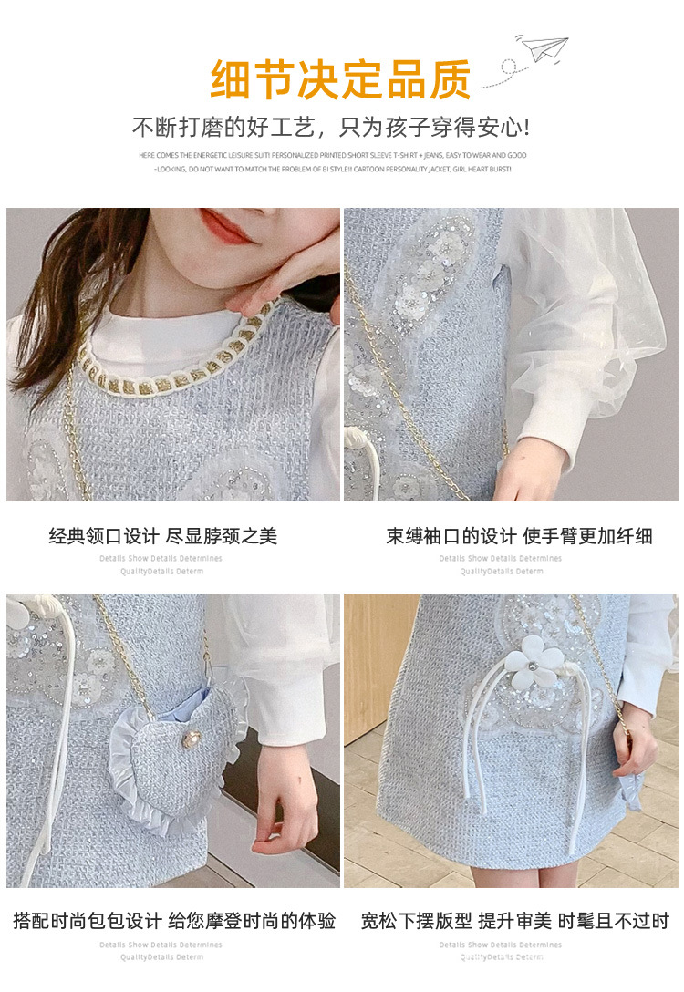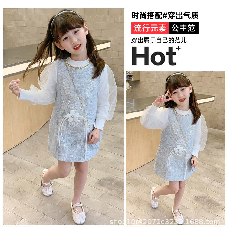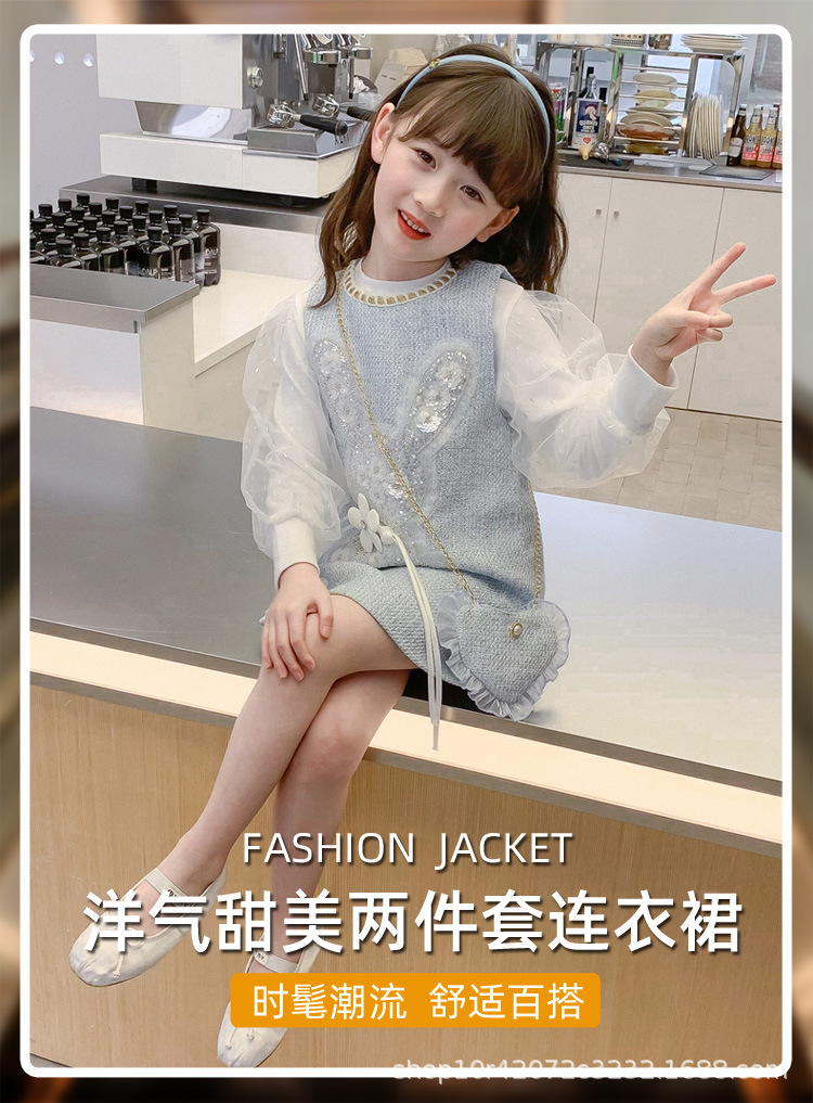 소녀 원피스 2024 새로운 가을 서양 스타일 향기로운 봄과 가을 어린이 공주 큰 어린이 세트 치마스토어 가기